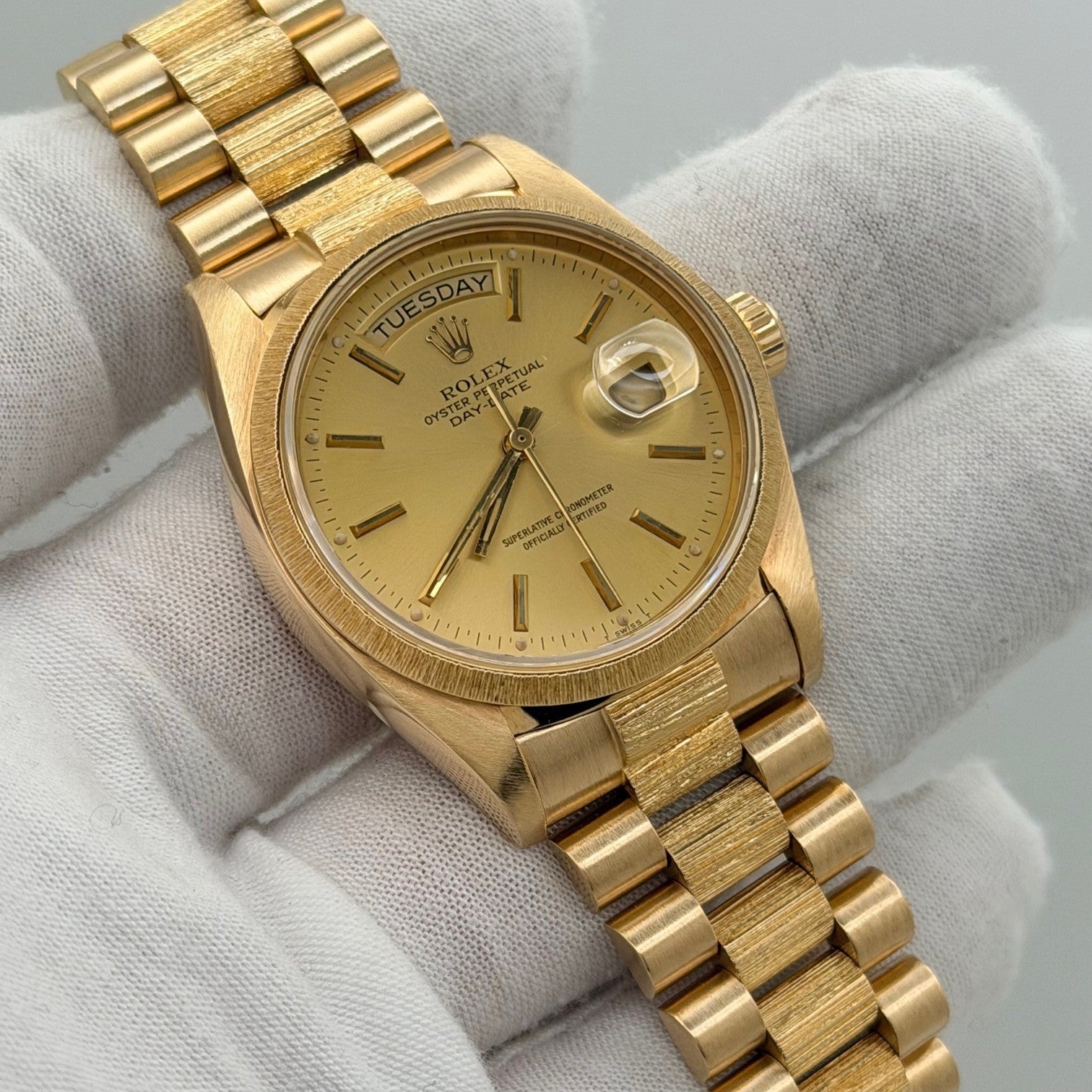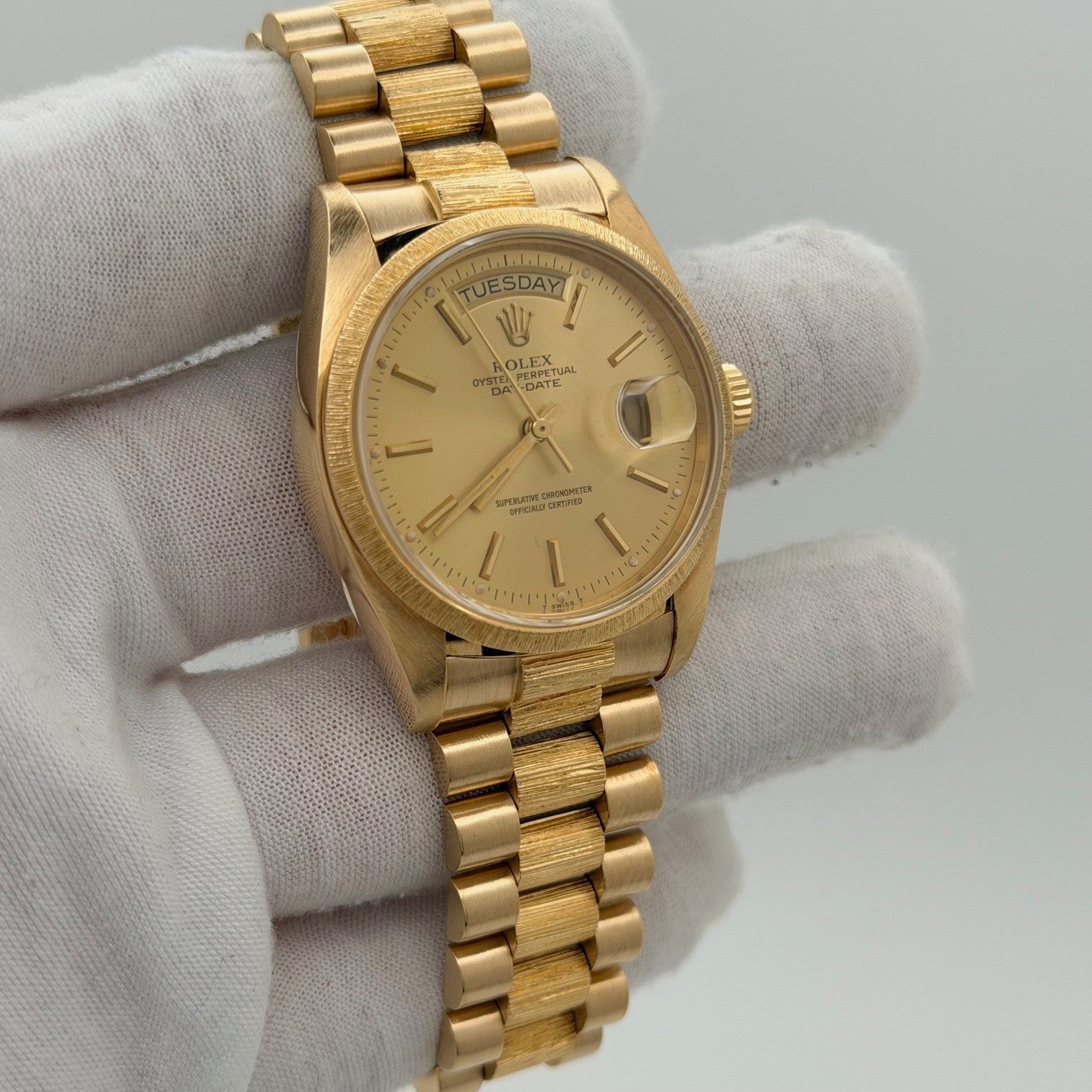 Rolex Day Date President Bark Finish 18078 36mm Champagne Dial 18k Yellow Gold