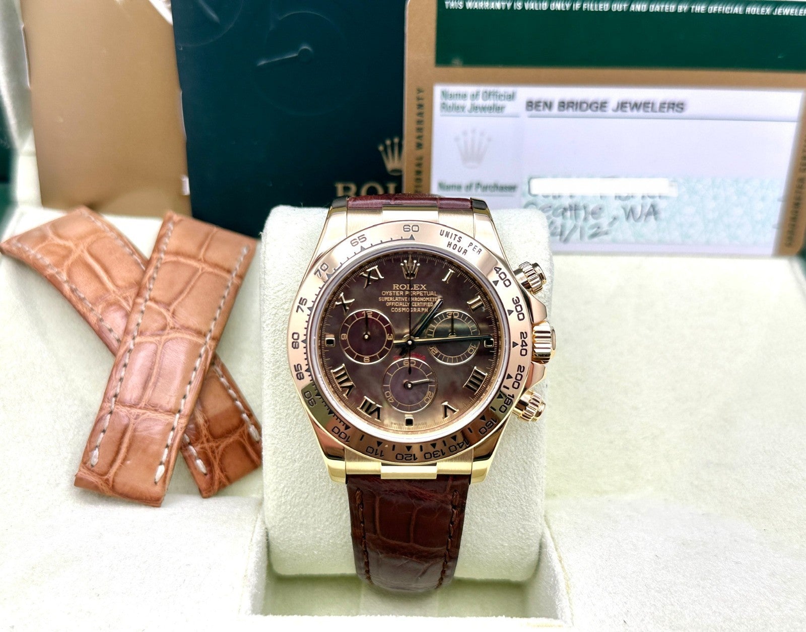 Rolex Daytona Cosmograph 116518 40mm Black MOP Dial 18k Yellow Gold Box Paper
