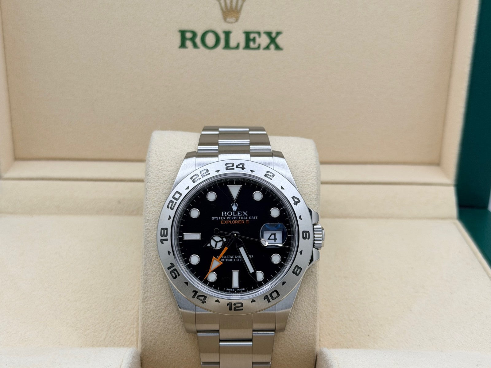 Rolex Explorer II 216570 42mm Black Dial Stainless Steel Box Rolex Sale! from 919500 /per This item is a recurring or deferred purchase. By continuing, I agree to the cancellation policy and authorize you to charge my payment method at the prices, frequency and dates listed on this page until my order is fulfilled or I cancel, if permitted. +1 (619) 232-1273 This item is currently on backorder but you can still purchase it now and we'll ship as soon as more become available. Style Number: 216570Serial: 6330****Year: 2011 - 2021 Model: Rolex Explorer II Case Material: Stainless Steel Band: Stainless Steel Bezel: Stainless Steel Dial: Black Crystal: Sapphire Case Size: 42mm Includes: - Rolex Box- Certified Appraisal - 1 Year WarrantySKU 23455 / 120175TOFC121525