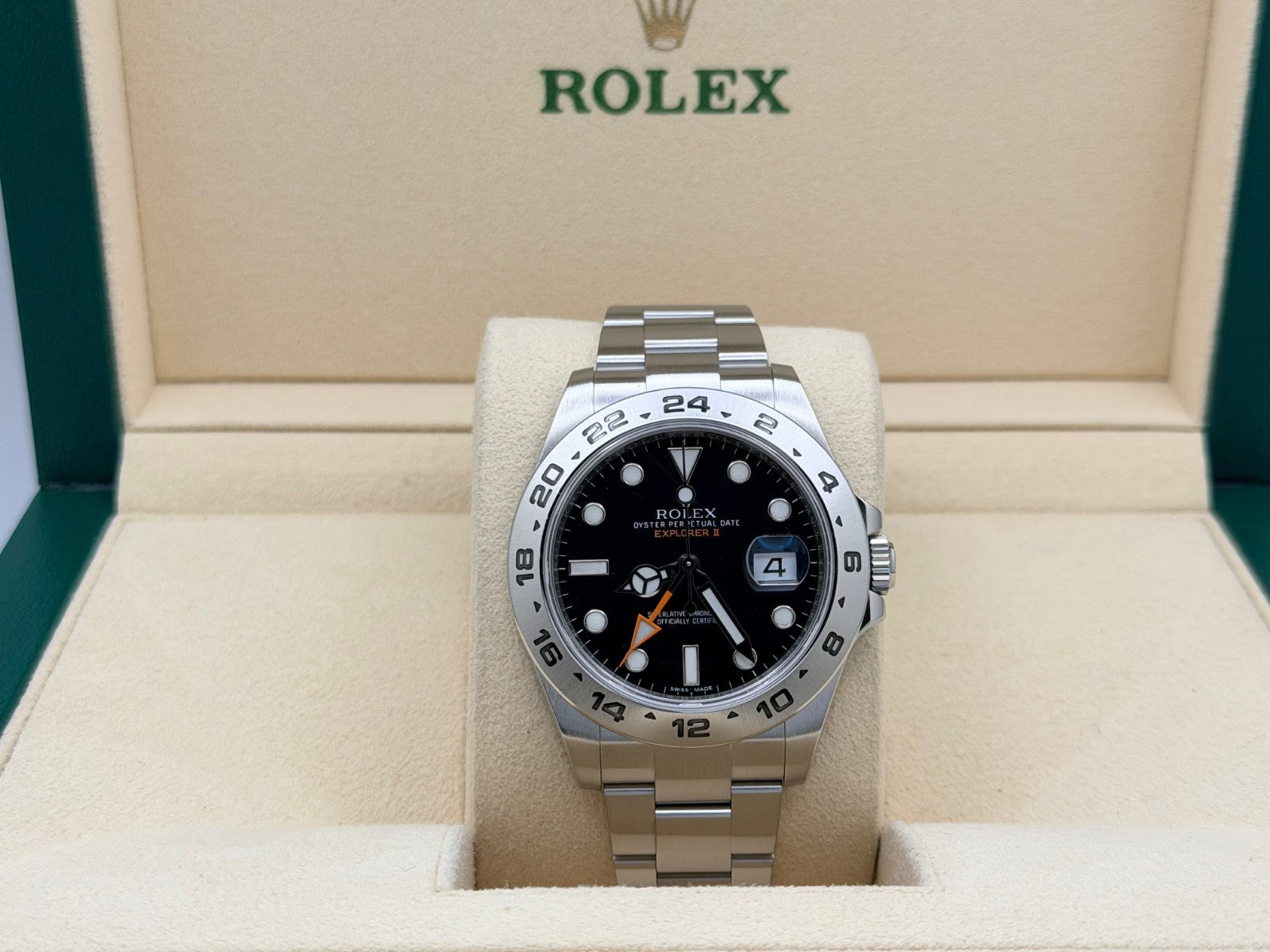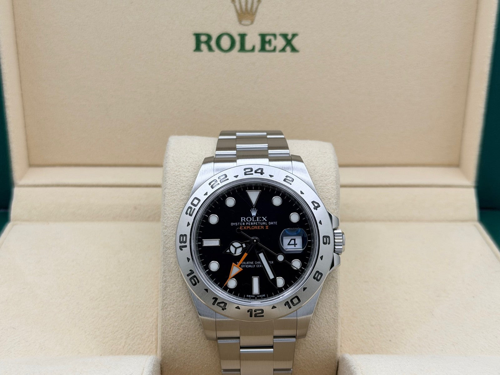 Rolex Explorer II 216570 42mm Black Dial Stainless Steel Box Rolex Sale! from 919500 /per This item is a recurring or deferred purchase. By continuing, I agree to the cancellation policy and authorize you to charge my payment method at the prices, frequency and dates listed on this page until my order is fulfilled or I cancel, if permitted. +1 (619) 232-1273 This item is currently on backorder but you can still purchase it now and we'll ship as soon as more become available. Style Number: 216570Serial: 6330****Year: 2011 - 2021 Model: Rolex Explorer II Case Material: Stainless Steel Band: Stainless Steel Bezel: Stainless Steel Dial: Black Crystal: Sapphire Case Size: 42mm Includes: - Rolex Box- Certified Appraisal - 1 Year WarrantySKU 23455 / 120175TOFC121525