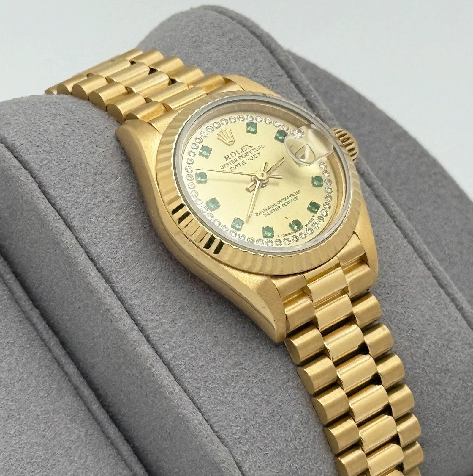 Rolex Ladies President Datejust 69178 Diamond Emerald Dial 18K Yellow Gold