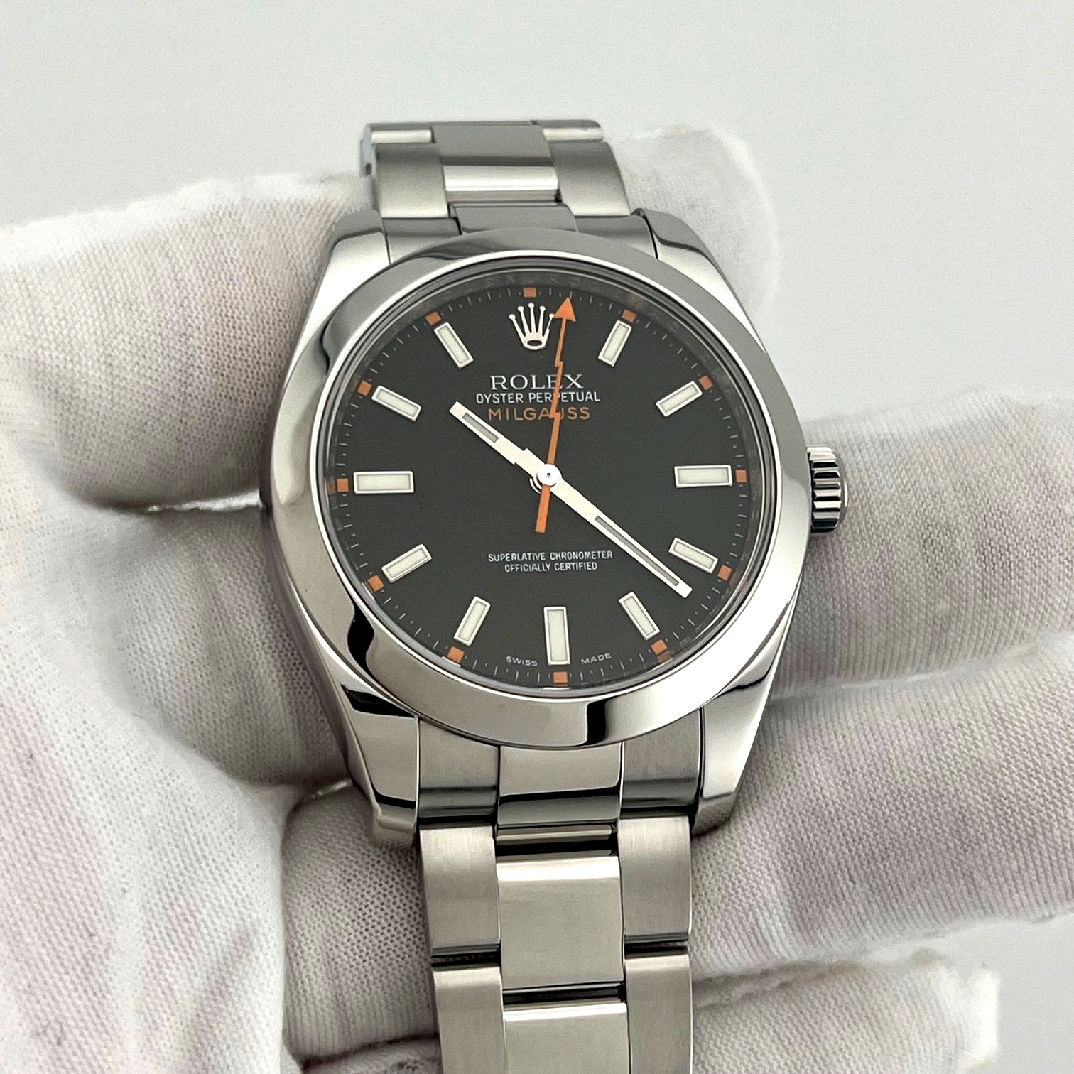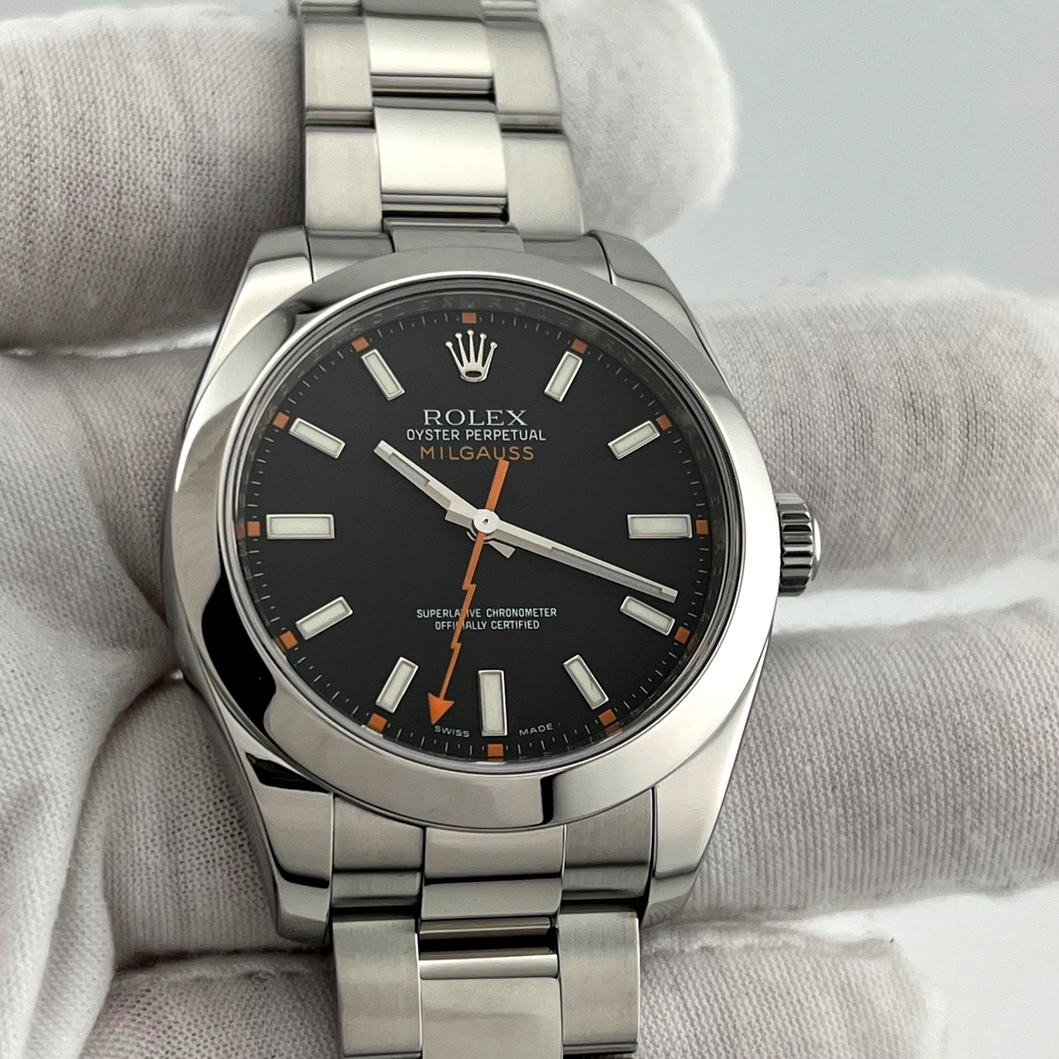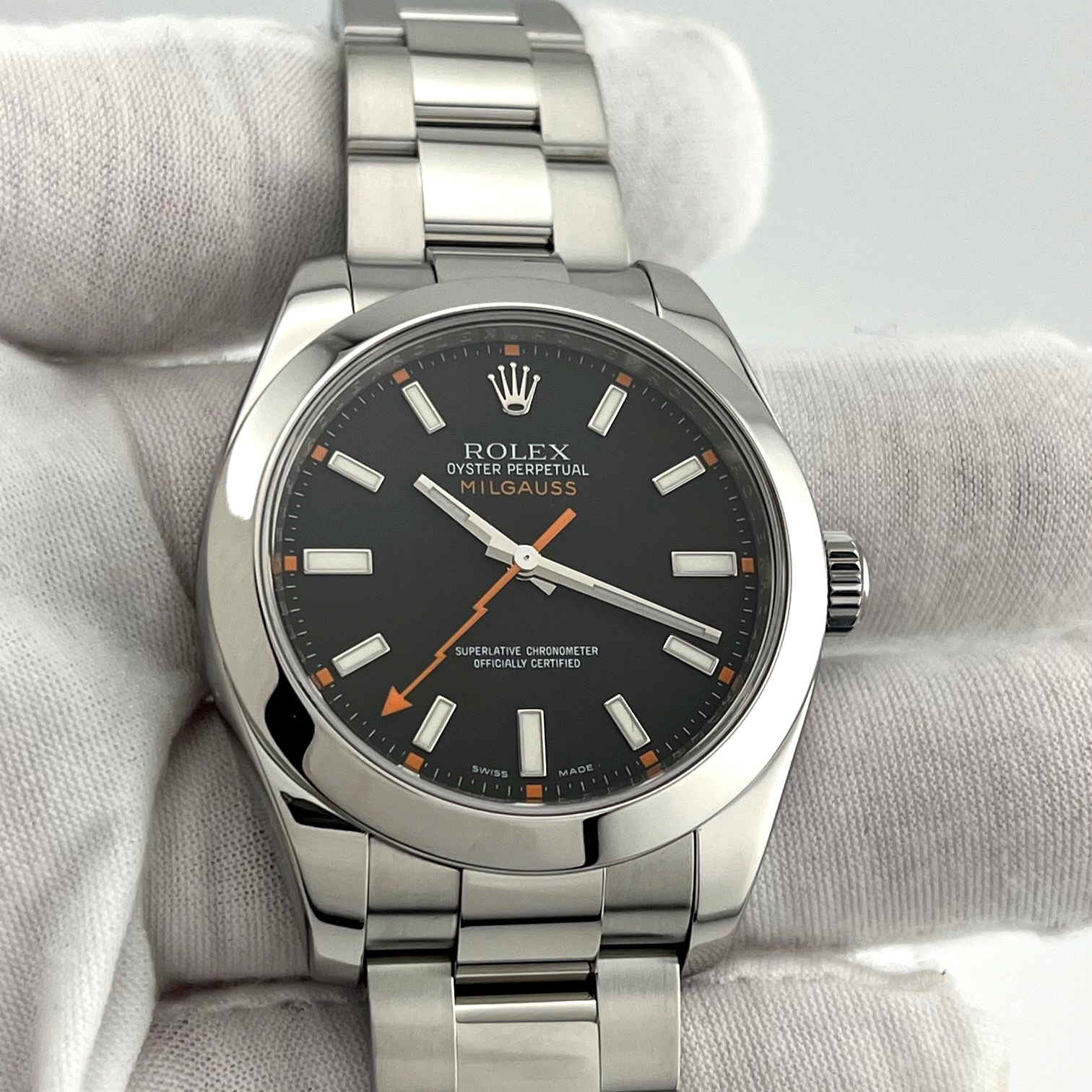 Rolex Milgauss 116400 40mm Black Dial Stainless Steel Box Booklets Rolex Sale! from 929500 /per This item is a recurring or deferred purchase. By continuing, I agree to the cancellation policy and authorize you to charge my payment method at the prices, frequency and dates listed on this page until my order is fulfilled or I cancel, if permitted. +1 (619) 232-1273 This item is currently on backorder but you can still purchase it now and we'll ship as soon as more become available. Style Number: 116400Serial: V38****Year: 2008-2009 Model: Rolex Milgauss Case Material: Stainless Steel Band: Stainless Steel Bezel: Stainless Steel Dial: Black Crystal: Sapphire Case Size: 40mm Includes: - Rolex Box, Booklet, & Tag- Certified Appraisal - 1 Year WarrantySKU 23115 / 120175TLK092025