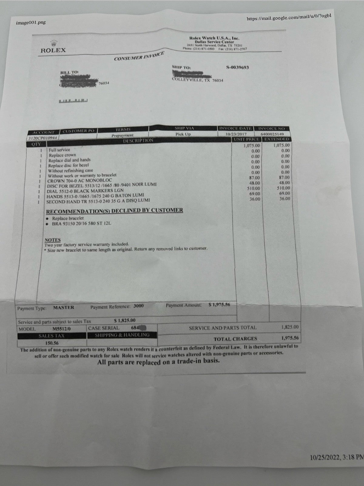 Rolex Submariner 5512 40mm Stainless Steel Rolex Service Receipt Rolex Sale! from 1499500 /per This item is a recurring or deferred purchase. By continuing, I agree to the cancellation policy and authorize you to charge my payment method at the prices, frequency and dates listed on this page until my order is fulfilled or I cancel, if permitted. +1 (619) 232-1273 This item is currently on backorder but you can still purchase it now and we'll ship as soon as more become available. Style Number: 5512Serial: 68****Year: 1961 Model: Rolex Submariner Case Material: Stainless Steel Band: Stainless Steel Bezel: Black Dial: Black Crystal: Acrylic Case Size: 40mm Includes: - Elegant Watch Box- Certified Appraisal - 1 Year WarrantySKU 22753 / 125470TSTADEN070225