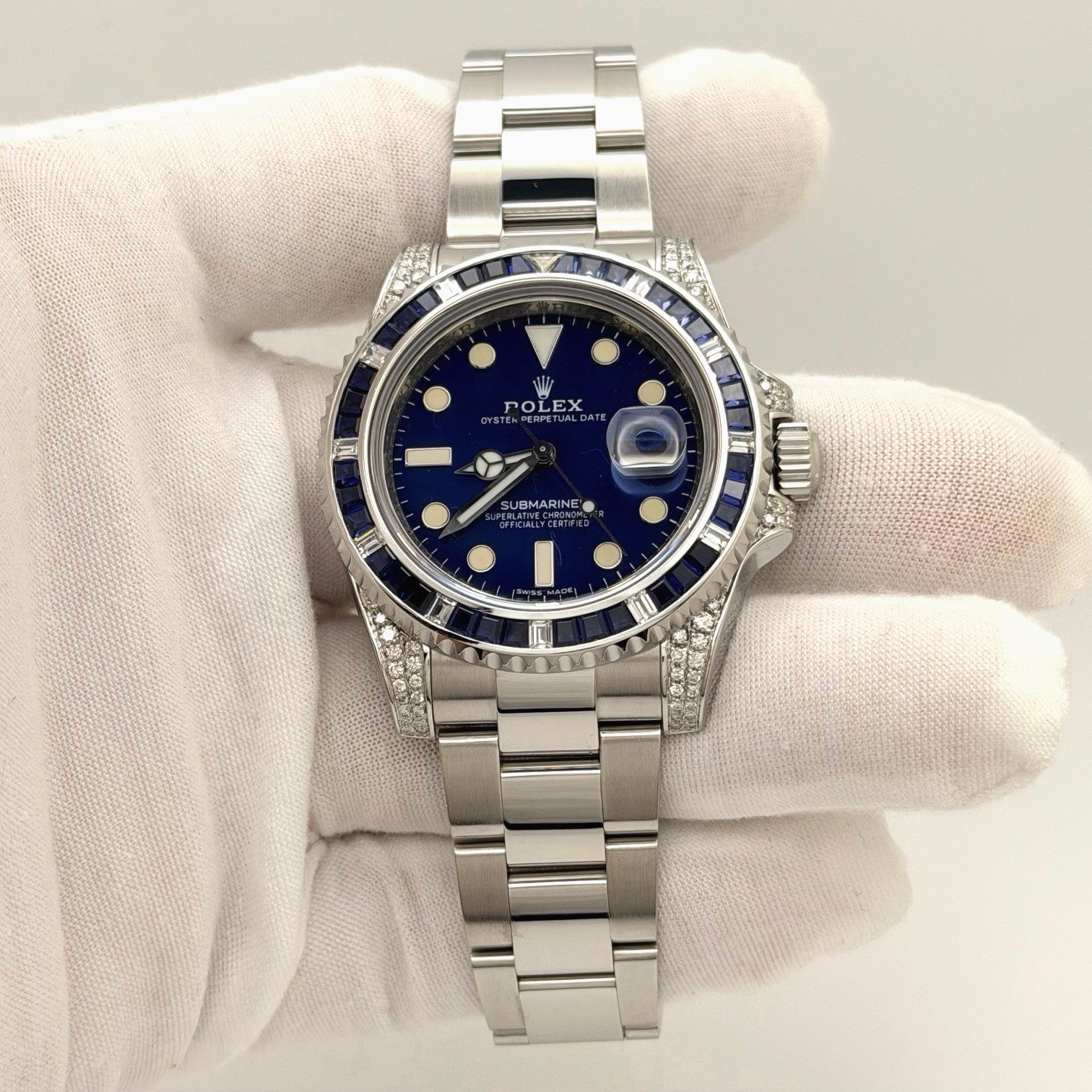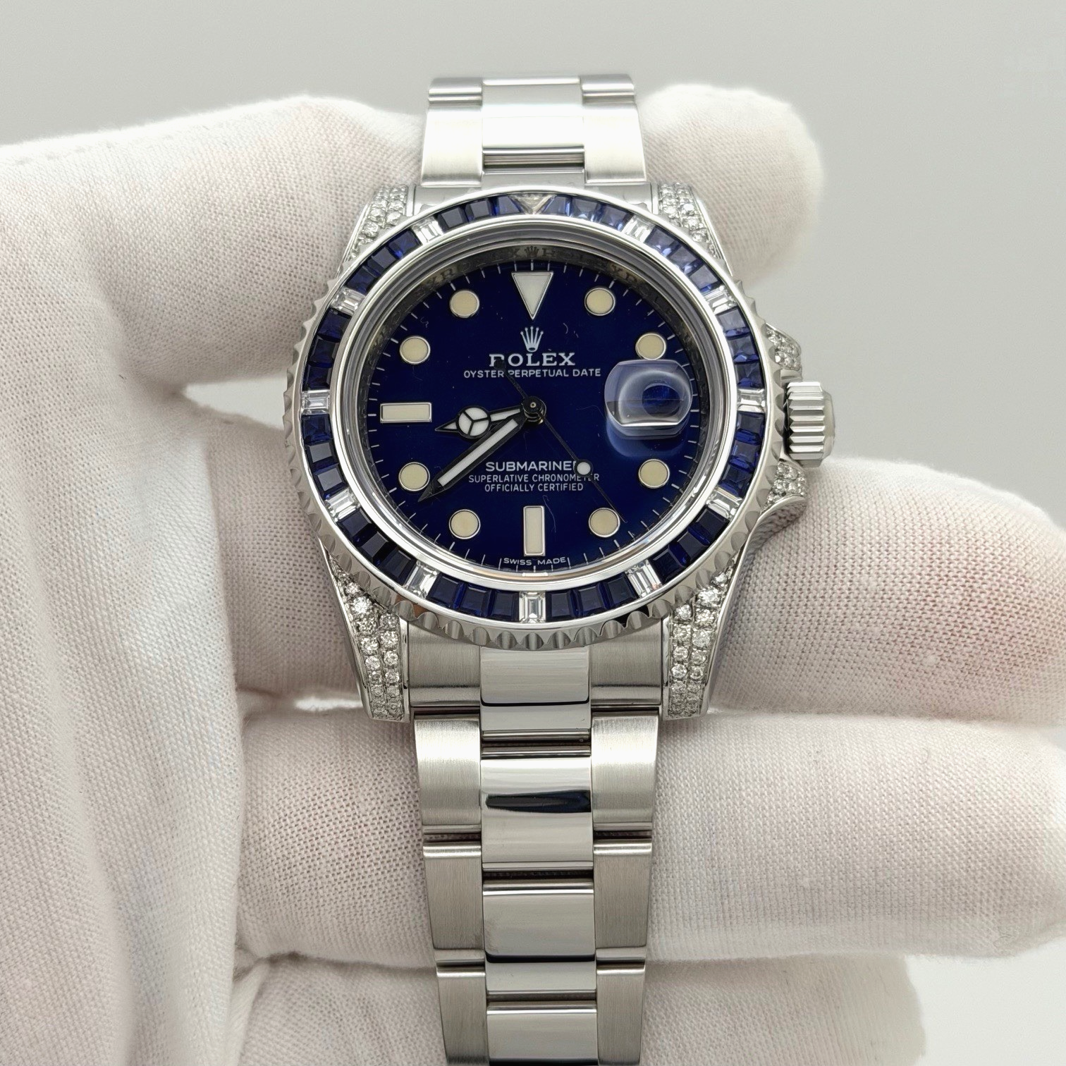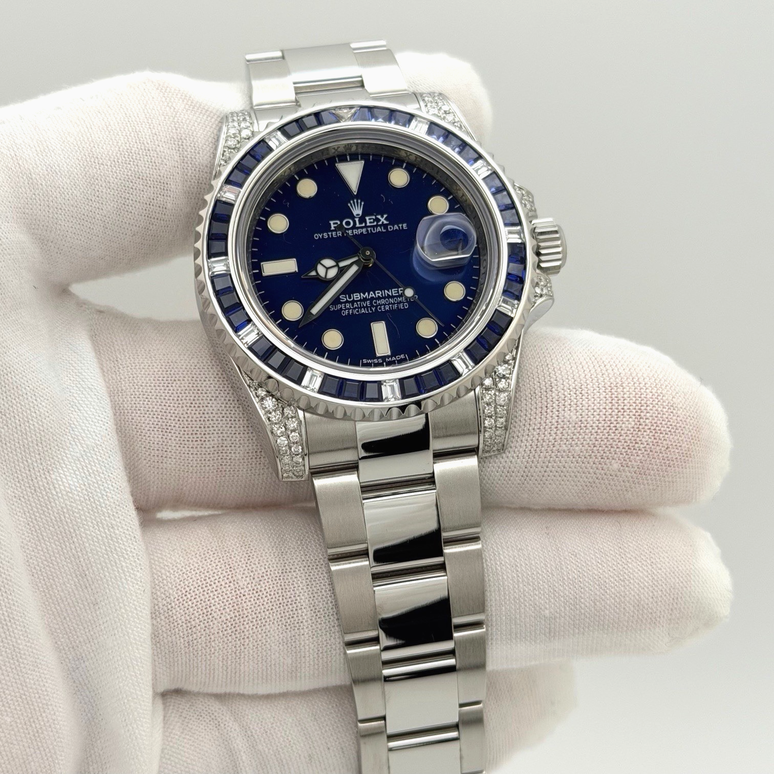 Rolex Submariner Blue 116610 40mm Custom SABR Diamond Case Sapphire Bezel Steel Rolex Sale! from 1299500 /per This item is a recurring or deferred purchase. By continuing, I agree to the cancellation policy and authorize you to charge my payment method at the prices, frequency and dates listed on this page until my order is fulfilled or I cancel, if permitted. +1 (619) 232-1273 This item is currently on backorder but you can still purchase it now and we'll ship as soon as more become available. Style Number: 116610Serial: 70W7****Year: 2010-2020 Model: Rolex Submariner Date Case Material: Stainless Steel with Custom Diamonds Band: Stainless Steel Bezel: Custom Diamond & Sapphire Bezel Dial: Blue Crystal: Sapphire Case Size: 40mm Includes: - Rolex Watch Box- Certified Appraisal - One Year WarrantySKU 23576 / 122560TMF011826