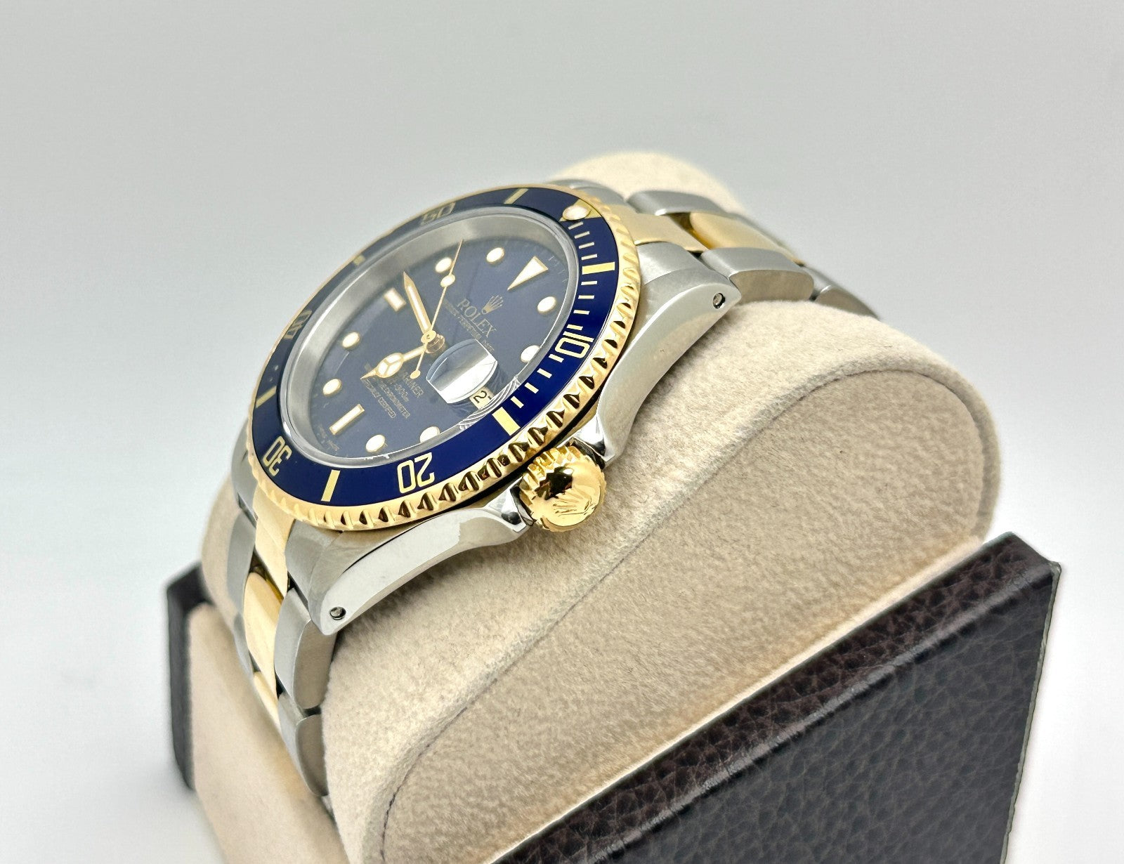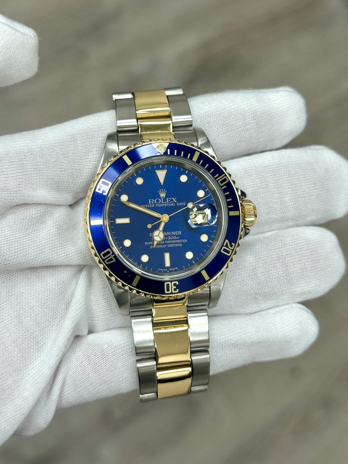 Rolex Submariner Blue 16613 40mm 18K Yellow Gold Stainless Steel Rolex Sale! from 1049500 /per This item is a recurring or deferred purchase. By continuing, I agree to the cancellation policy and authorize you to charge my payment method at the prices, frequency and dates listed on this page until my order is fulfilled or I cancel, if permitted. +1 (619) 232-1273 This item is currently on backorder but you can still purchase it now and we'll ship as soon as more become available. Style Number: 16613Serial: L460***Year: 1989 Model: Rolex Submariner Case Material: Stainless Steel Band: 18K Yellow Gold & Stainless Steel Bezel: Blue Dial: Blue Crystal: Sapphire Crystal Case Size: 40mm Includes: - Elegant Watch Box- Certified Appraisal - One Year WarrantySKU 23555 / 125275TLK122725