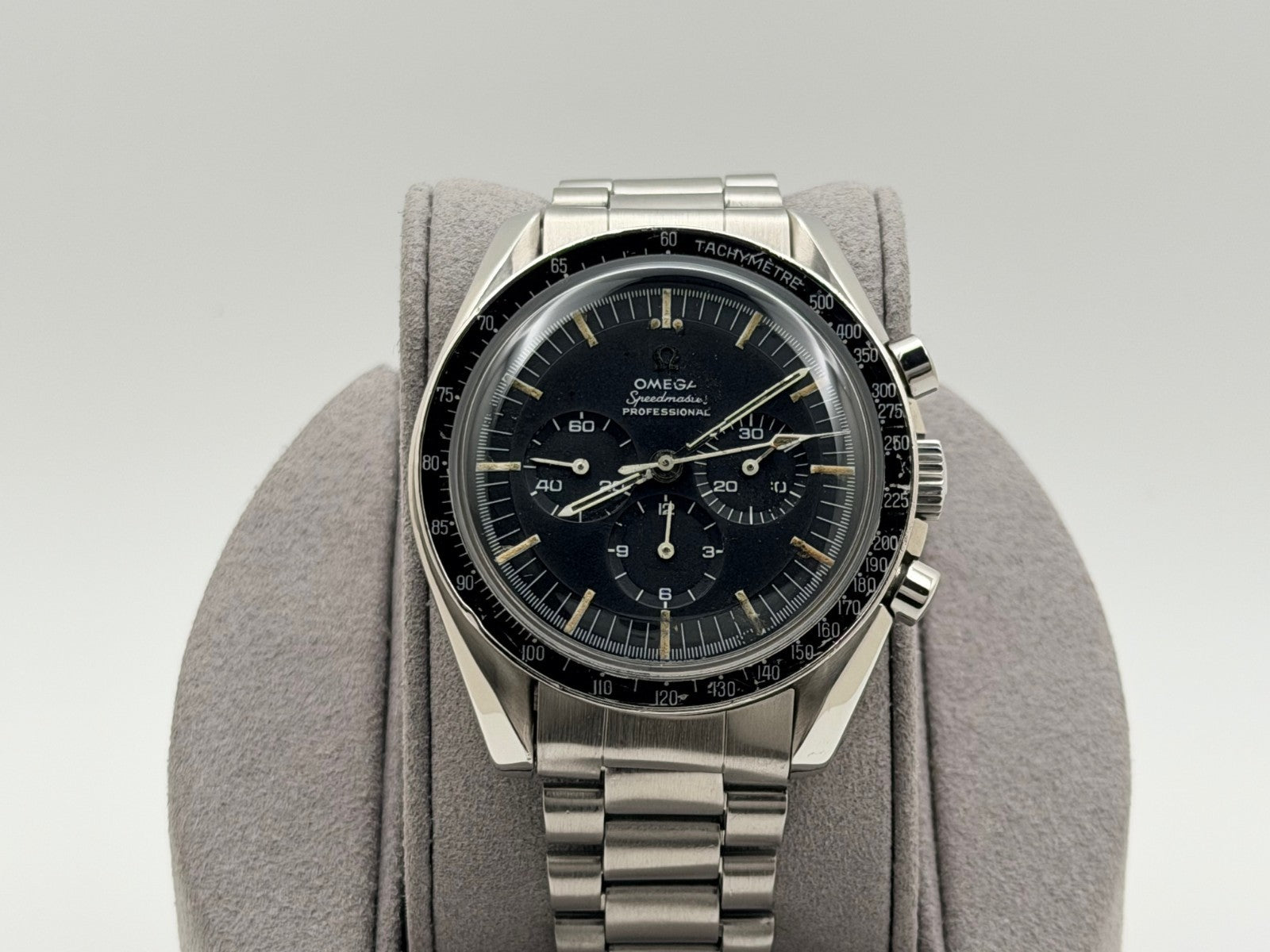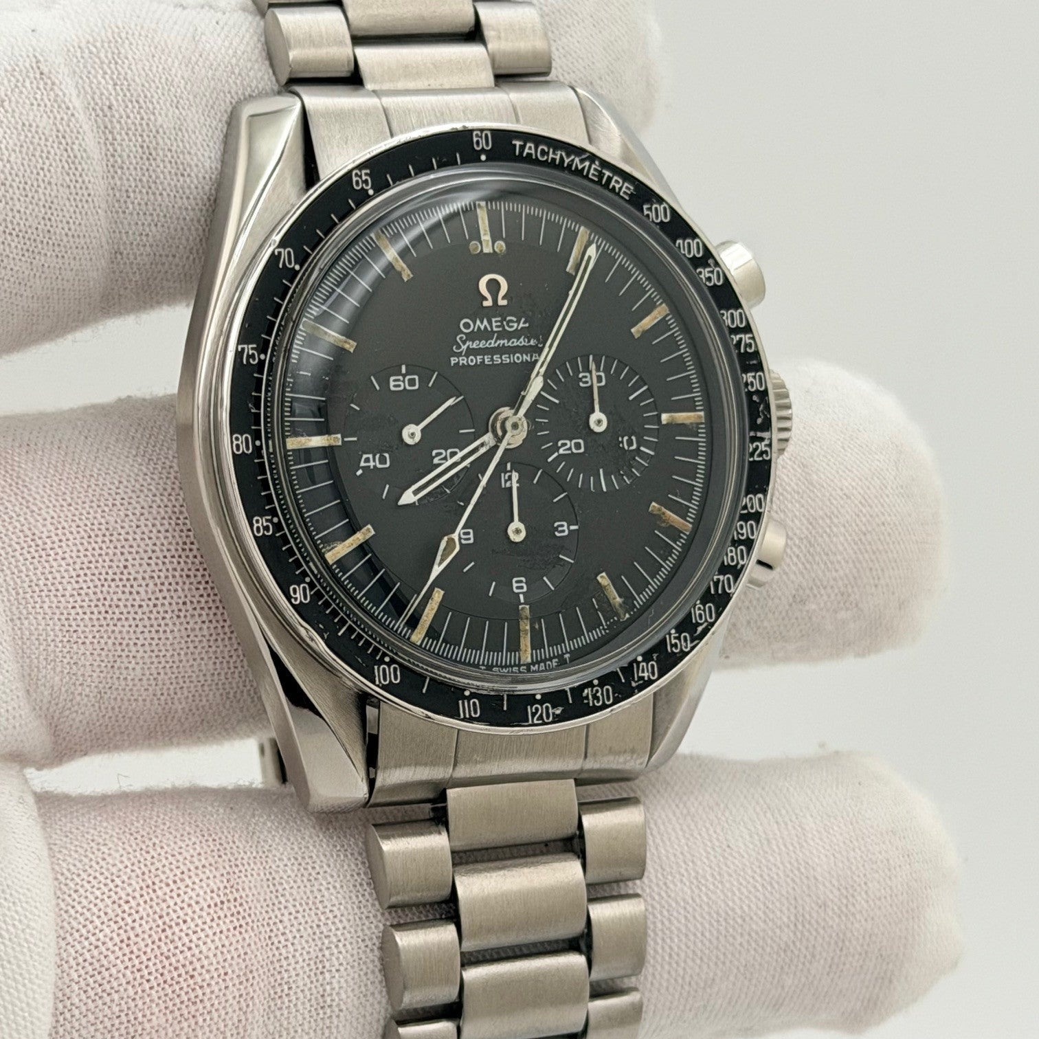 Vintage Omega Speedmaster Professional Moonwatch 105.012 42mm Black Dial OMEGA Sale! from 899500 /per This item is a recurring or deferred purchase. By continuing, I agree to the cancellation policy and authorize you to charge my payment method at the prices, frequency and dates listed on this page until my order is fulfilled or I cancel, if permitted. +1 (619) 232-1273 This item is currently on backorder but you can still purchase it now and we'll ship as soon as more become available. Style Number: 105.012Year: 1964-1968 Model: OMEGA Speedmaster Professional Moonwatch Case Material: Stainless Steel Band: Stainless Steel Bezel: Black Dial: Black Crystal: Acrylic Case Size: 42mm Includes: -Elegant Watch Box-Certified Appraisal -1 Year WarrantySKU 22822 / 14110TJD072525