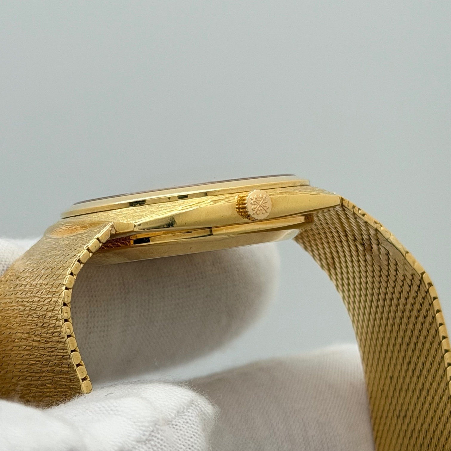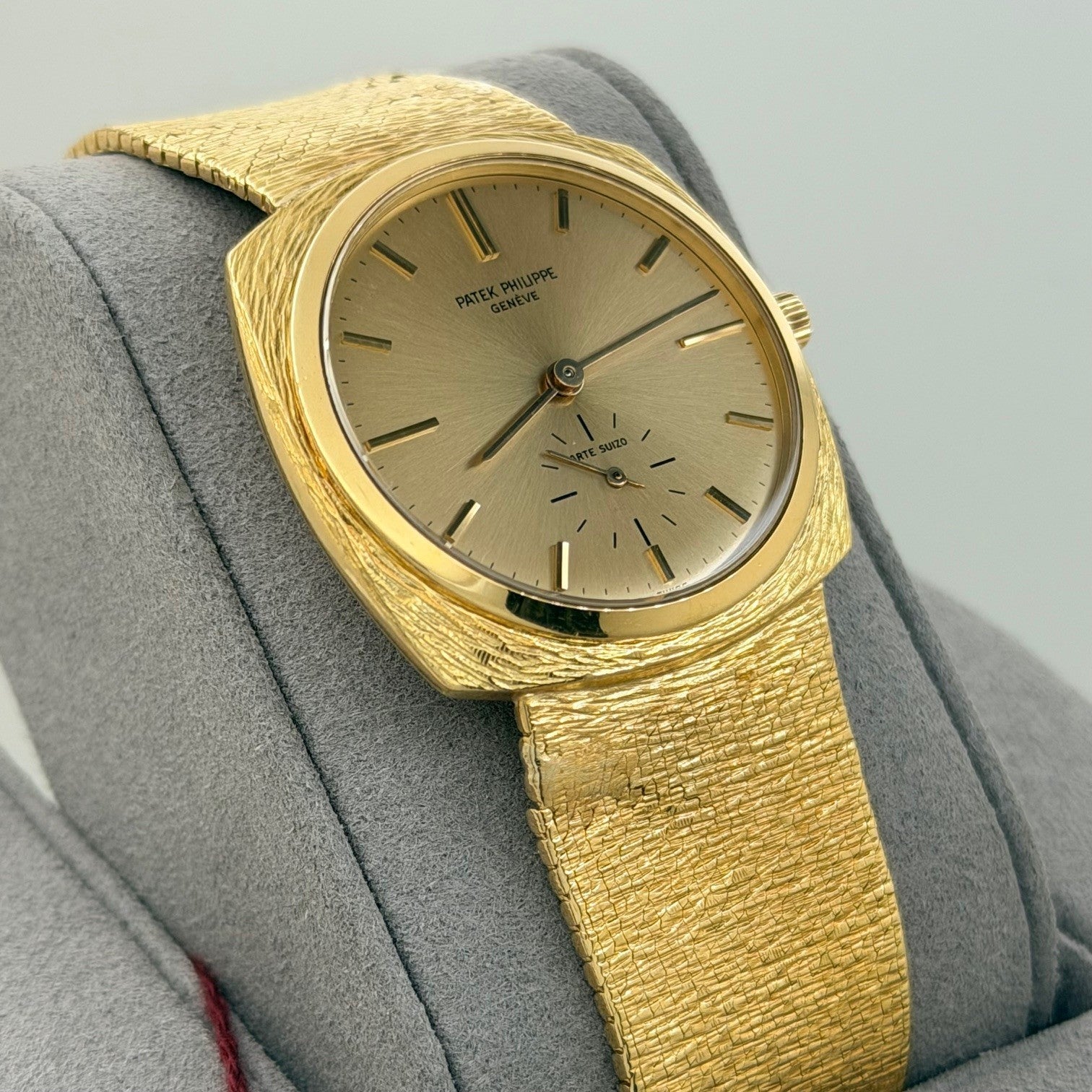 Vintage Patek Philippe Calatrava 3525 32mm Champagne Dial 18k Yellow Gold Patek Philippe Sale! from 1899500 /per This item is a recurring or deferred purchase. By continuing, I agree to the cancellation policy and authorize you to charge my payment method at the prices, frequency and dates listed on this page until my order is fulfilled or I cancel, if permitted. +1 (619) 232-1273 This item is currently on backorder but you can still purchase it now and we'll ship as soon as more become available. Style Number: 3525J Model: Patek Philippe Calatrava Case Material: 18k Yellow Gold Band: 18k Yellow Gold. Wrist size 7.25 Inch. band has some wear Bezel: 18k Yellow Gold Dial: Champagne Crystal: Acrylic Case Size: 32mm Includes: -Elegant Watch Box-Certified Appraisal -1 Year WarrantySKU 23531 / 133540TJF12302593G