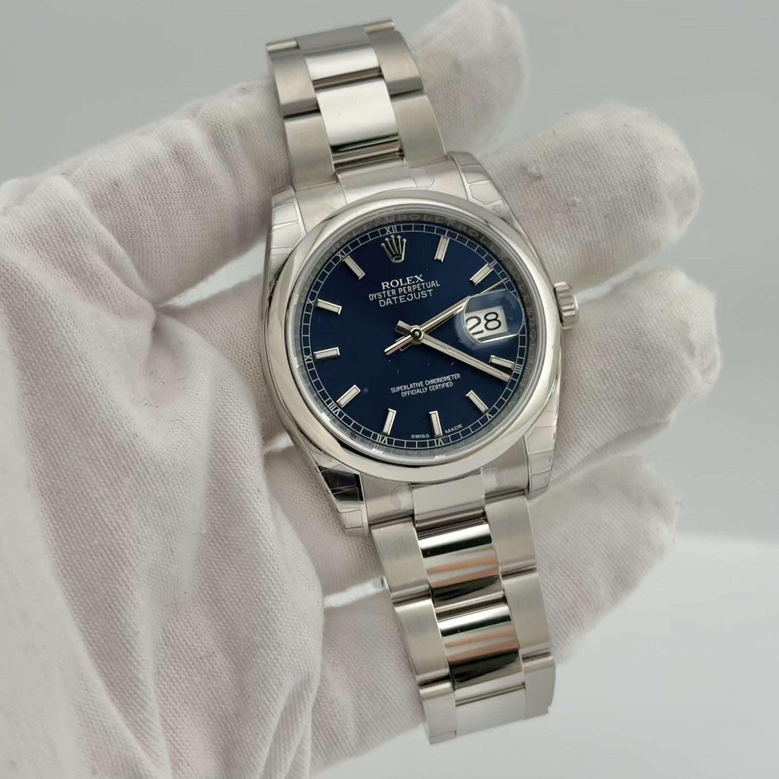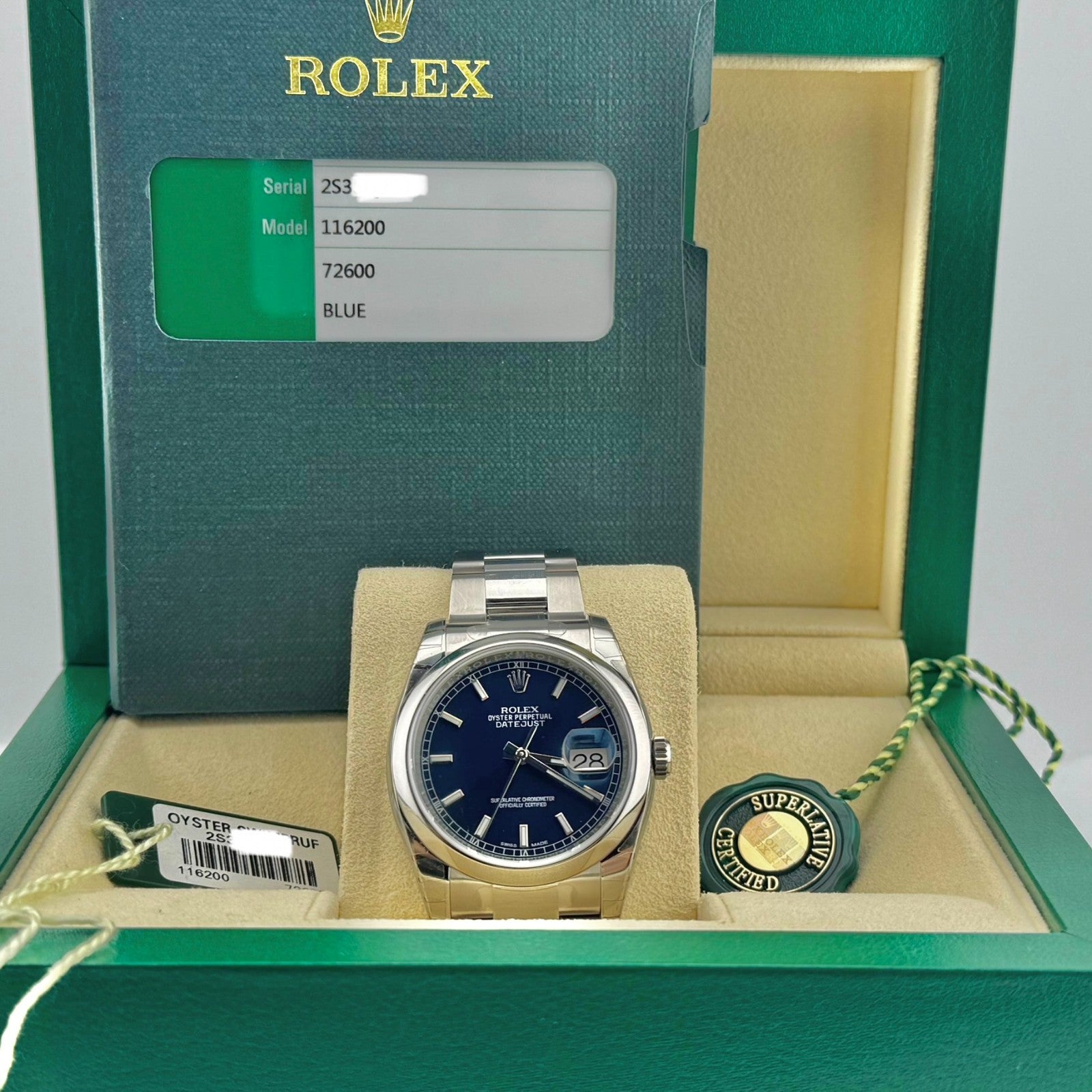 Rolex Datejust 116200 36mm Blue Dial Stainless Steel Box Papers Factory Stickers