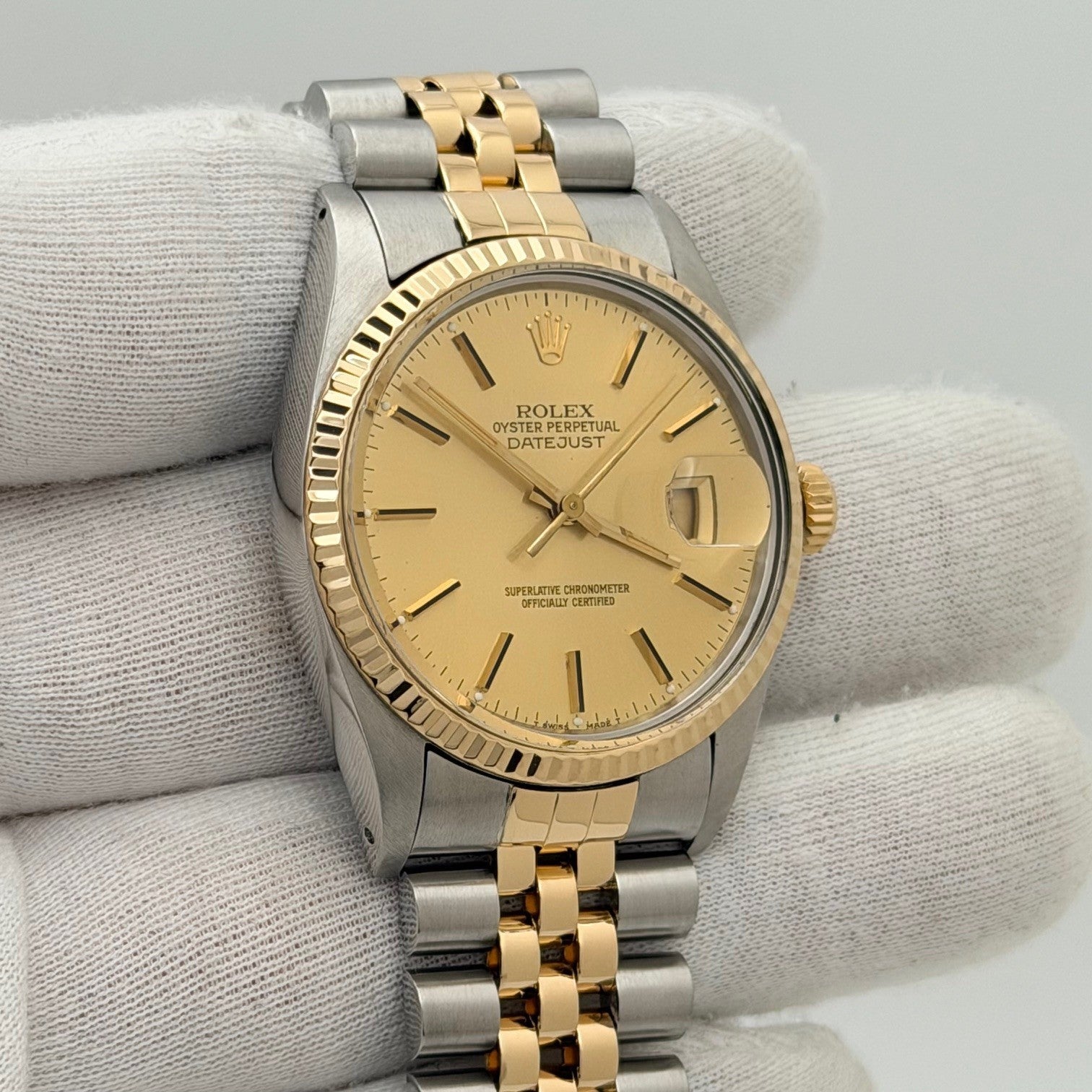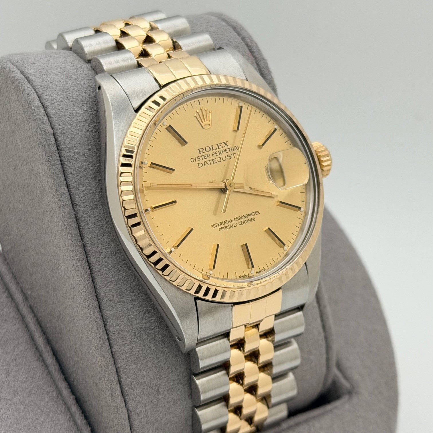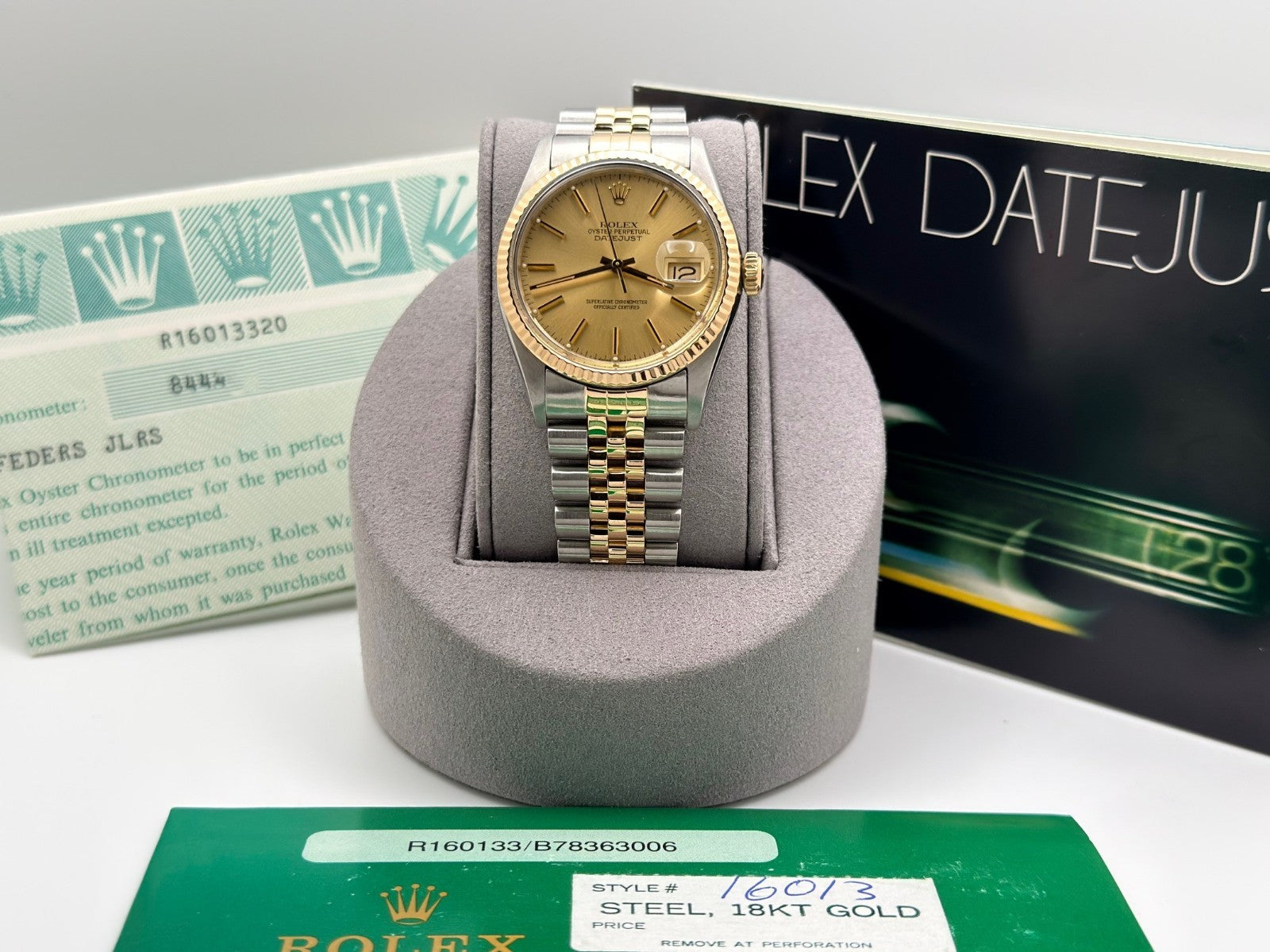 Rolex Datejust 16013 36mm Champagne 18k Yellow Gold Steel Jubilee Box Papers