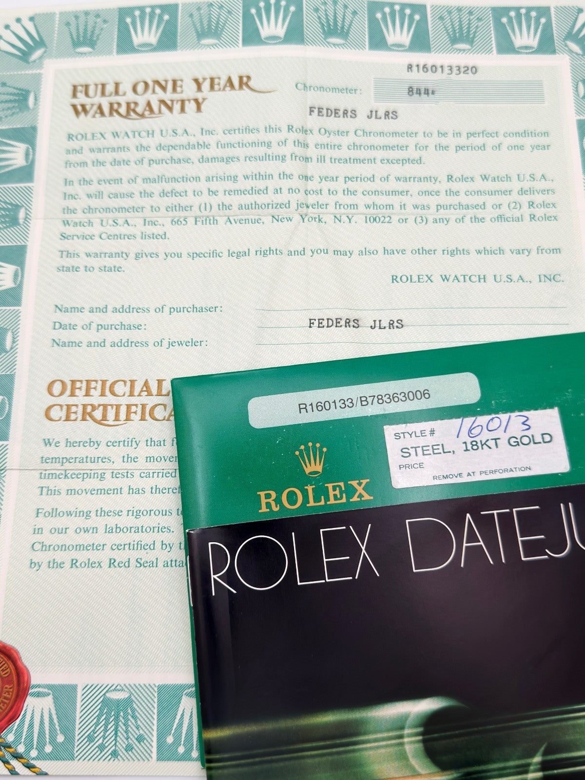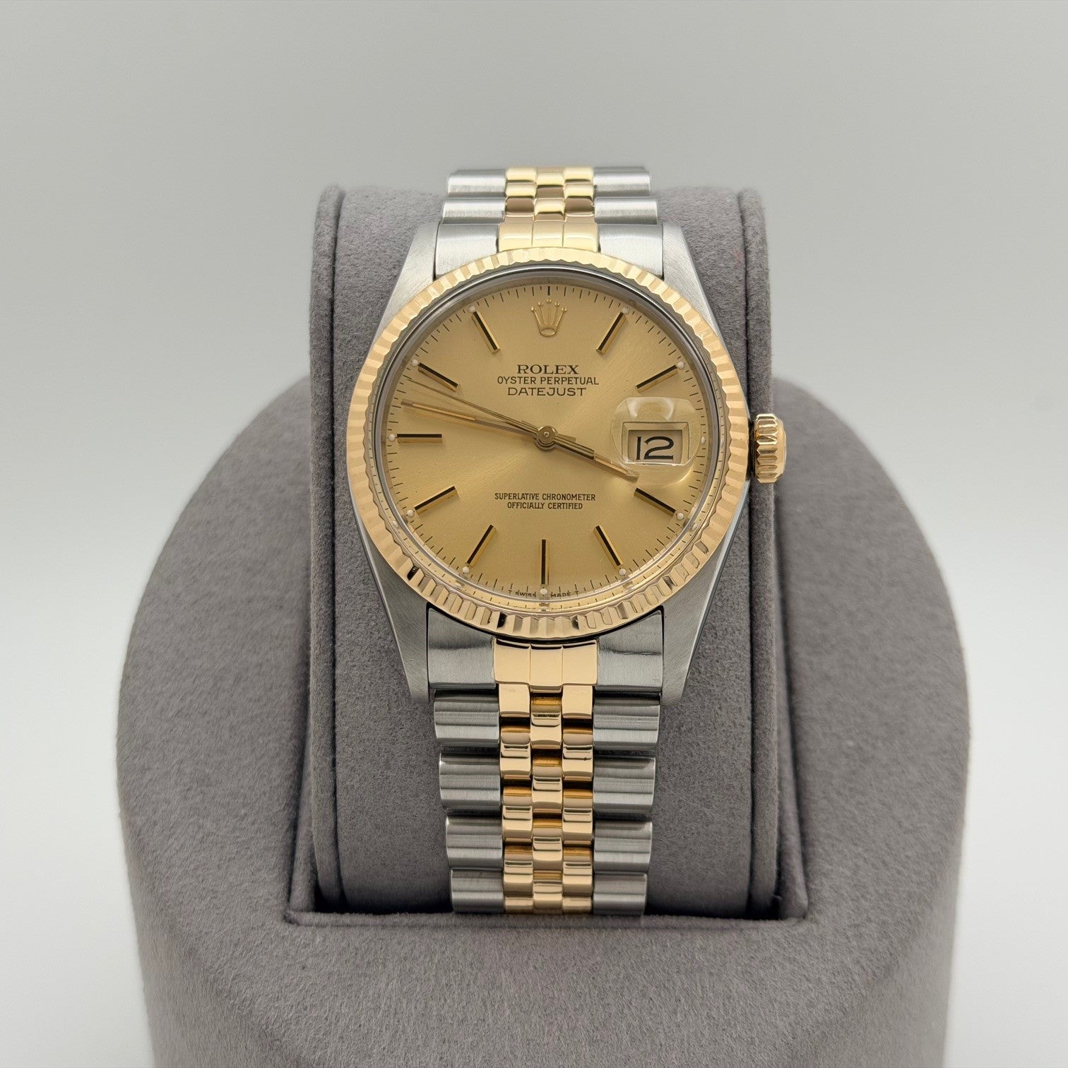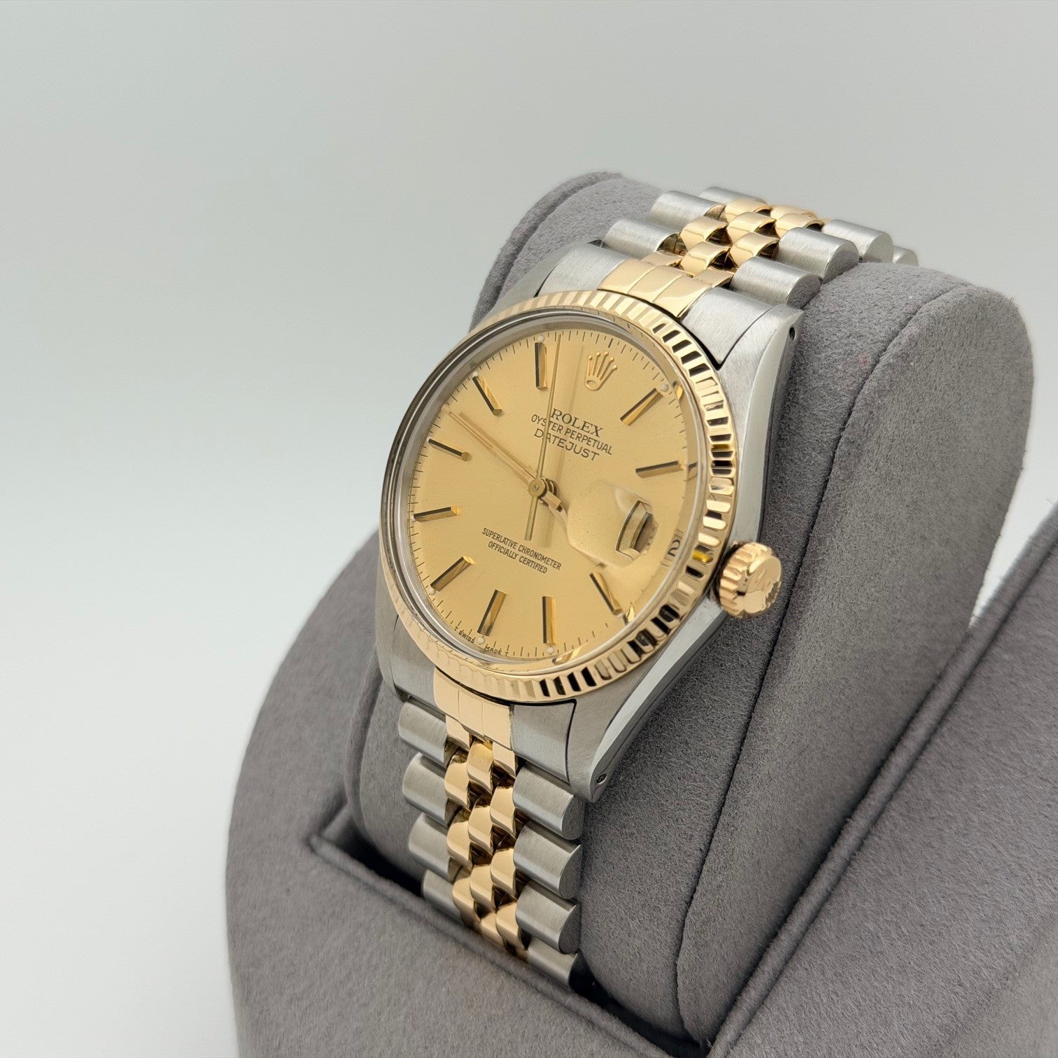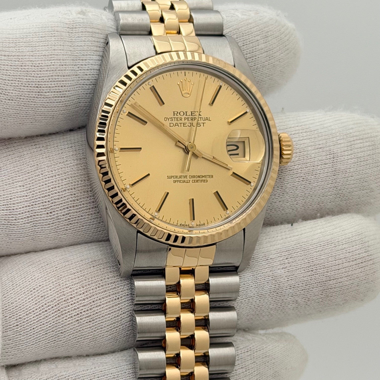 Rolex Datejust 16013 36mm Champagne 18k Yellow Gold Steel Jubilee Box Papers