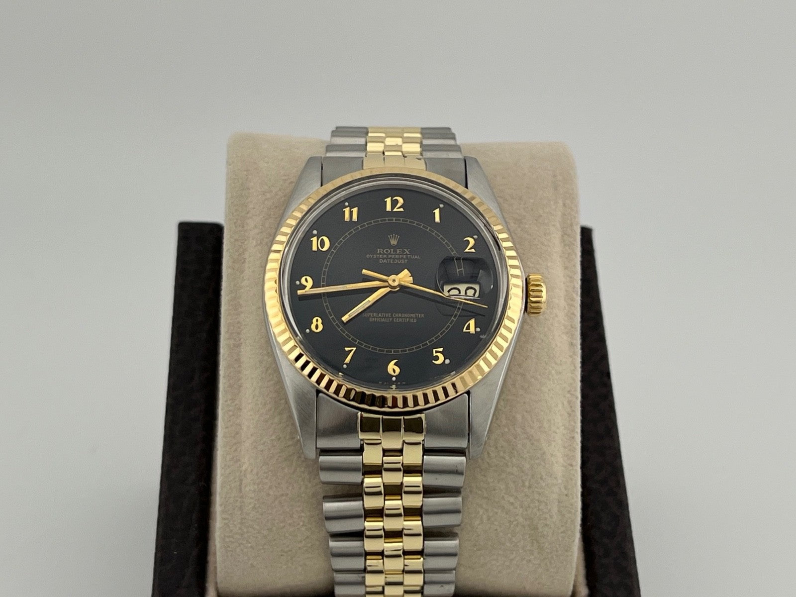 Rolex Datejust 16030 36mm Black Boiler Gauge Dial 14k Yellow Gold Steel Jubilee Rolex Sale! from 619500 /per This item is a recurring or deferred purchase. By continuing, I agree to the cancellation policy and authorize you to charge my payment method at the prices, frequency and dates listed on this page until my order is fulfilled or I cancel, if permitted. +1 (619) 232-1273 This item is currently on backorder but you can still purchase it now and we'll ship as soon as more become available. Style Number: 16030Serial: 596****Year: 1987 Model: Rolex Datejust Case Material: Stainless Steel Band: 14k Yellow Gold & Stainless Steel JubileeBezel: 14k Yellow Gold Fluted Dial: Black 'Boiler Gauge' Dial Crystal: Acrylic Case Size: 36mm Includes: - Elegant Watch Box- Certified Appraisal - 1 Year WarrantySKU 20924 / 18289TRP020621