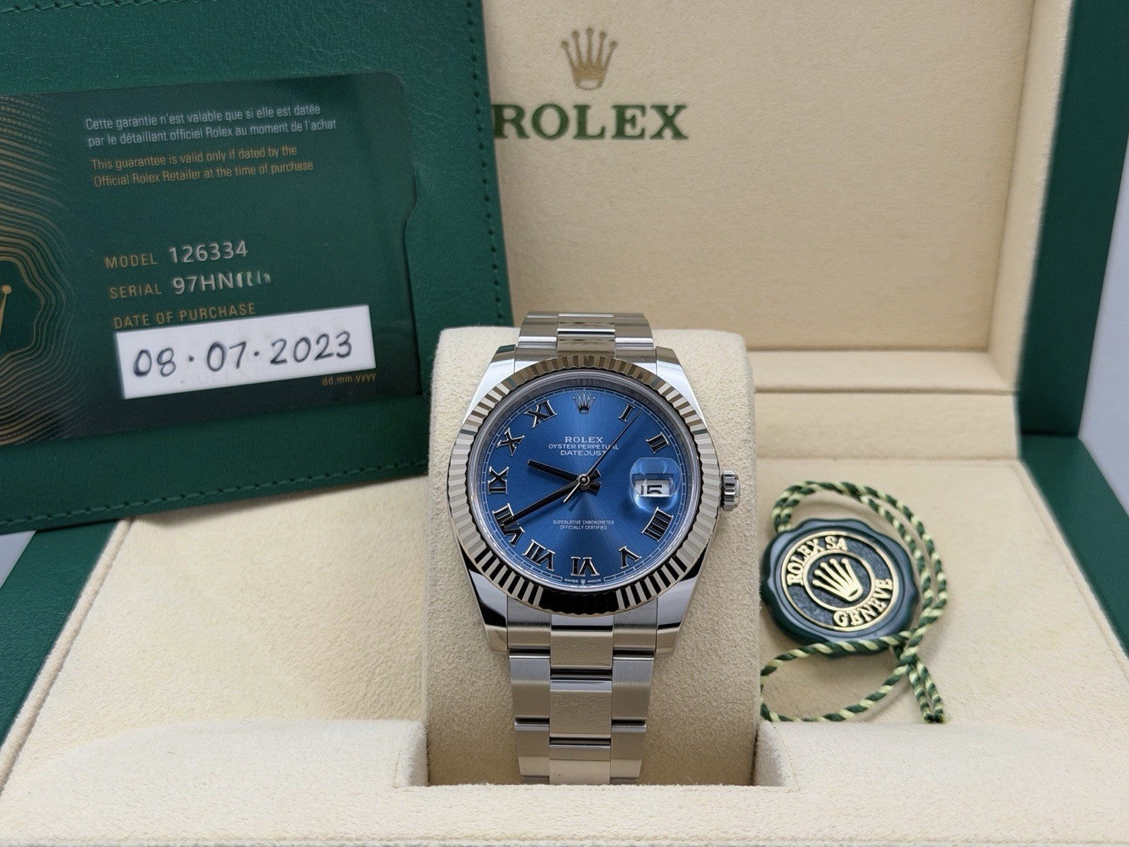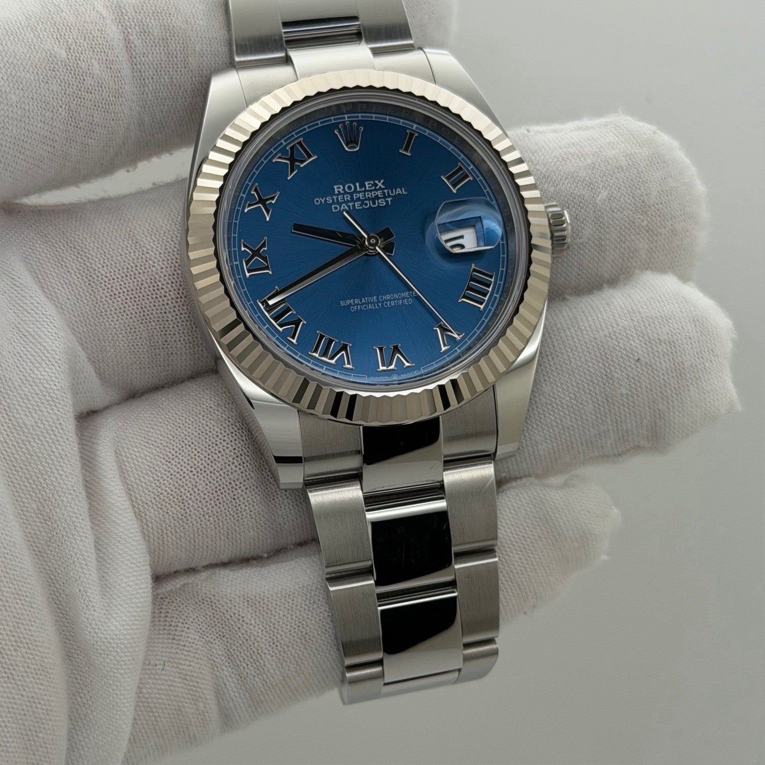 Rolex Datejust 41 126334 41mm Blue Azzurro Dial 18K White Gold Steel Box Paper