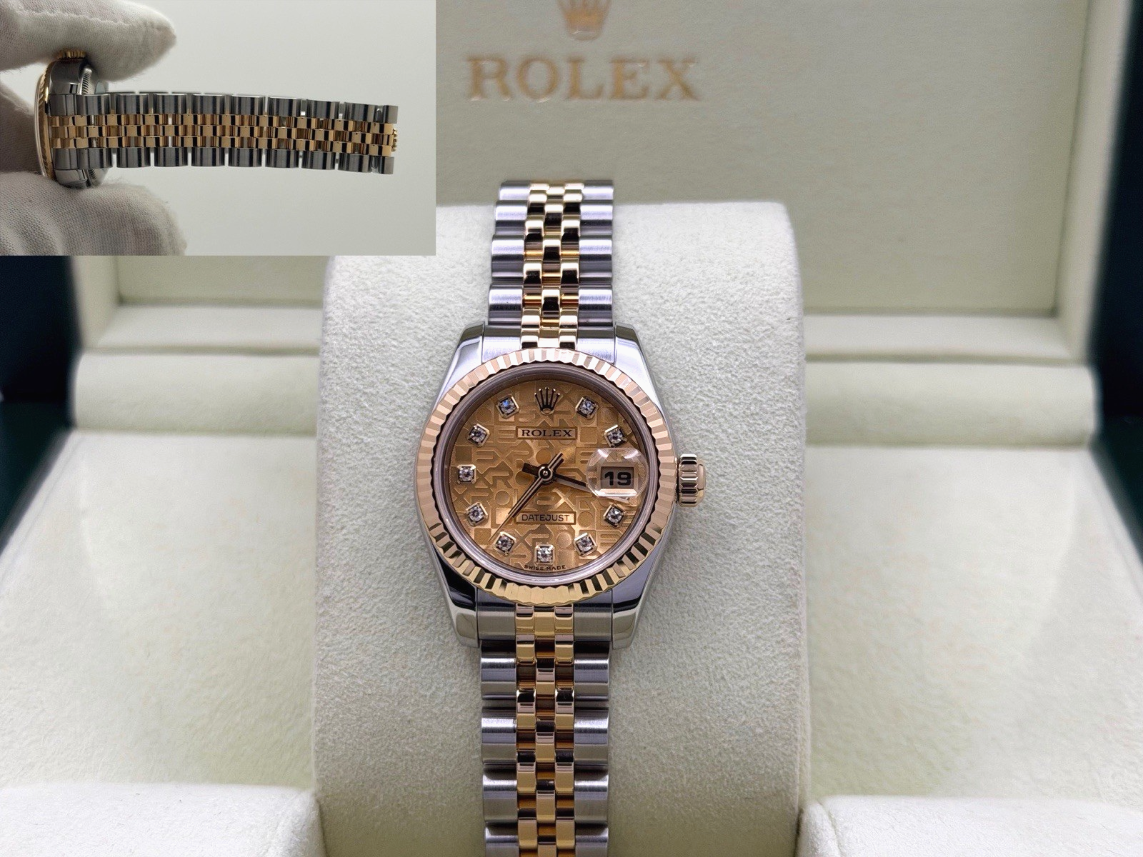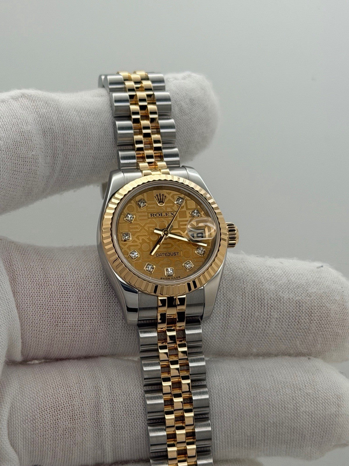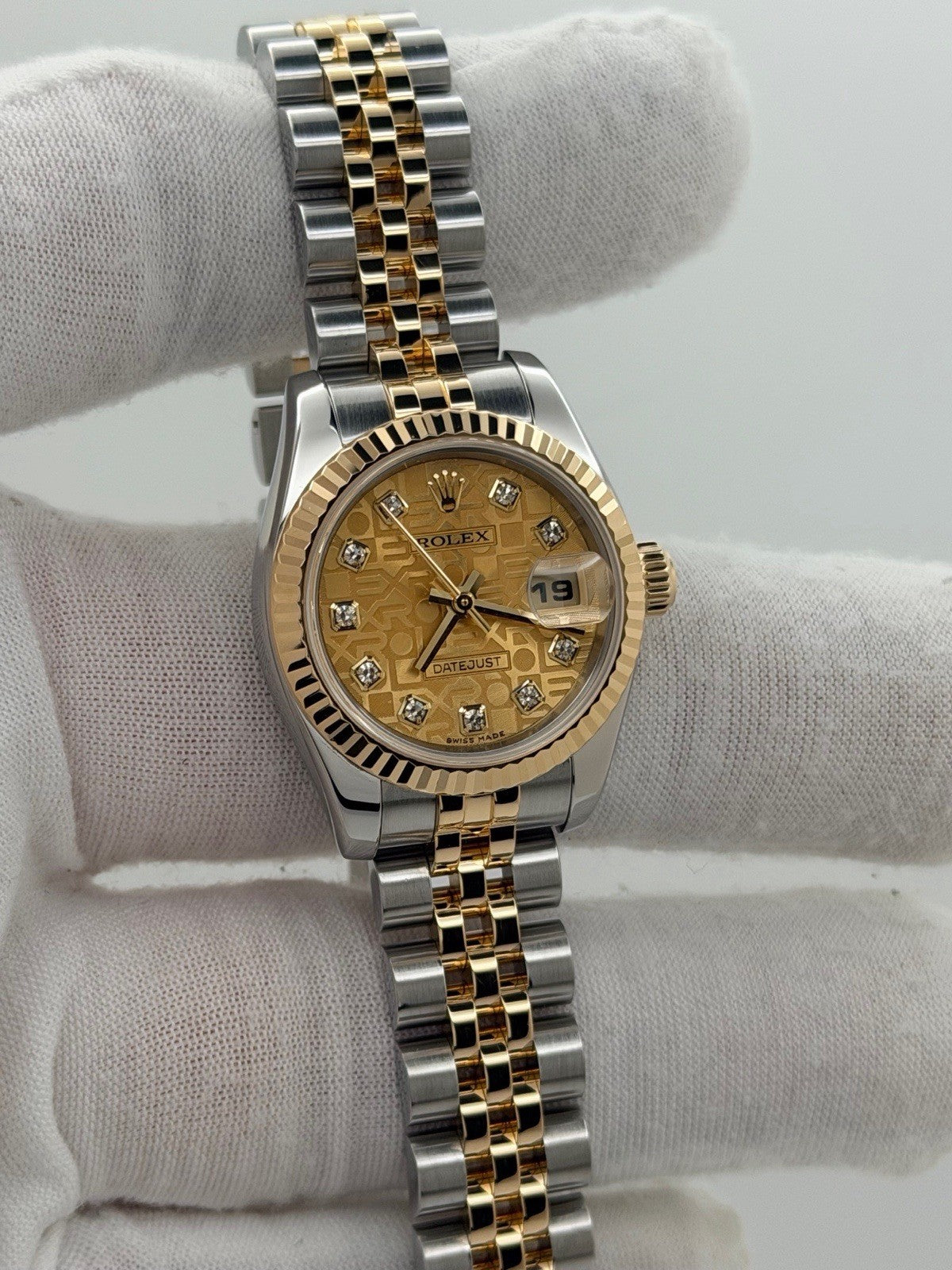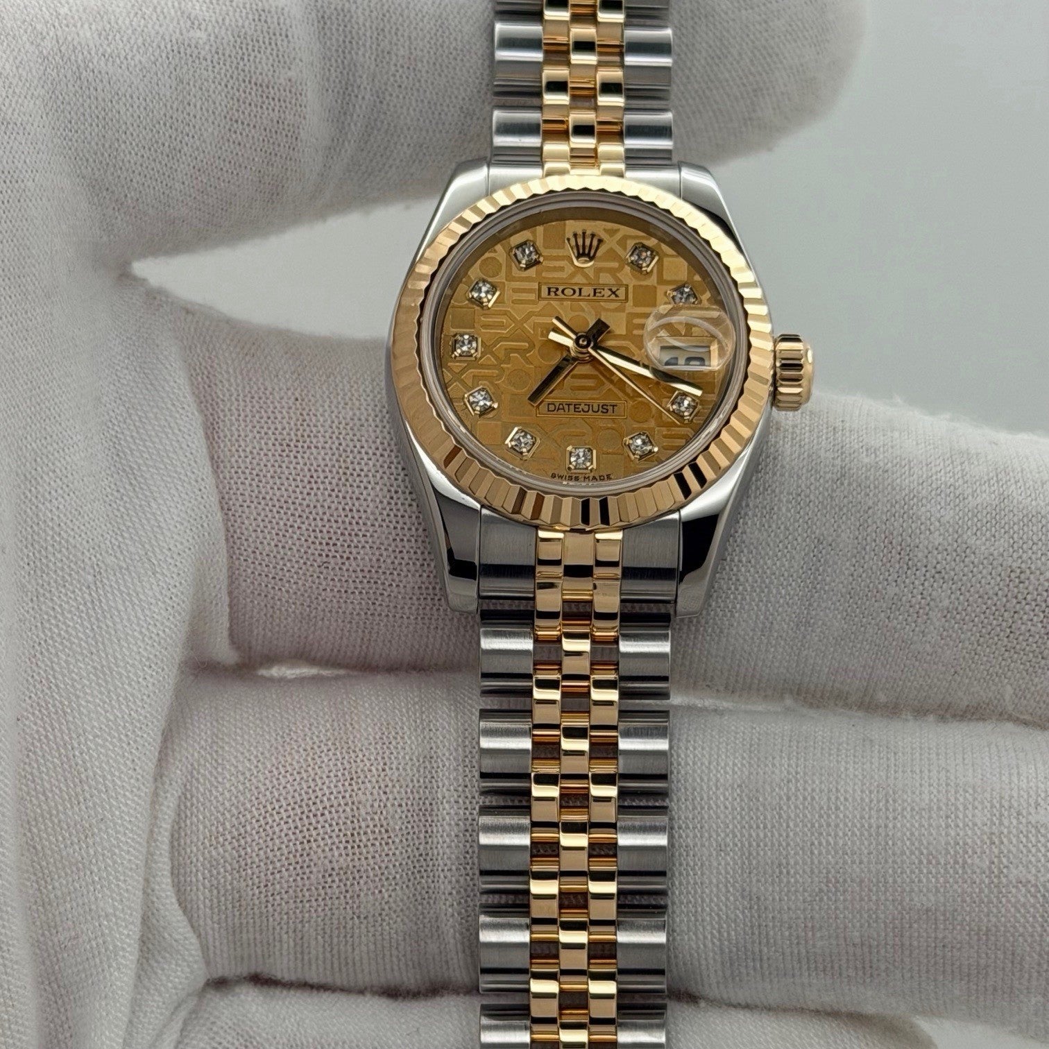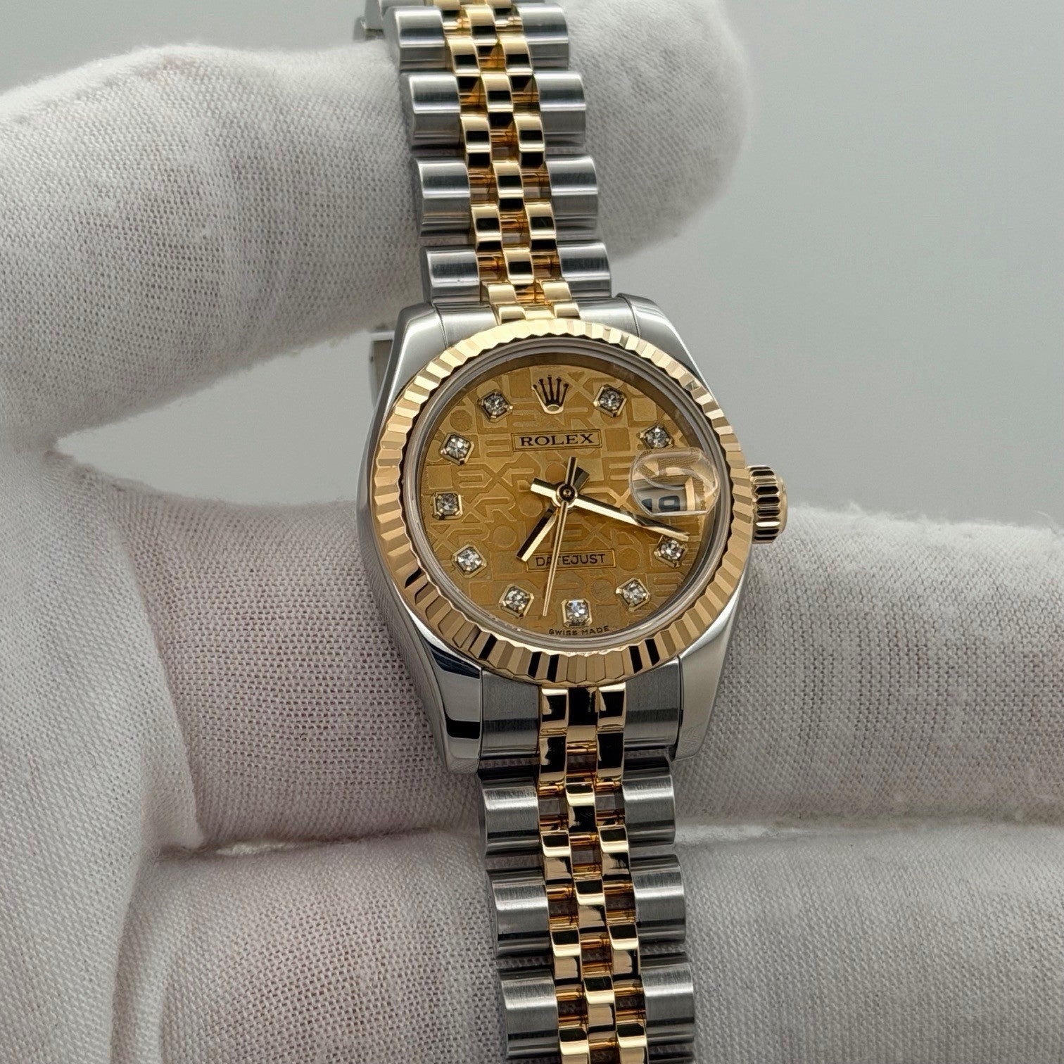 Rolex Ladies Datejust 179173 26mm Champagne Jubilee Diamond Dial 18k Gold Steel