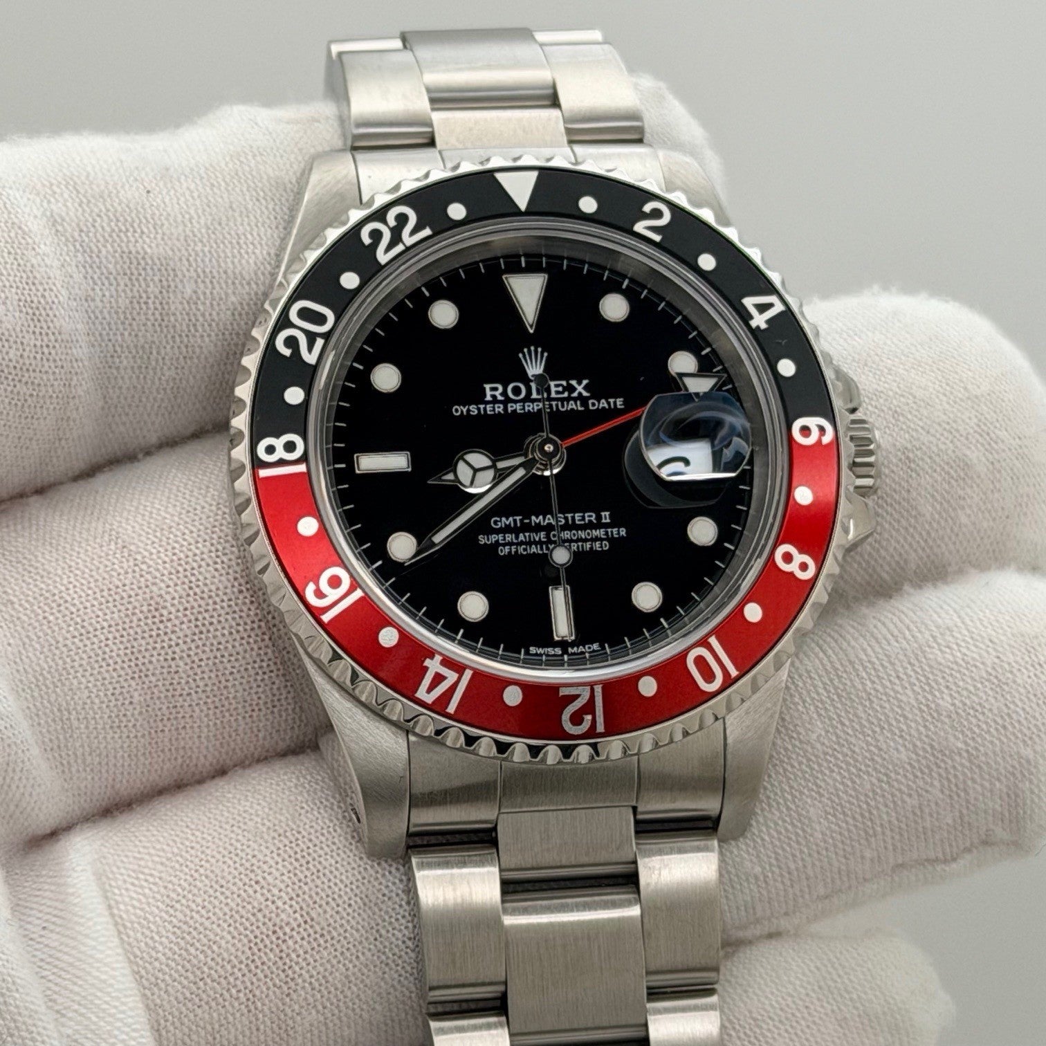 Rolex GMT Master II Coke 16710 40mm Red Black Bezel Steel Box Service Card