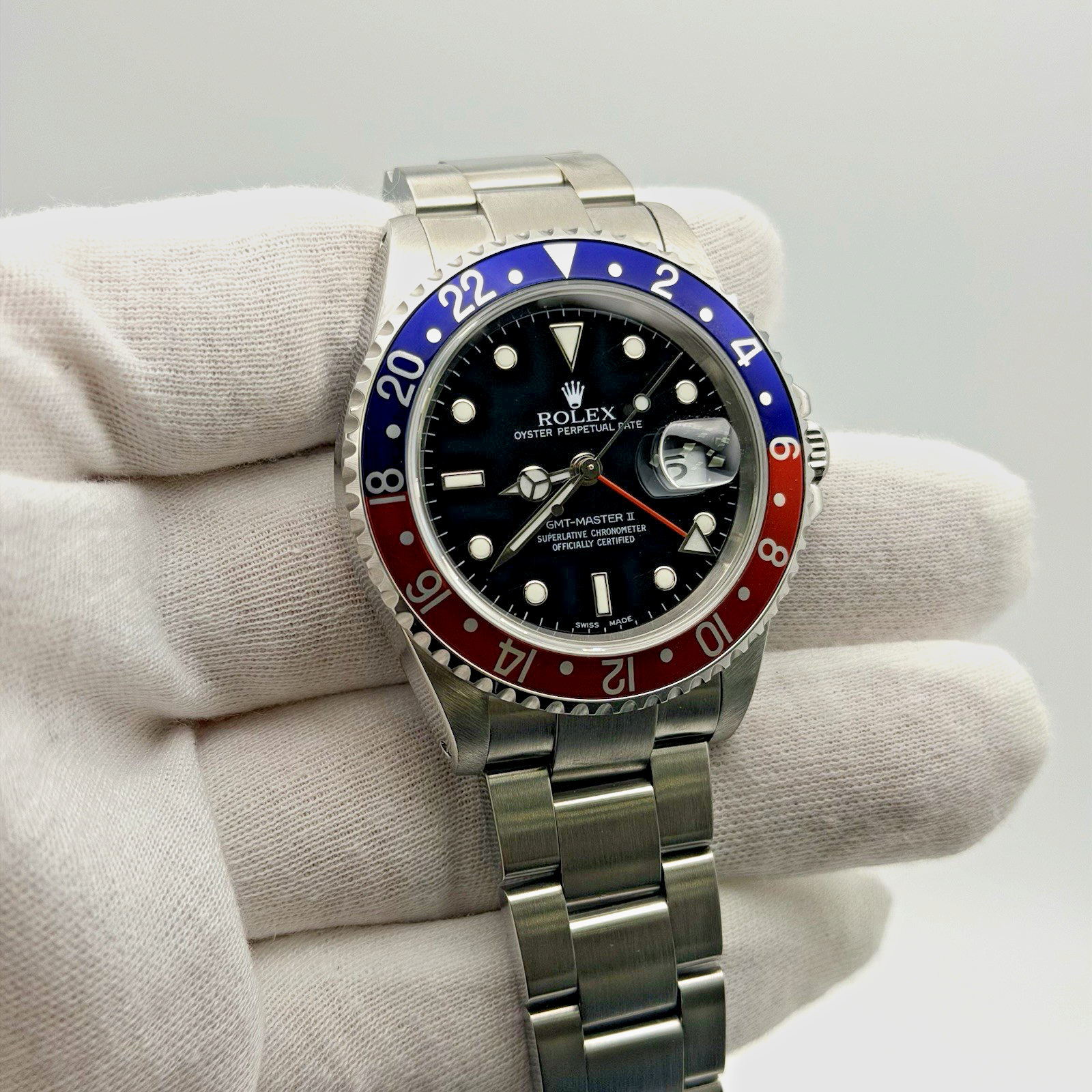 2002 Rolex GMT Master II Pepsi 16710 40mm Red Blue Bezel Stainless Steel