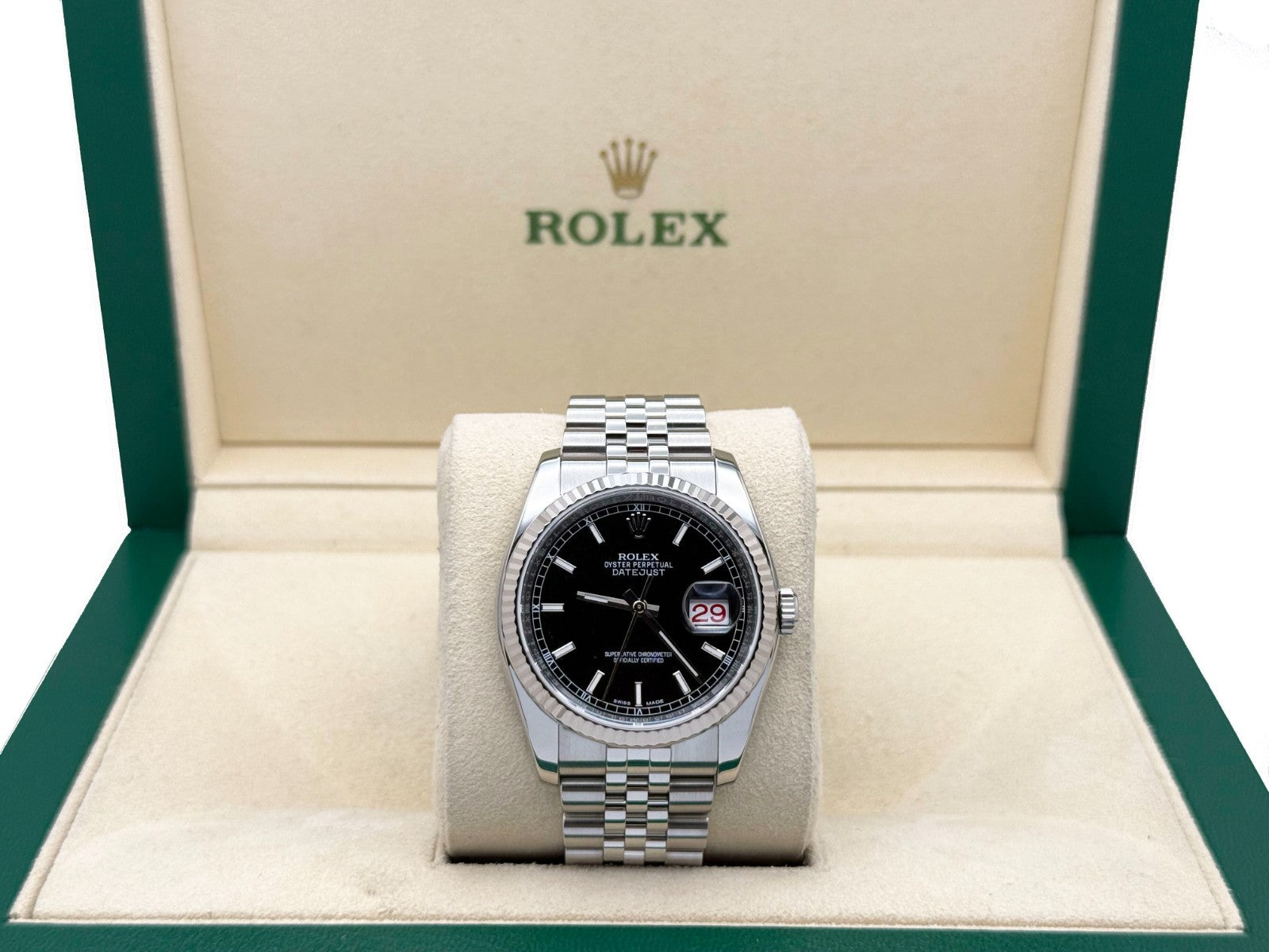 2018 Rolex Datejust 116234 36mm Black Dial Roulette 18k Gold Steel Box Paper