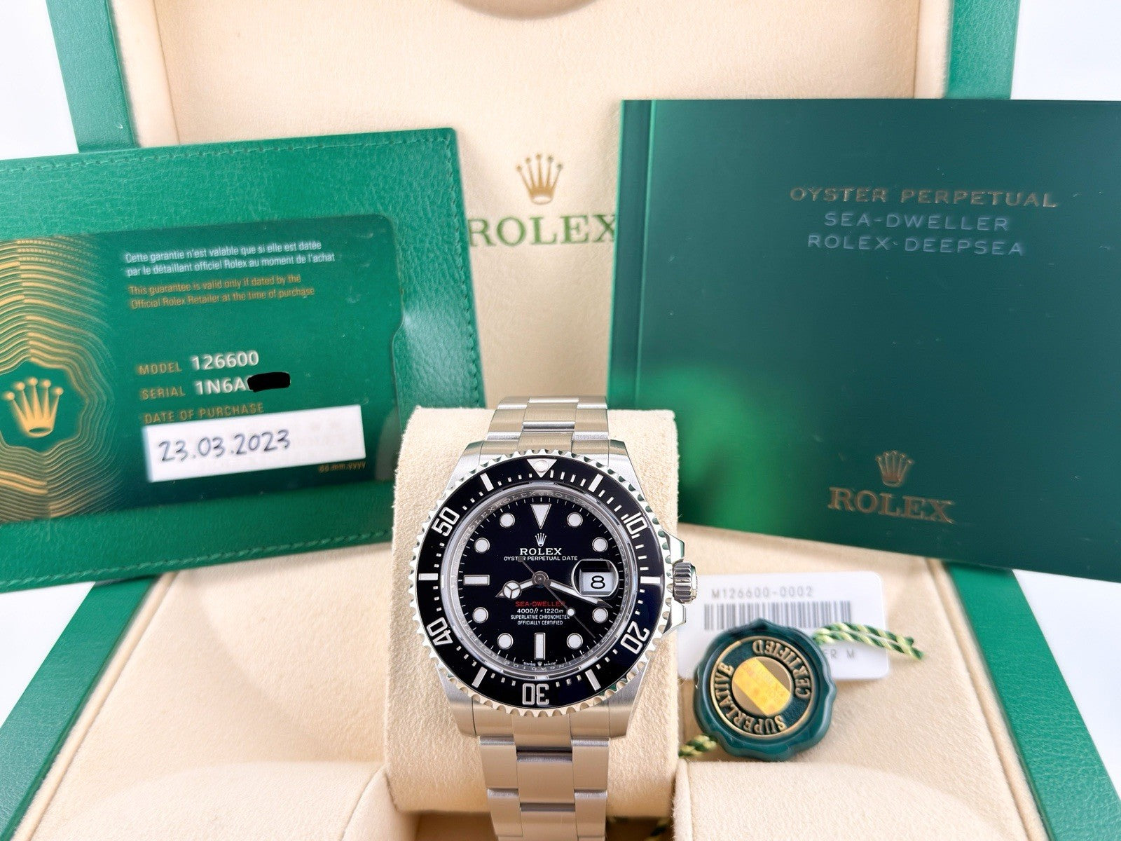 2023 Rolex Sea Dweller Red Letter 126600 43mm Black Dial Ceramic Steel Box Paper