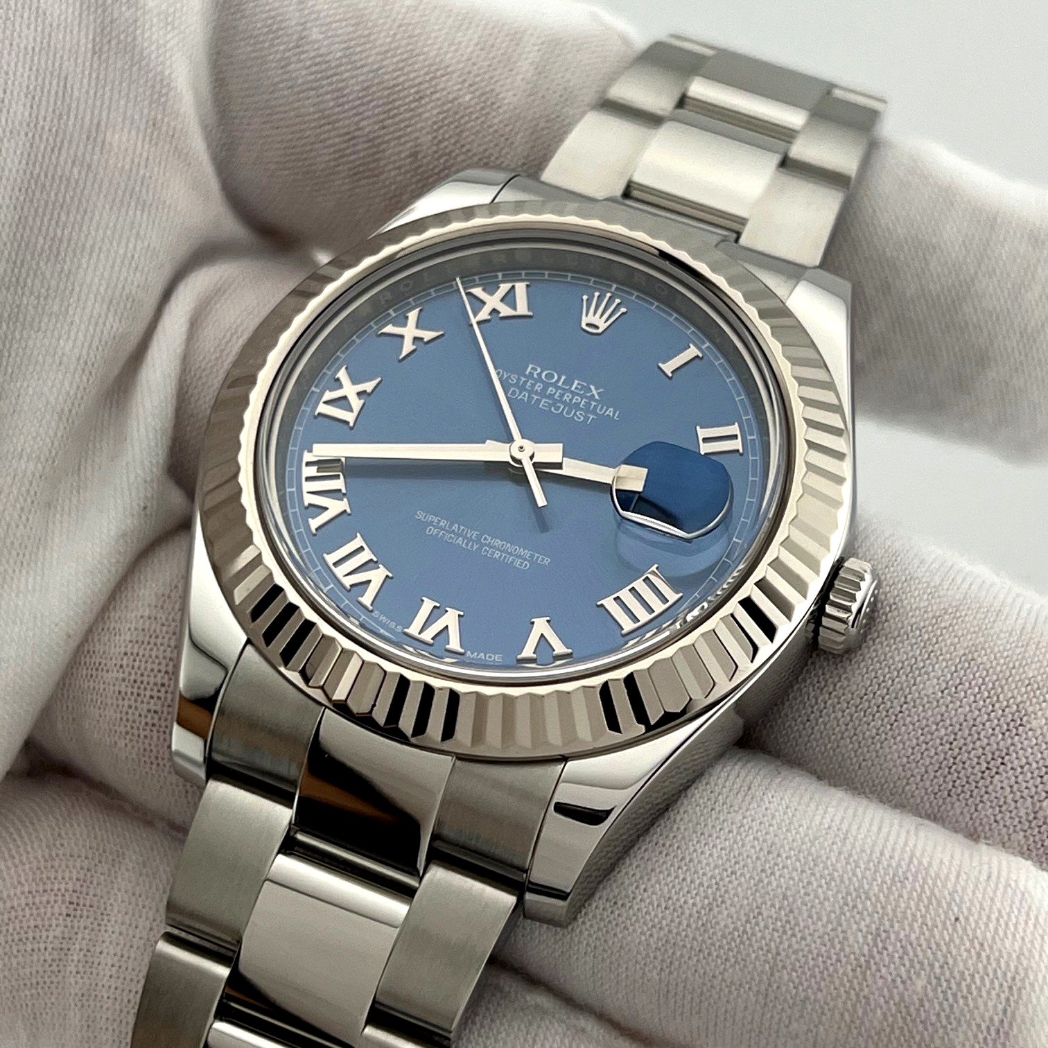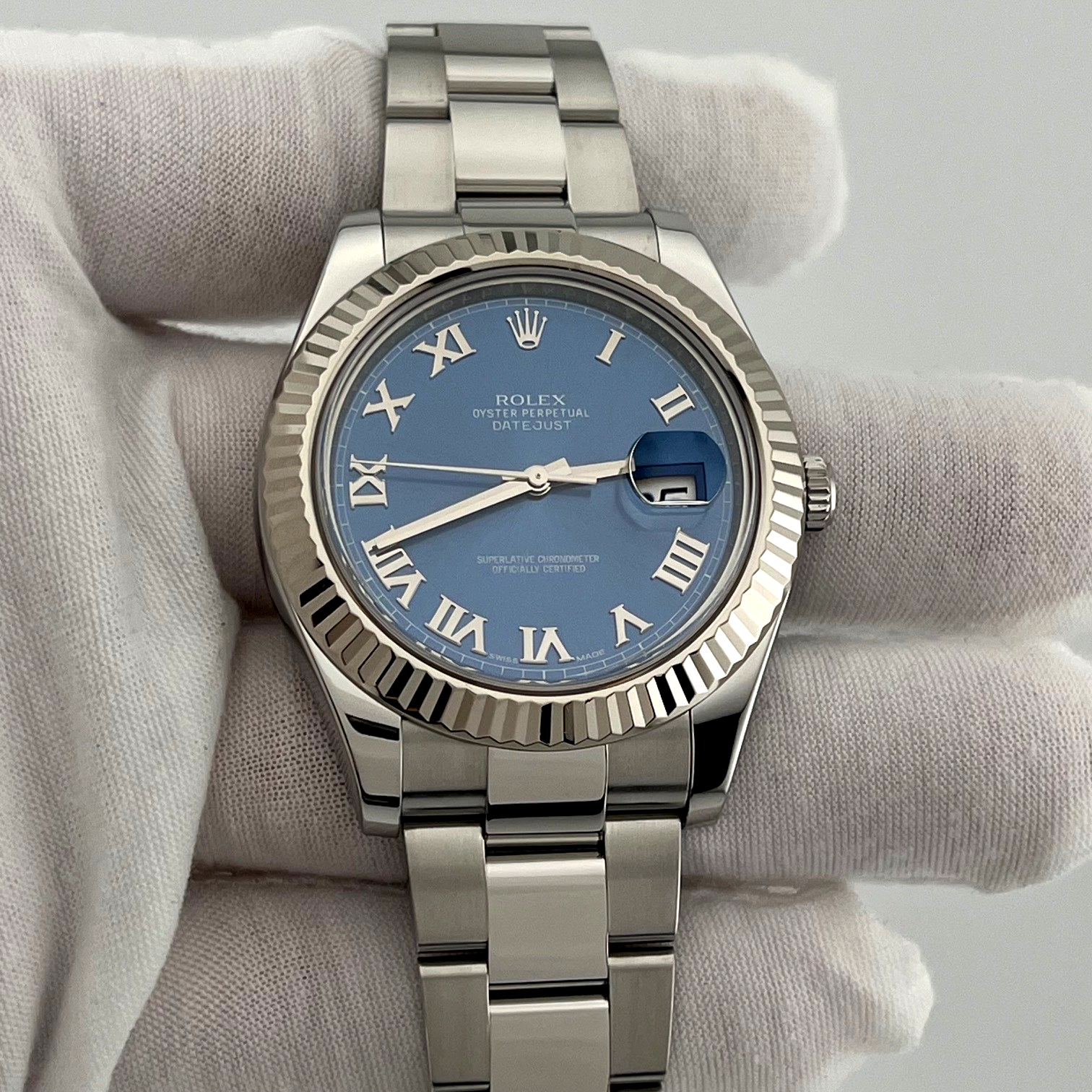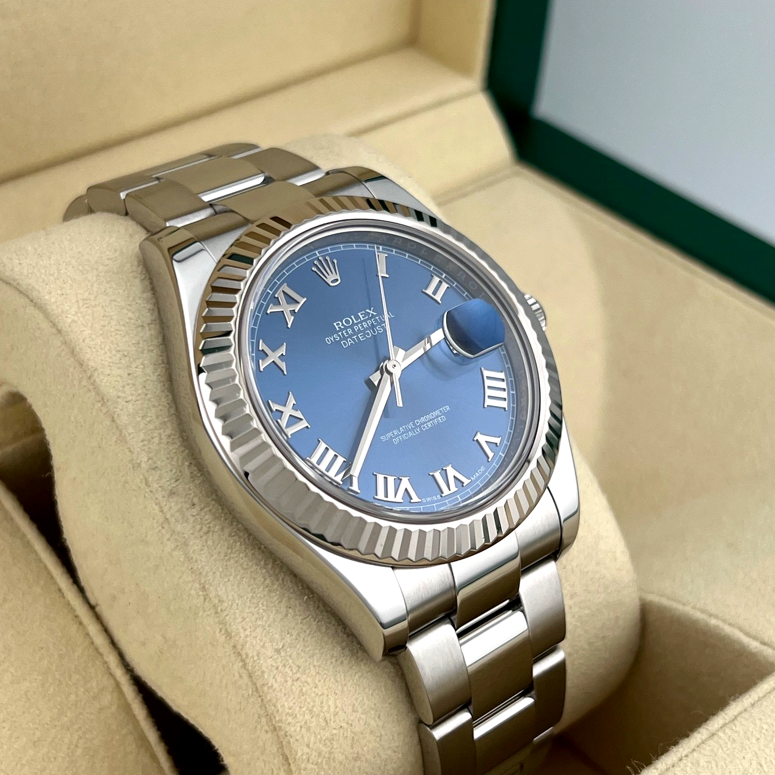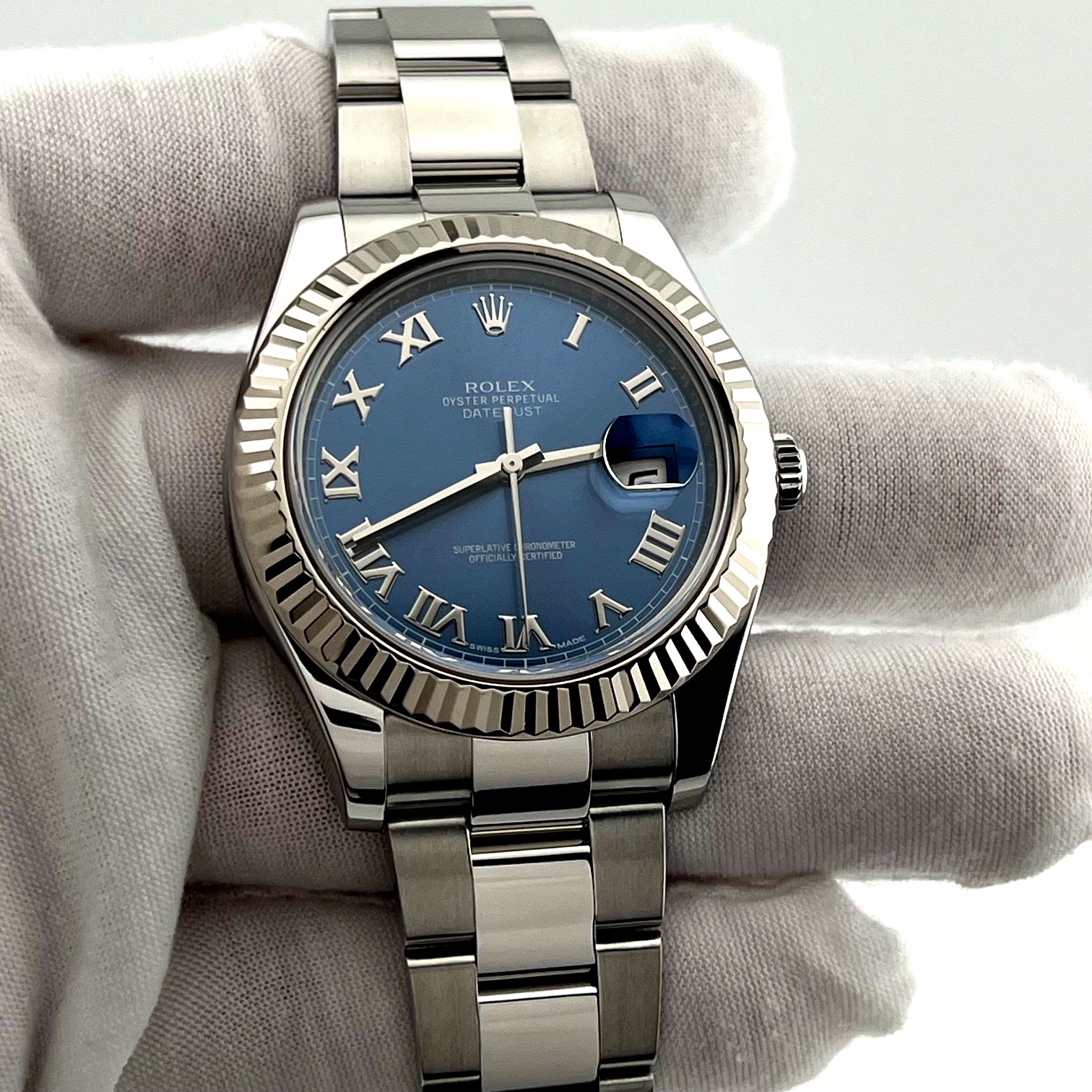 2024 CPO Rolex Datejust II 116334 41mm Azzurro Blue Roman Dial Steel Rolex Sale! from 1149500 /per This item is a recurring or deferred purchase. By continuing, I agree to the cancellation policy and authorize you to charge my payment method at the prices, frequency and dates listed on this page until my order is fulfilled or I cancel, if permitted. +1 (619) 232-1273 This item is currently on backorder but you can still purchase it now and we'll ship as soon as more become available. Style Number: 116334Serial: 636R****Year: 2011-2019 Model: Rolex Datejust II Case Material: Stainless Steel Band: Stainless Steel Bezel: 18k White Gold Fluted Dial: Azzurro Blue Roman Dial Crystal: Sapphire Case Size: 41mm Includes: - Rolex Box & 2024 Rolex CPO Card- Certified Appraisal - Two Year Factory Warranty from CPO Purchase DateSKU 23136 / 126835TJD093025