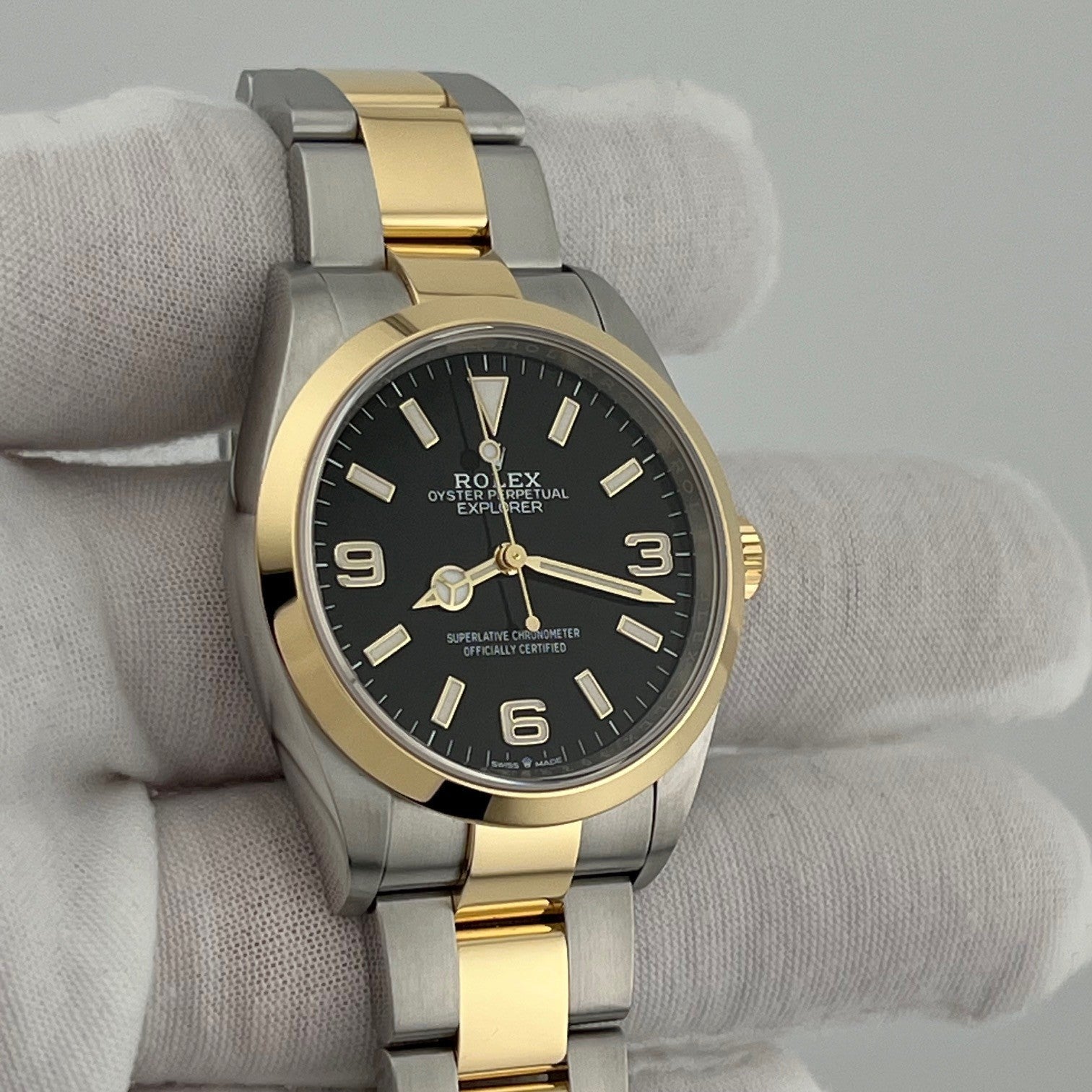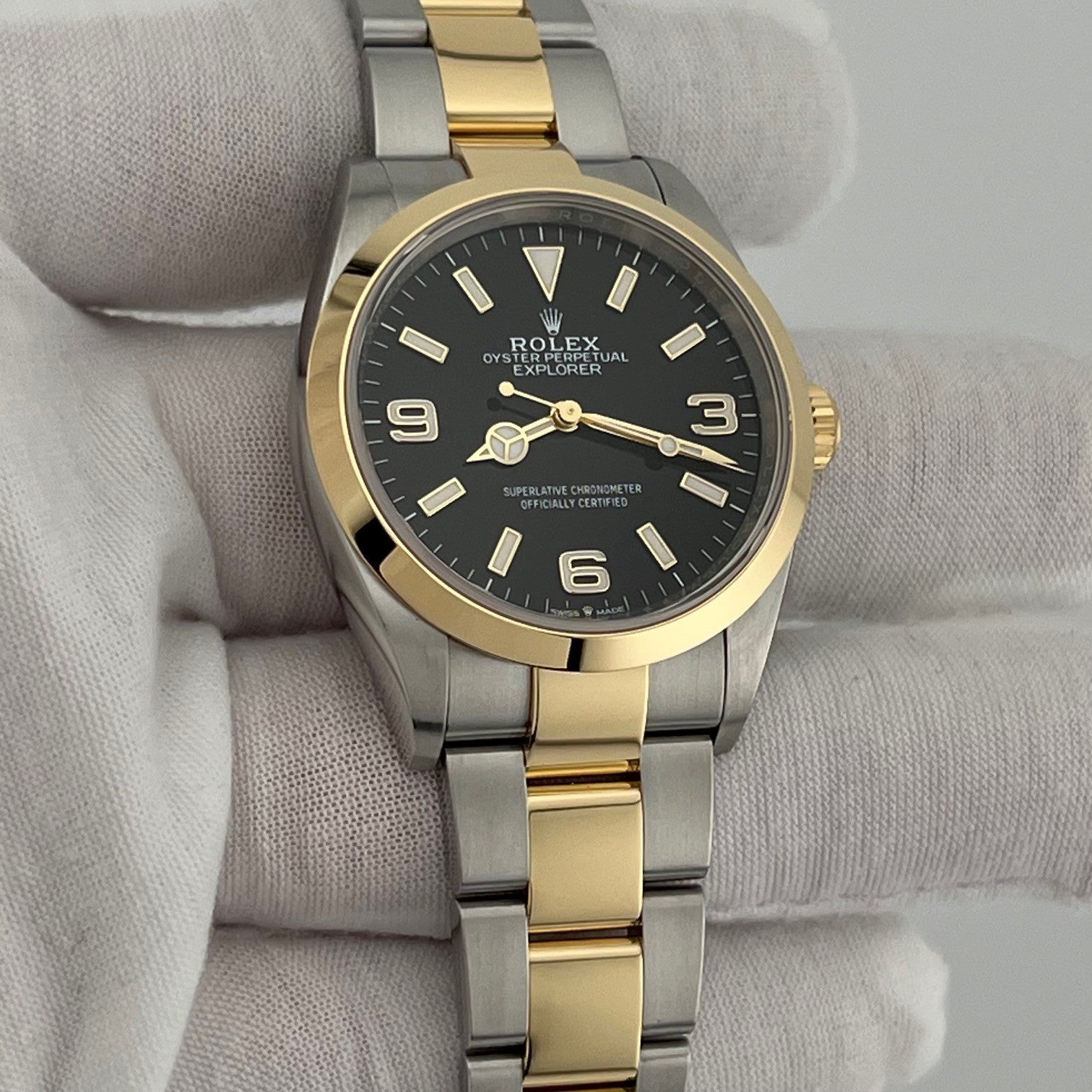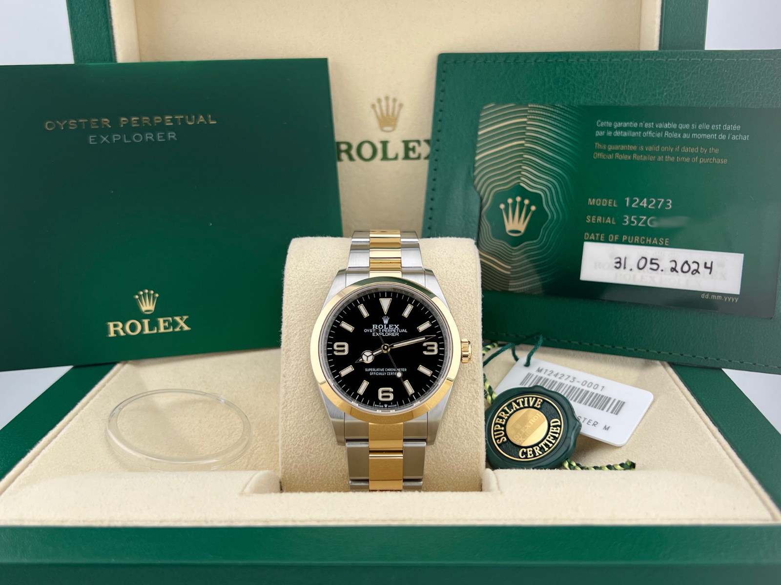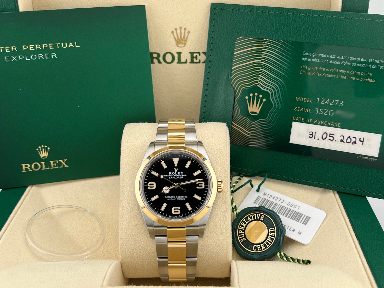 2024 Rolex Explorer 124273 36mm Black Dial 18k Gold Stainless Steel Box Paper Rolex Sale! from 1249500 /per This item is a recurring or deferred purchase. By continuing, I agree to the cancellation policy and authorize you to charge my payment method at the prices, frequency and dates listed on this page until my order is fulfilled or I cancel, if permitted. +1 (619) 232-1273 This item is currently on backorder but you can still purchase it now and we'll ship as soon as more become available. Style Number: 124273Serial: 35ZG****Year: 2024 Model: Rolex Explorer Case Material: Stainless Steel Band: 18k Yellow Gold & Stainless Steel Bezel: 18k Yellow Gold Dial: Black Dial Crystal: Sapphire Case Size: 36mm Includes: - 2024 Rolex Box & Paper- Certified Appraisal - Five Year Factory Warranty from Original Purchase DateSKU 23207 / 127897TGC101925