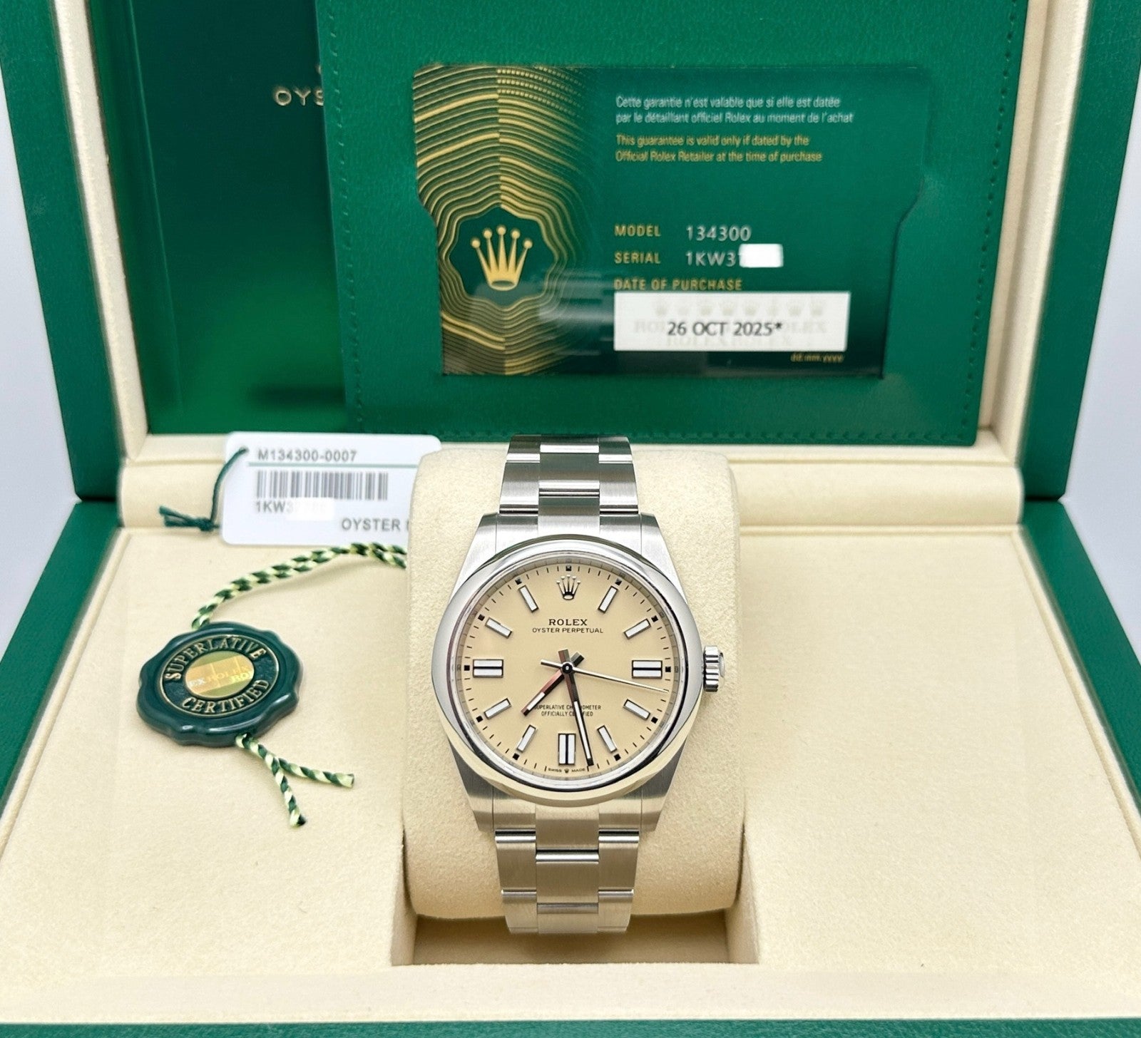 NEW October 2025 Rolex Oyster Perpetual 134300 41mm Beige Dial Steel Box Papers