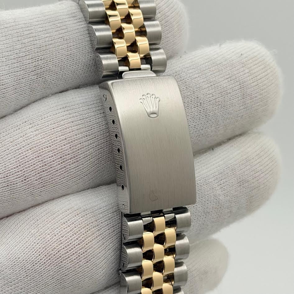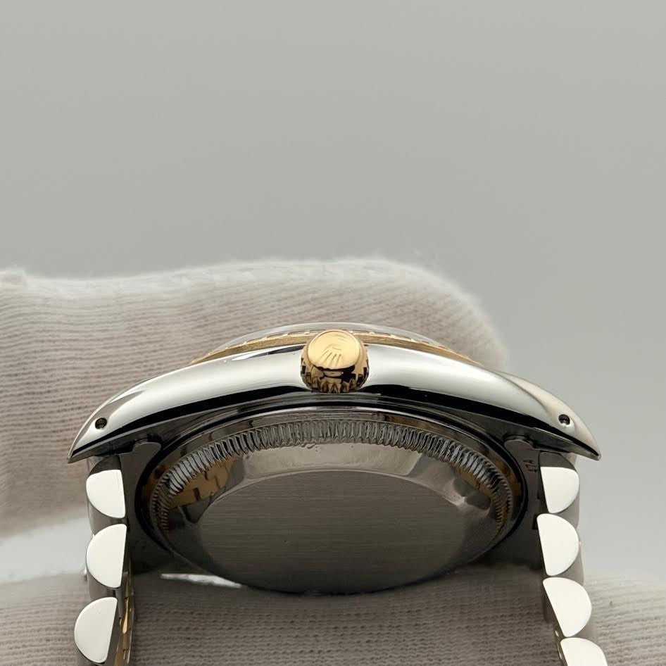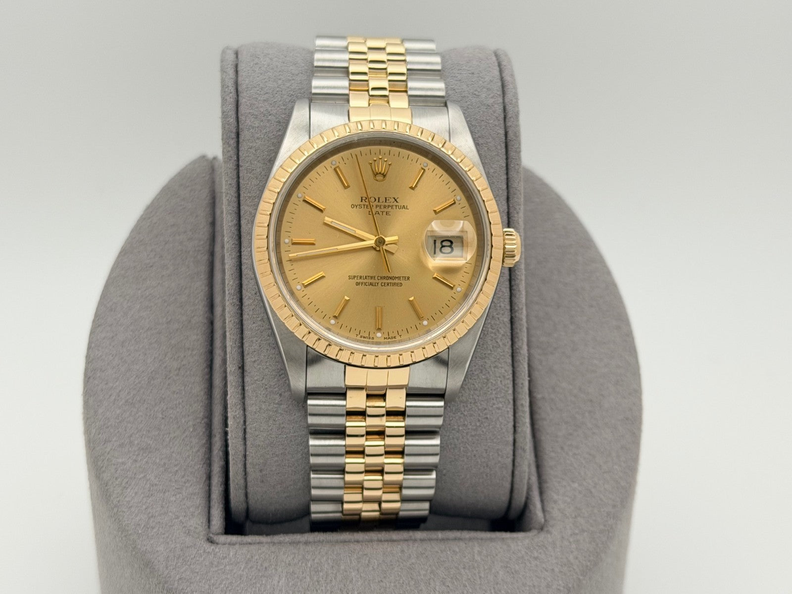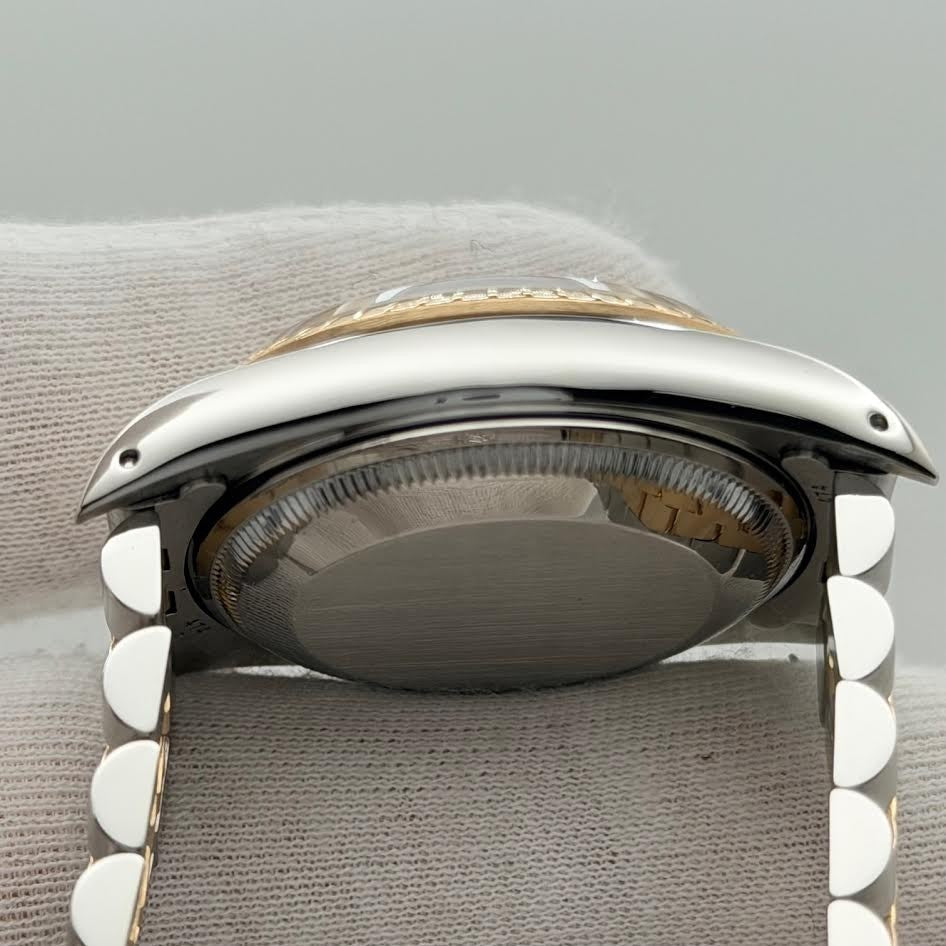 Rolex Date 15223 34mm Champagne Dial 18k Yellow Gold Stainless Steel Jubilee Rolex Sale! from 639500 /per This item is a recurring or deferred purchase. By continuing, I agree to the cancellation policy and authorize you to charge my payment method at the prices, frequency and dates listed on this page until my order is fulfilled or I cancel, if permitted. +1 (619) 232-1273 This item is currently on backorder but you can still purchase it now and we'll ship as soon as more become available. Style Number: 15223Serial: E43****Year: 1990 Model: Rolex Date Case Material: Stainless Steel Band: 18k Yellow Gold & Stainless Steel Jubilee Bezel: 18k Yellow Gold Dial: Champagne Crystal: Sapphire Case Size: 34mm Includes: - Elegant Watch Box- Certified Appraisal - 1 Year WarrantySKU 22543 / 18202TJD042325