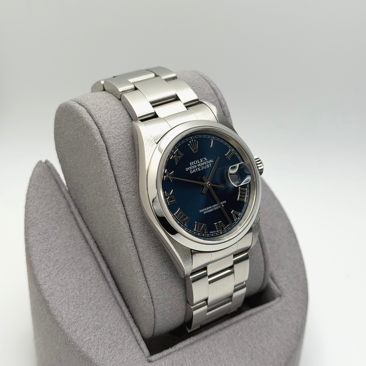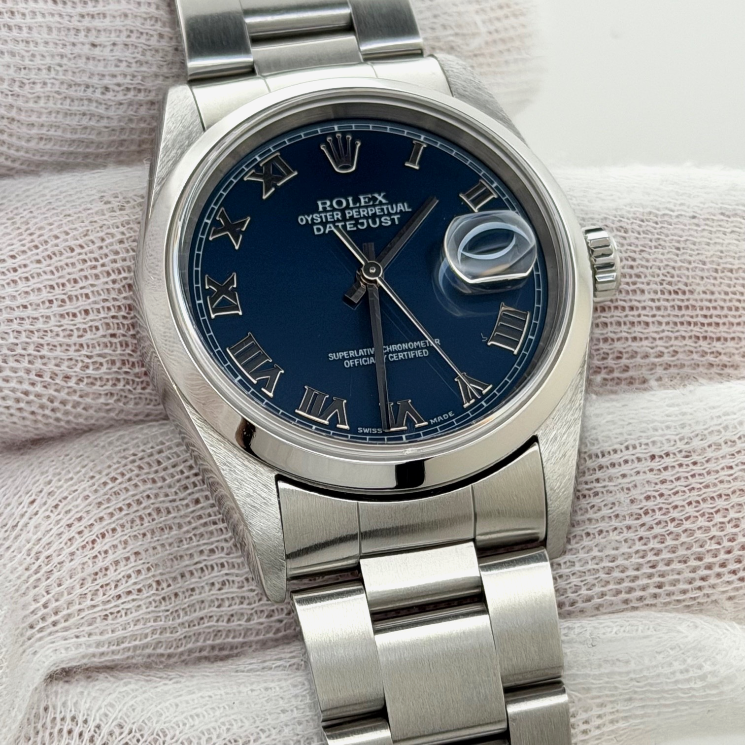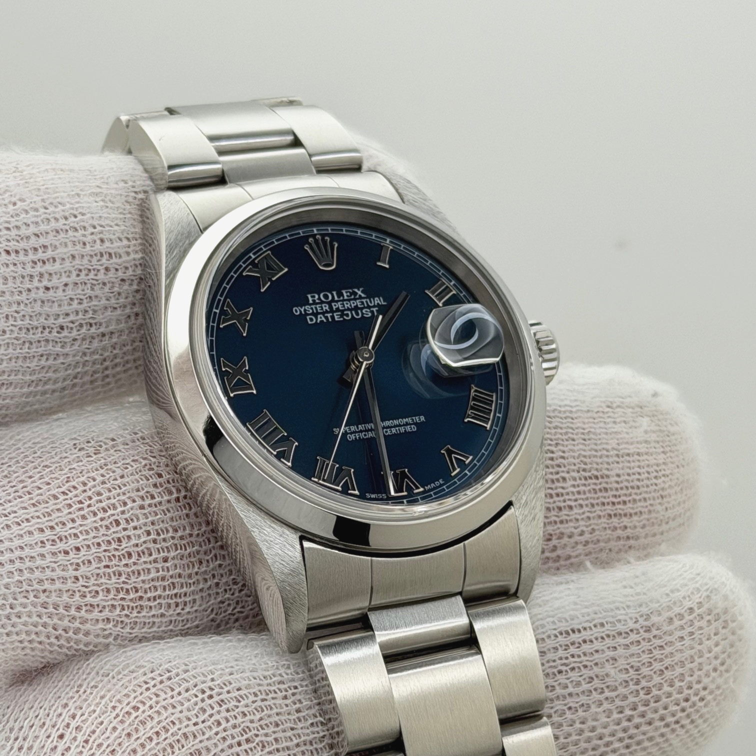 Rolex Datejust 16200 36mm Blue Roman Dial Stainless Steel Rolex Sale! from 639500 /per This item is a recurring or deferred purchase. By continuing, I agree to the cancellation policy and authorize you to charge my payment method at the prices, frequency and dates listed on this page until my order is fulfilled or I cancel, if permitted. +1 (619) 232-1273 This item is currently on backorder but you can still purchase it now and we'll ship as soon as more become available. Style Number: 16200Serial: F07****Year: 2004 Model: Rolex Datejust Case Material: Stainless Steel Band: Stainless Steel Bezel: Stainless Steel Dial: Blue Roman Dial Crystal: Sapphire Case Size: 36mm Includes: - Elegant Watch Box- Certified Appraisal - 1 Year WarrantySKU 22804 / 119192TGC071625