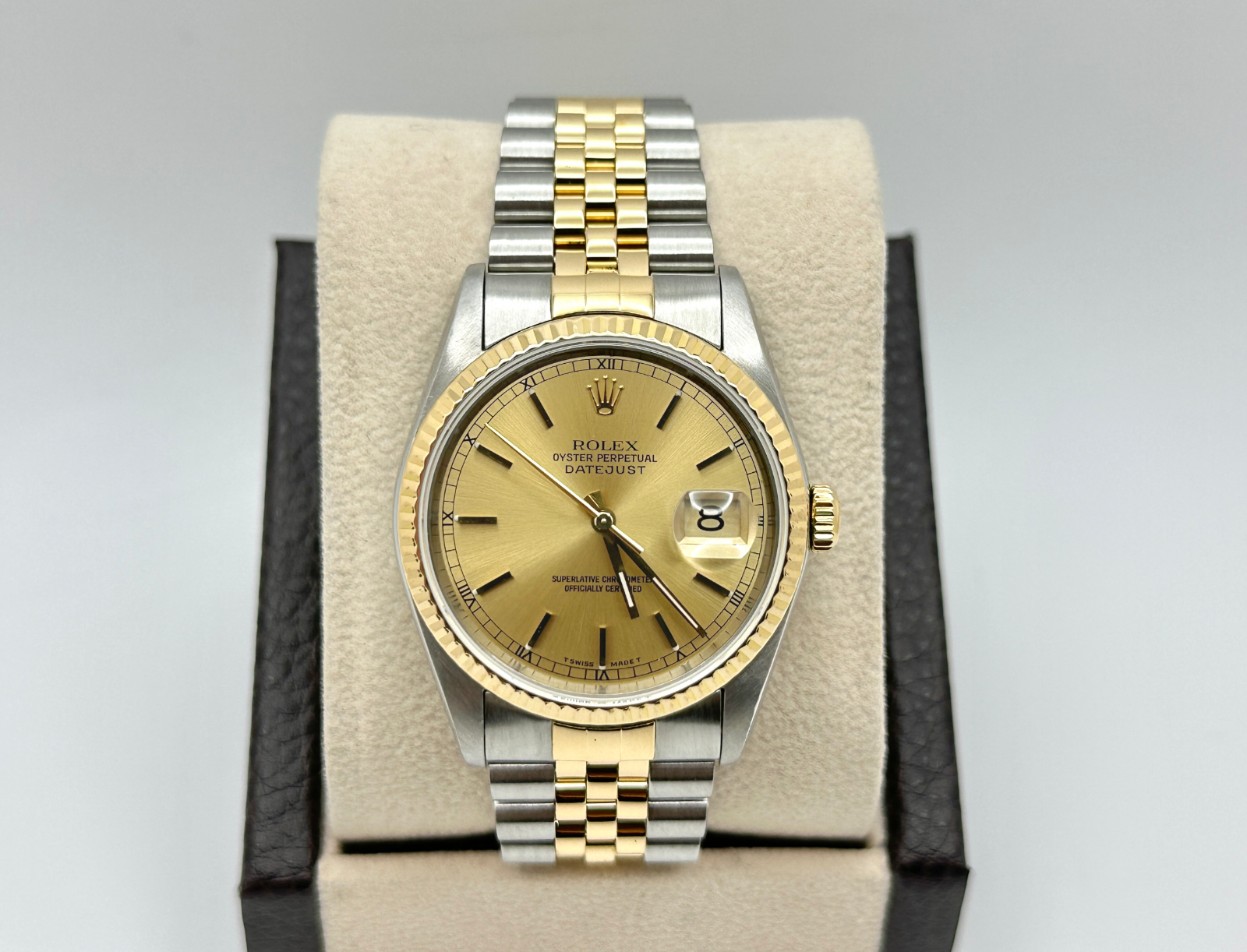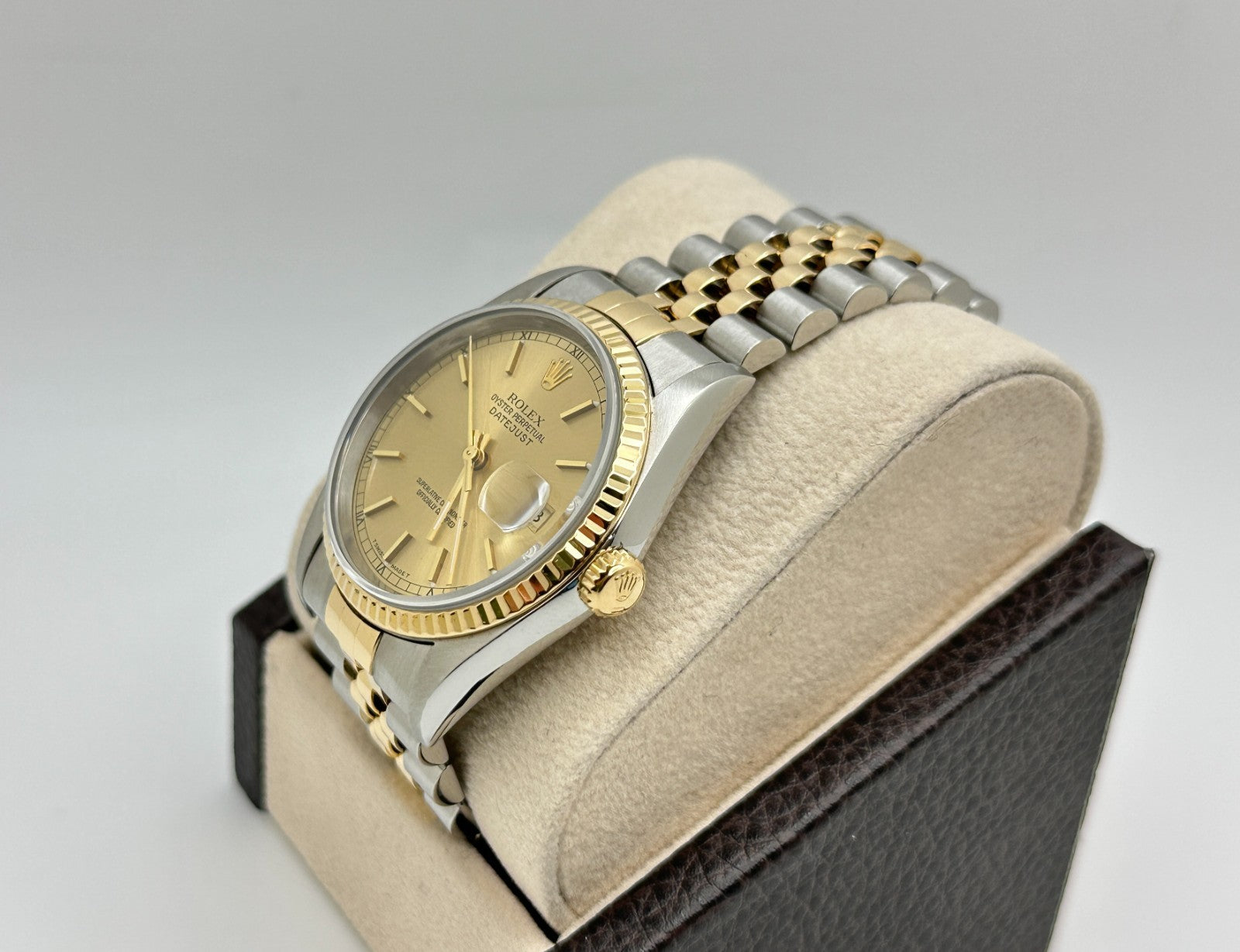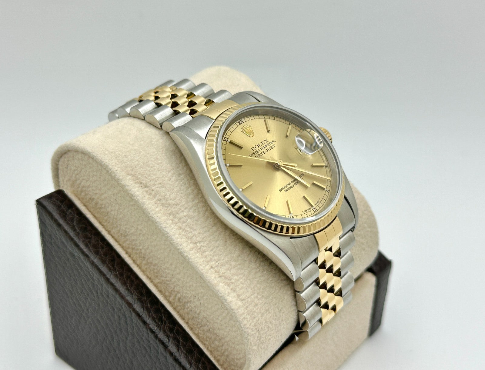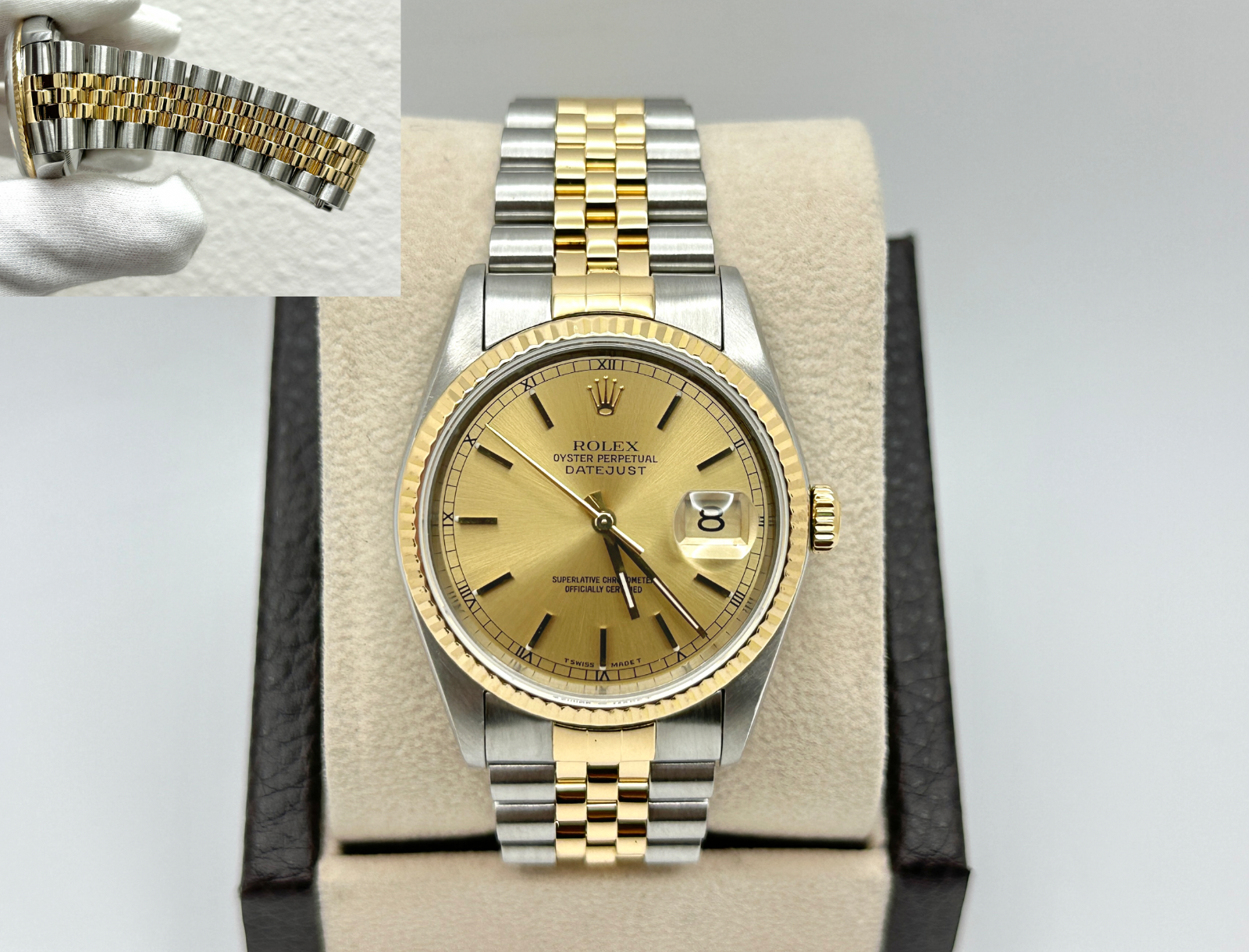 Rolex Datejust 16233 36mm Champagne Dial 18K Yellow Gold Stainless Steel Rolex Sale! from 679500 /per This item is a recurring or deferred purchase. By continuing, I agree to the cancellation policy and authorize you to charge my payment method at the prices, frequency and dates listed on this page until my order is fulfilled or I cancel, if permitted. +1 (619) 232-1273 This item is currently on backorder but you can still purchase it now and we'll ship as soon as more become available. Style Number: 16233Serial: T388***Year: 1996 Model: Rolex Datejust Case Material: Stainless Steel Band: 18K Yellow Gold & Stainless Steel Bezel: 18K Yellow Gold Dial: Champagne Crystal: Sapphire Crystal Case Size: 36mm Includes: - Elegant Watch Box- Certified Appraisal - One Year WarrantySKU 23619 / 18820TCF110625