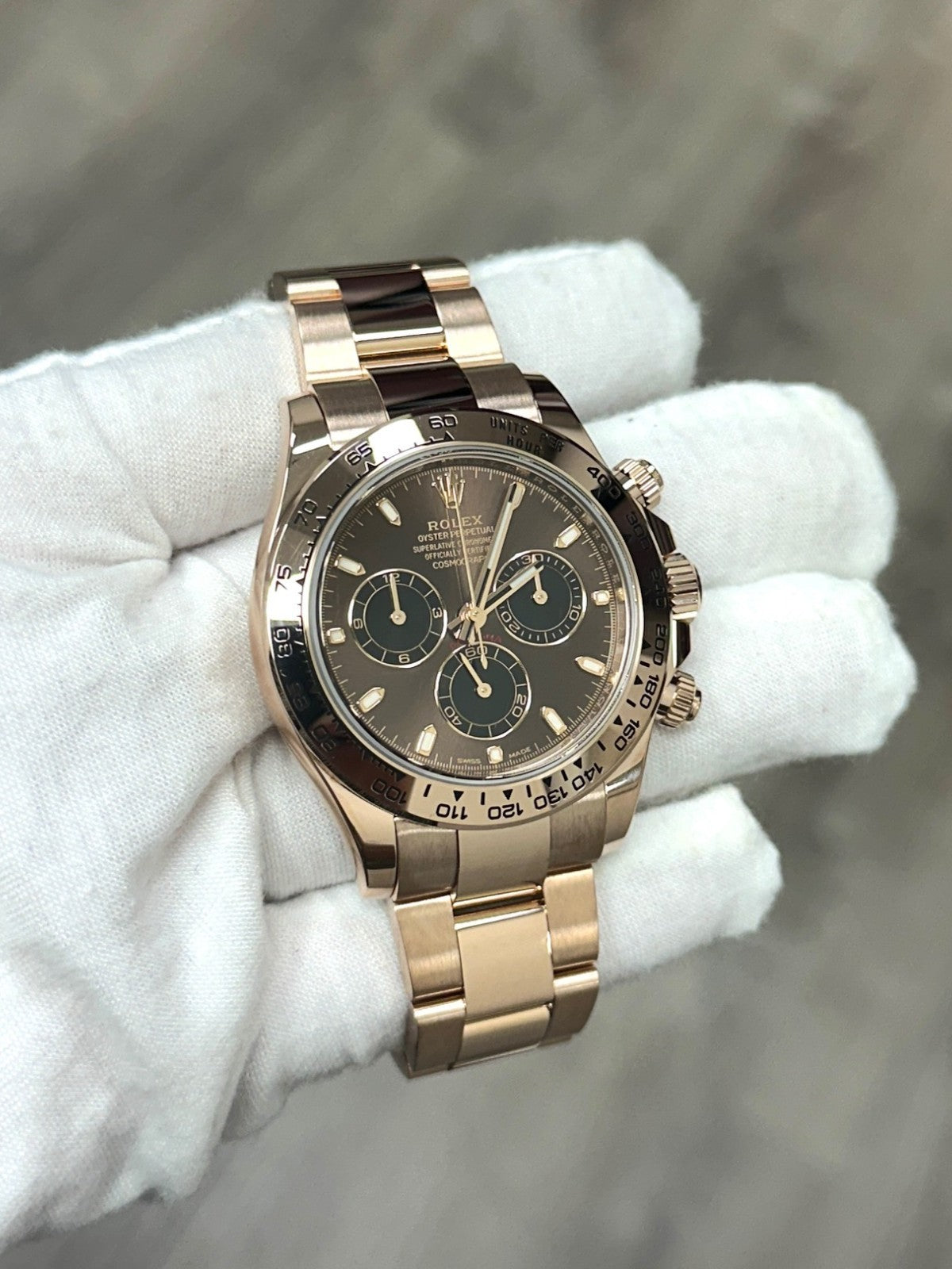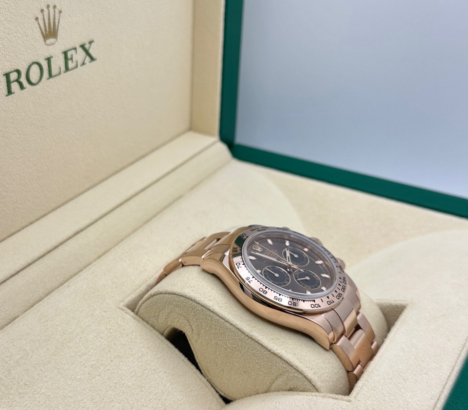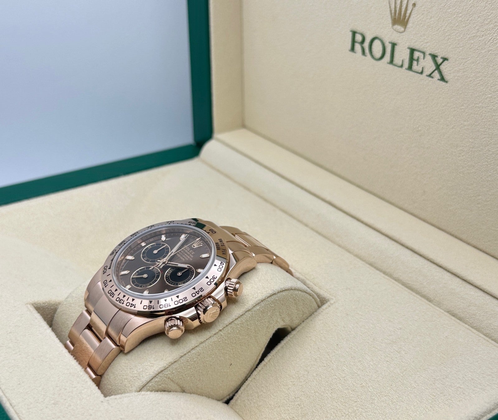 Style Number: 116505 Serial: 51C29*** Year: 2022 Model: Rolex Daytona Cosmograph Case Material: 18K Rose Gold Band: 18K Rose Gold Bezel: 18K Rose Gold Dial: Chocolate Brown Crystal: Sapphire Crystal Case Size: 40mm Includes: - Rolex Box & Paper - Certified Appraisal - Five Year Factory Warranty from Original Purchase Date SKU 23075 / 1127731TJD092525