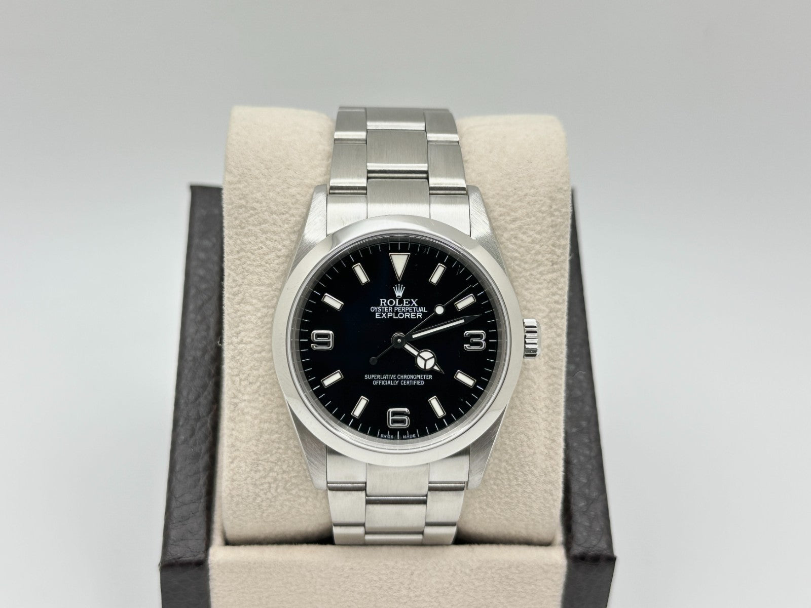 Rolex Explorer 114270 36mm Black Dial Stainless Steel Rolex Sale! from 619500 /per This item is a recurring or deferred purchase. By continuing, I agree to the cancellation policy and authorize you to charge my payment method at the prices, frequency and dates listed on this page until my order is fulfilled or I cancel, if permitted. +1 (619) 232-1273 This item is currently on backorder but you can still purchase it now and we'll ship as soon as more become available. Style Number: 114270Serial: F499***Year: 2004 Model: Rolex Explorer Case Material: Stainless Steel Band: Stainless Steel Bezel: Stainless Steel Dial: Black Crystal: Sapphire Crystal Case Size: 36mm Includes: - Elegant Watch Box- Certified Appraisal - One Year WarrantySKU 23735 / 112750TOFC020926