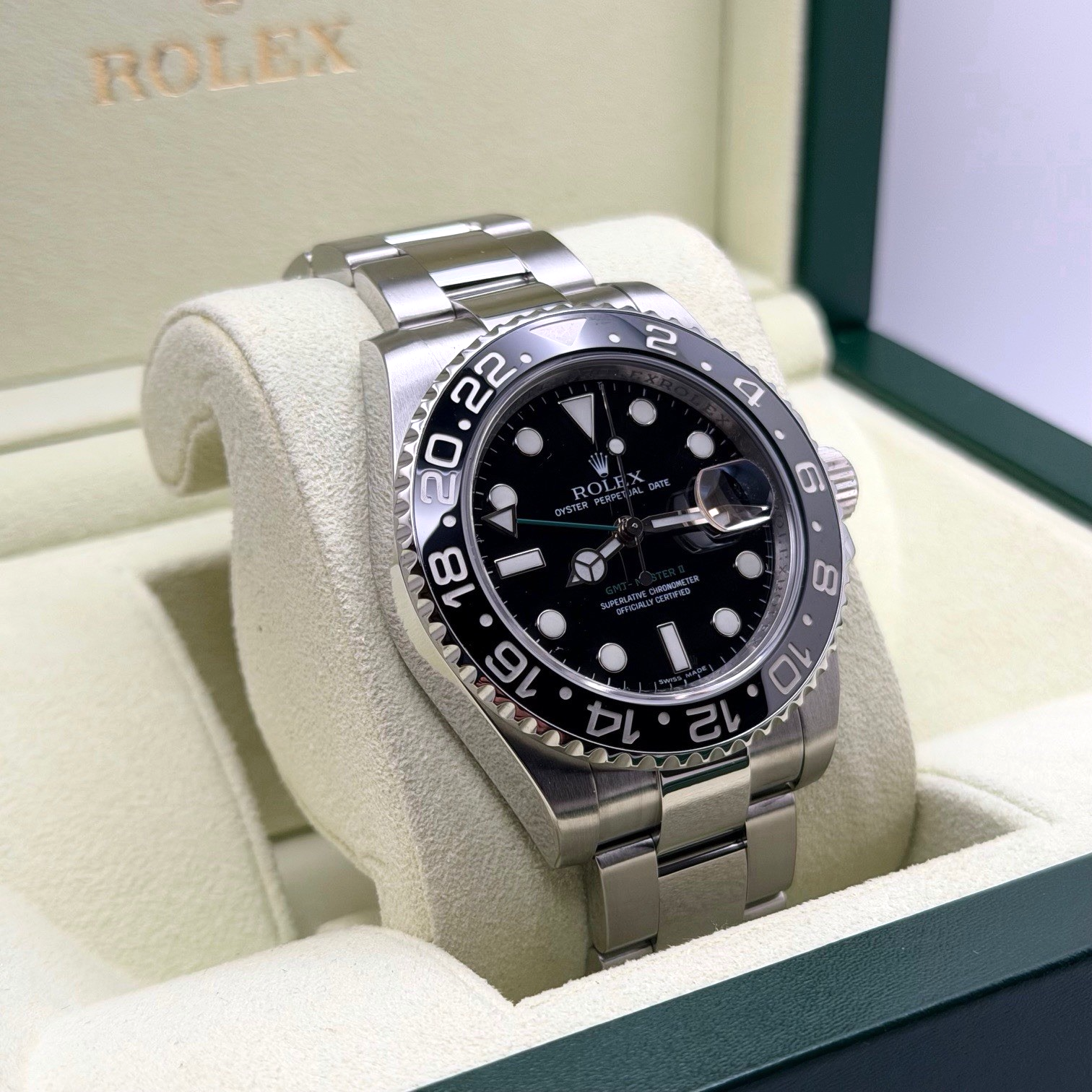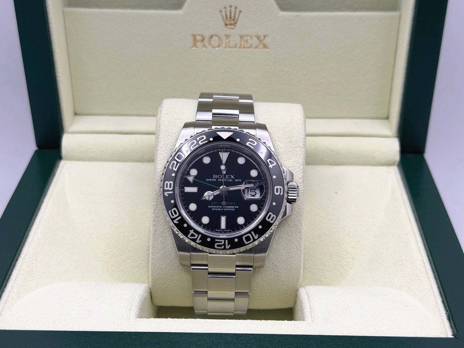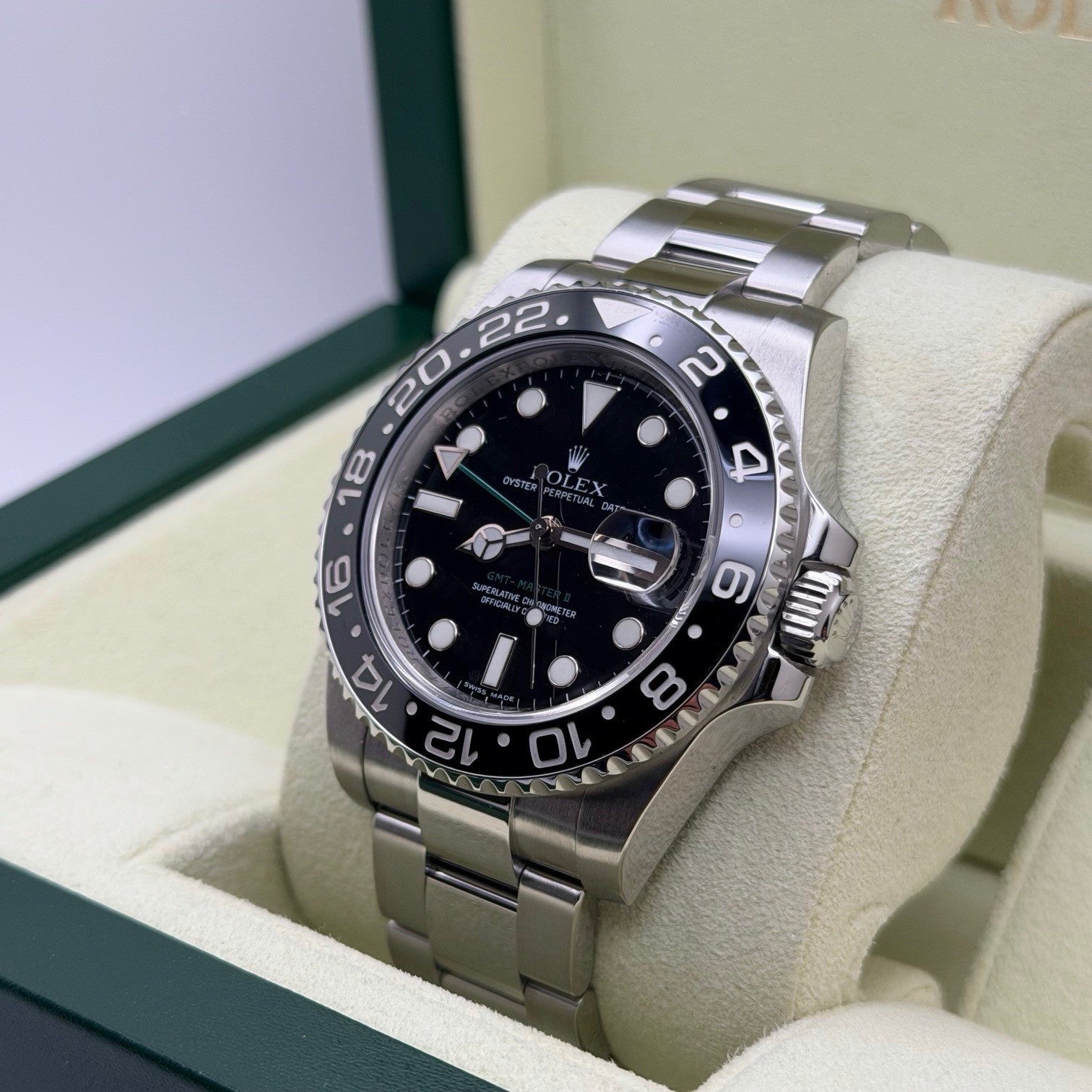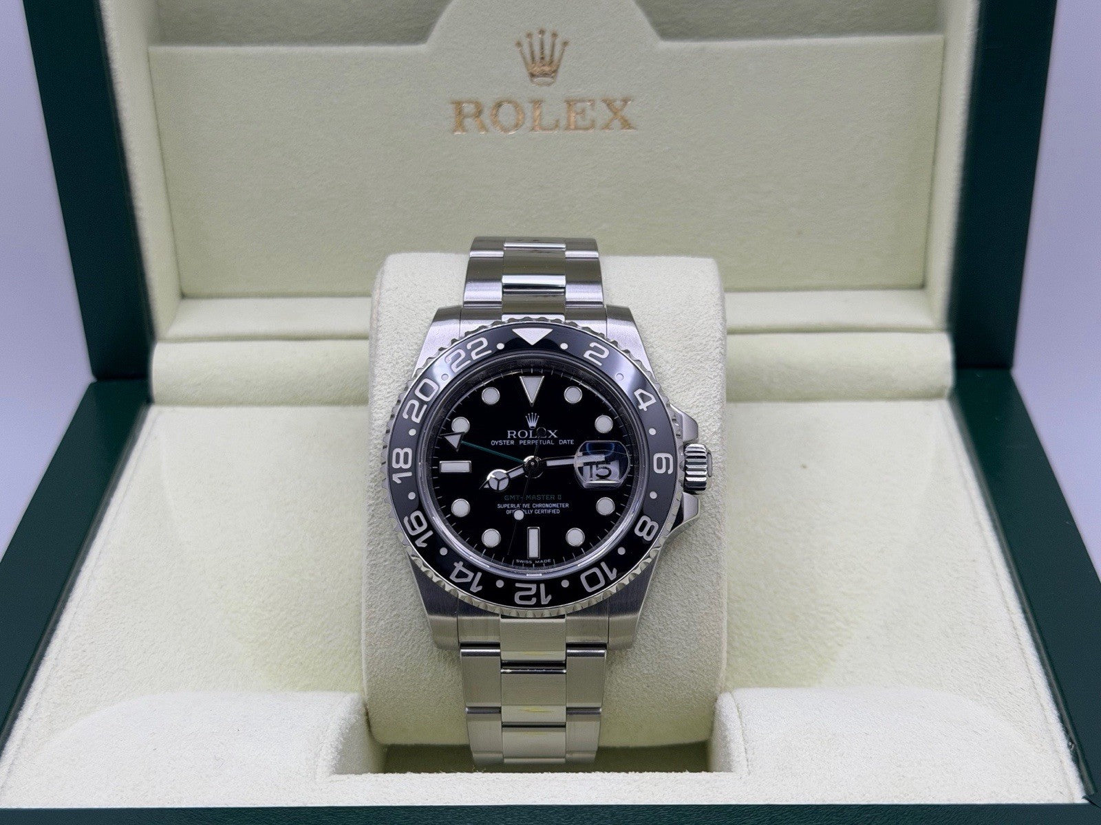 Rolex GMT Master II 116710LN 40mm Black Ceramic Stainless Steel Box Rolex Sale! from 1199500 /per This item is a recurring or deferred purchase. By continuing, I agree to the cancellation policy and authorize you to charge my payment method at the prices, frequency and dates listed on this page until my order is fulfilled or I cancel, if permitted. +1 (619) 232-1273 This item is currently on backorder but you can still purchase it now and we'll ship as soon as more become available. Style Number: 116710Serial: V28****Year: 2009 Model: Rolex GMT-Master II Case Material: Stainless Steel Band: Stainless Steel Bezel: Black Ceramic Dial: Black Crystal: Sapphire Case Size: 40mm Includes: - Rolex Box- Certified Appraisal - One Year WarrantySKU 23593 / 121480TOC011226