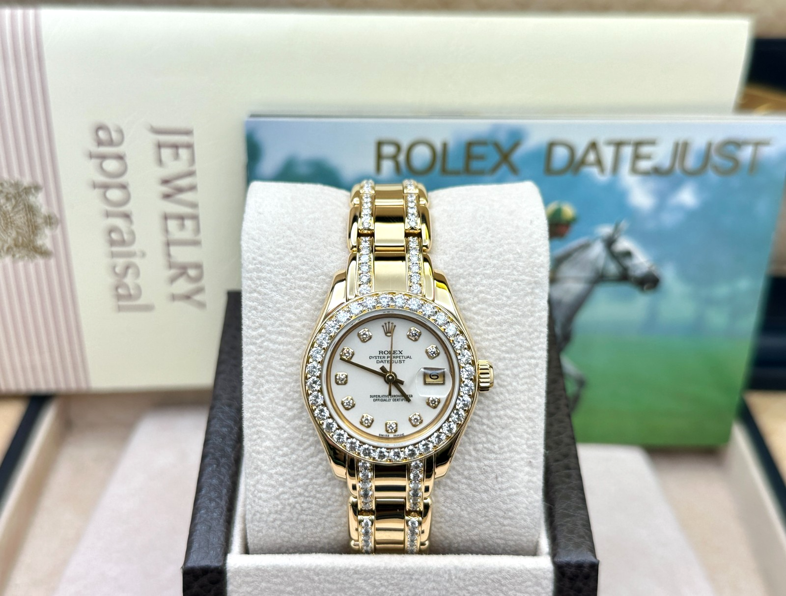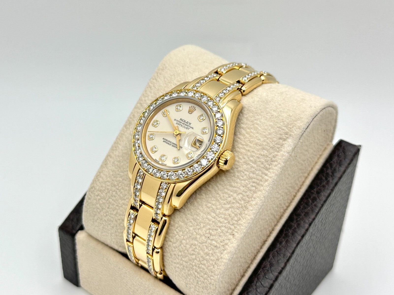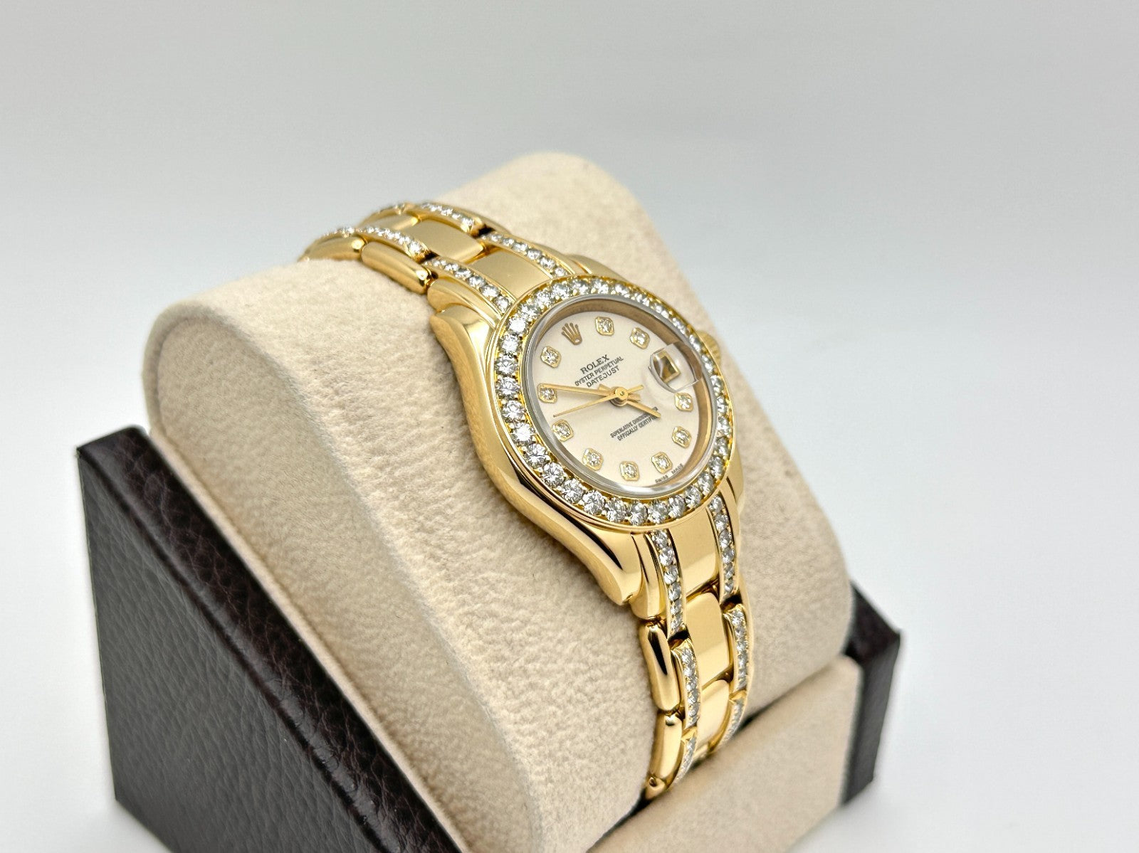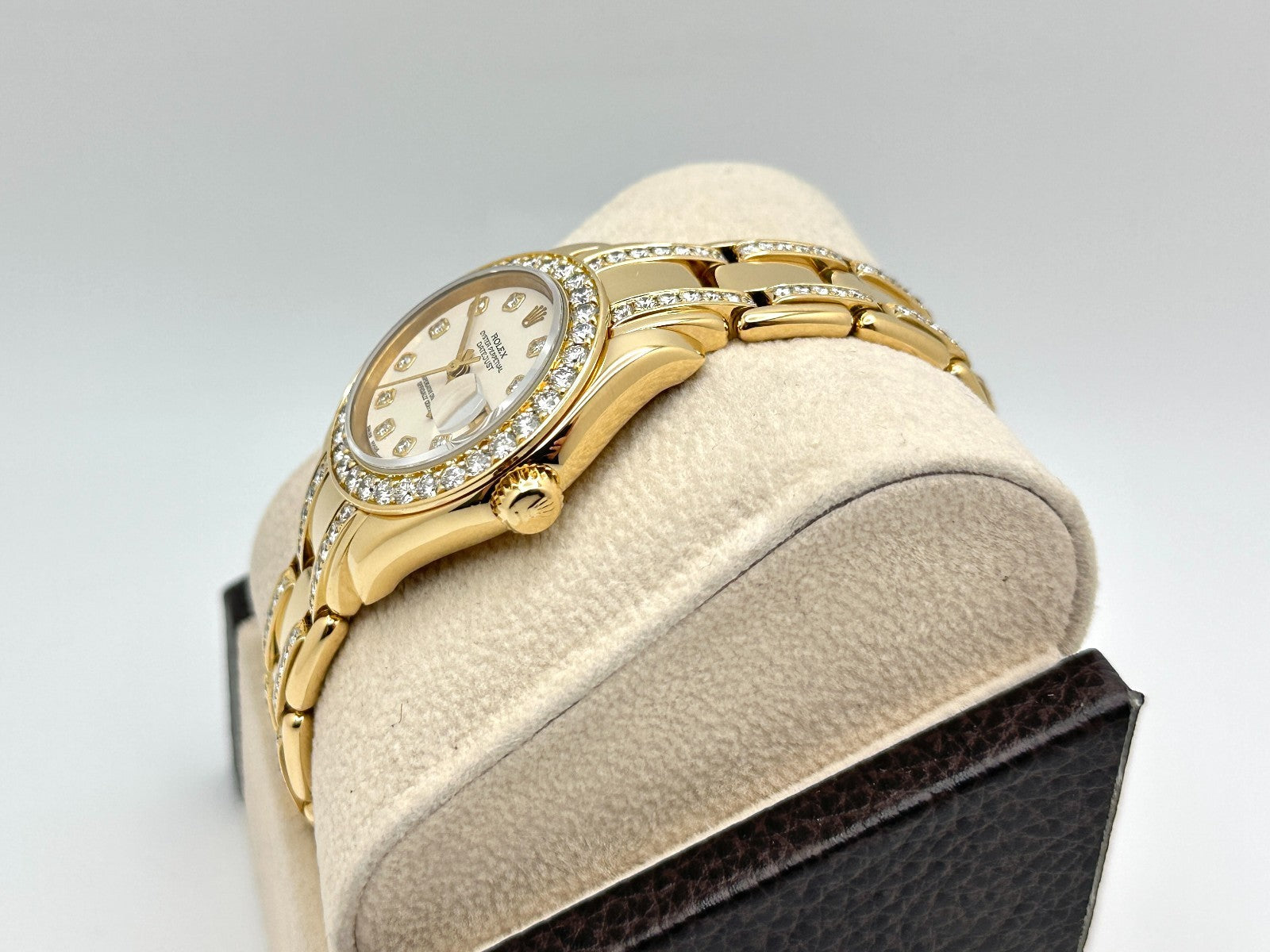 Rolex Ladies Pearlmaster 69298 29mm Siberite Diamond Dial Bezel Band 18K Gold