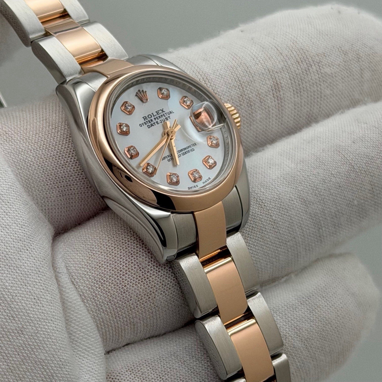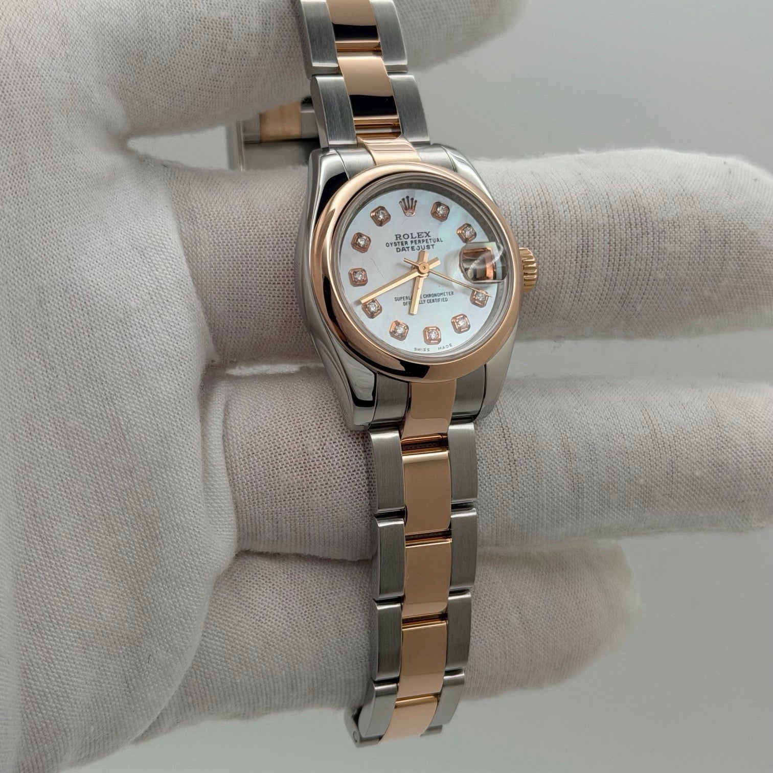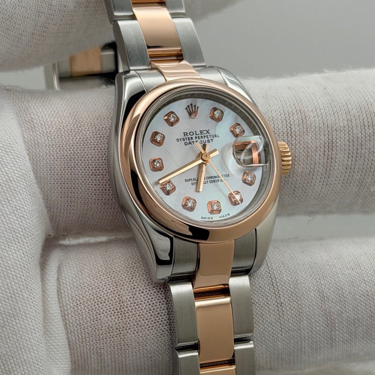 Rolex Lady Datejust 179161 26mm Mother of Pearl Diamond Dial 18k Rose Gold Steel