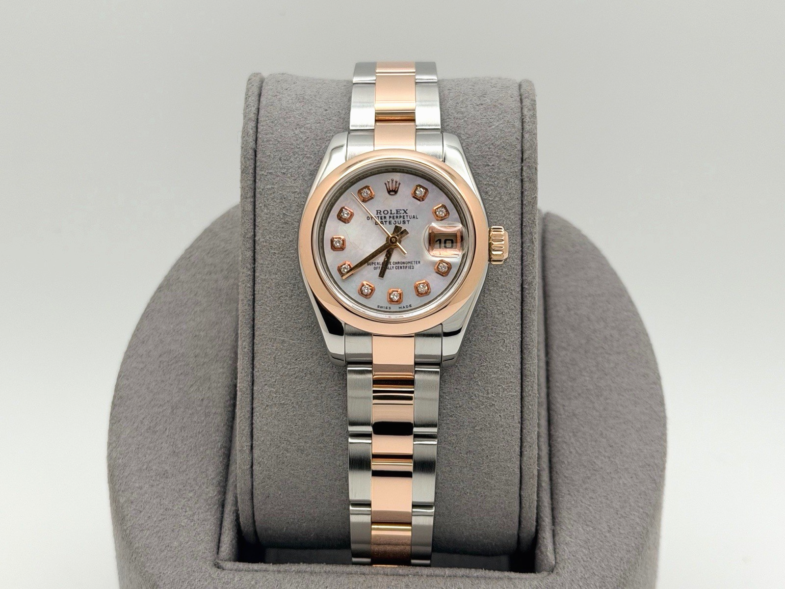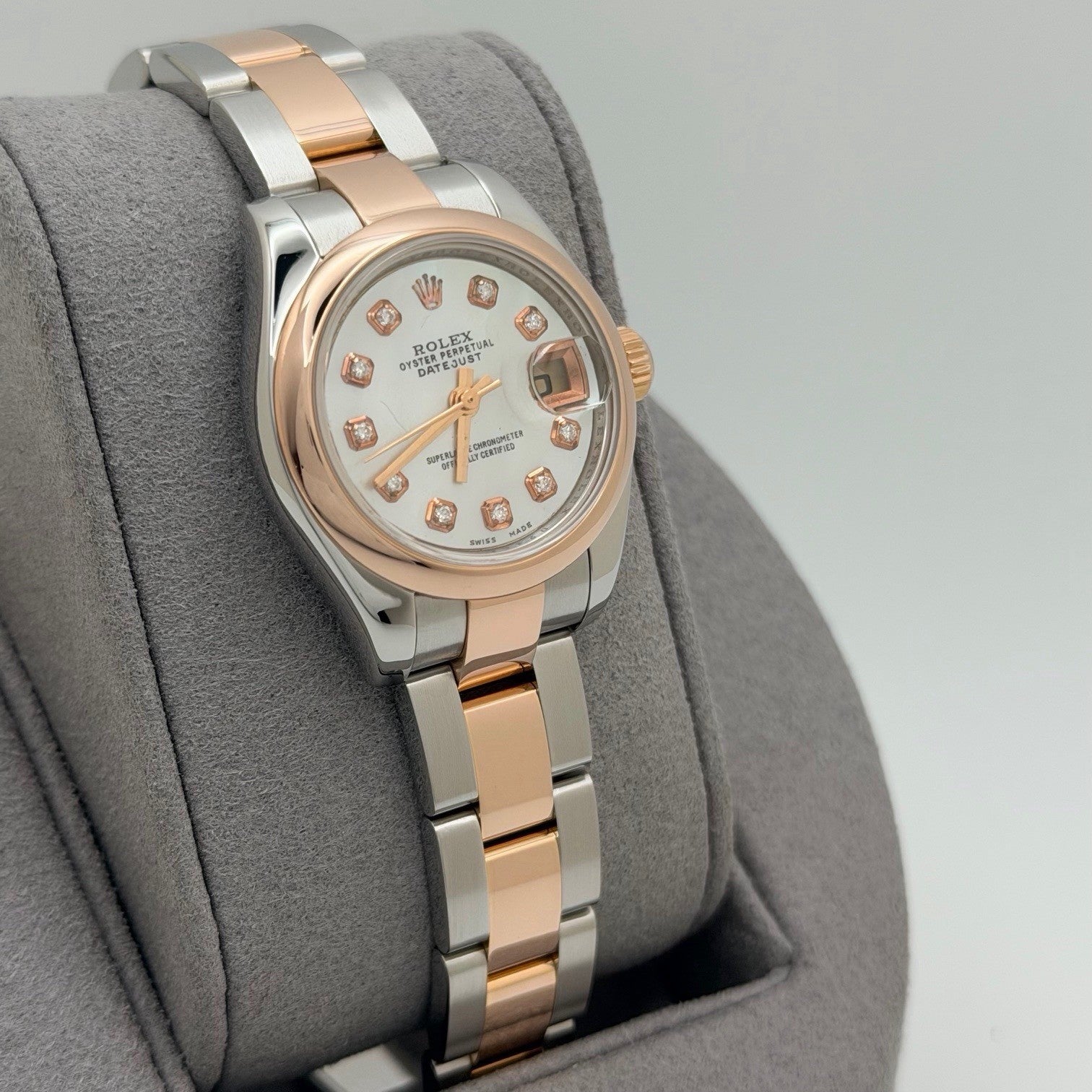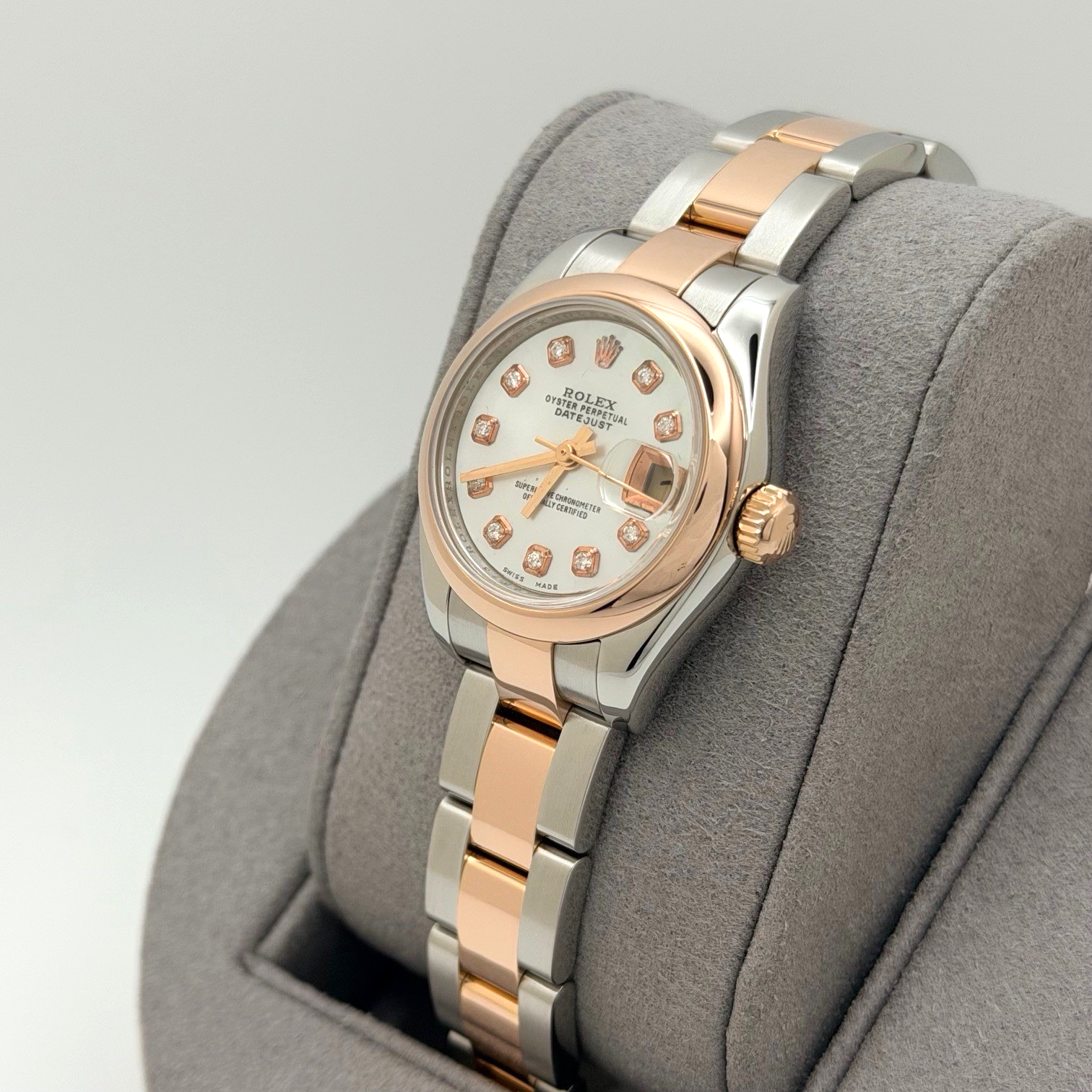 Rolex Lady Datejust 179161 26mm Mother of Pearl Diamond Dial 18k Rose Gold Steel
