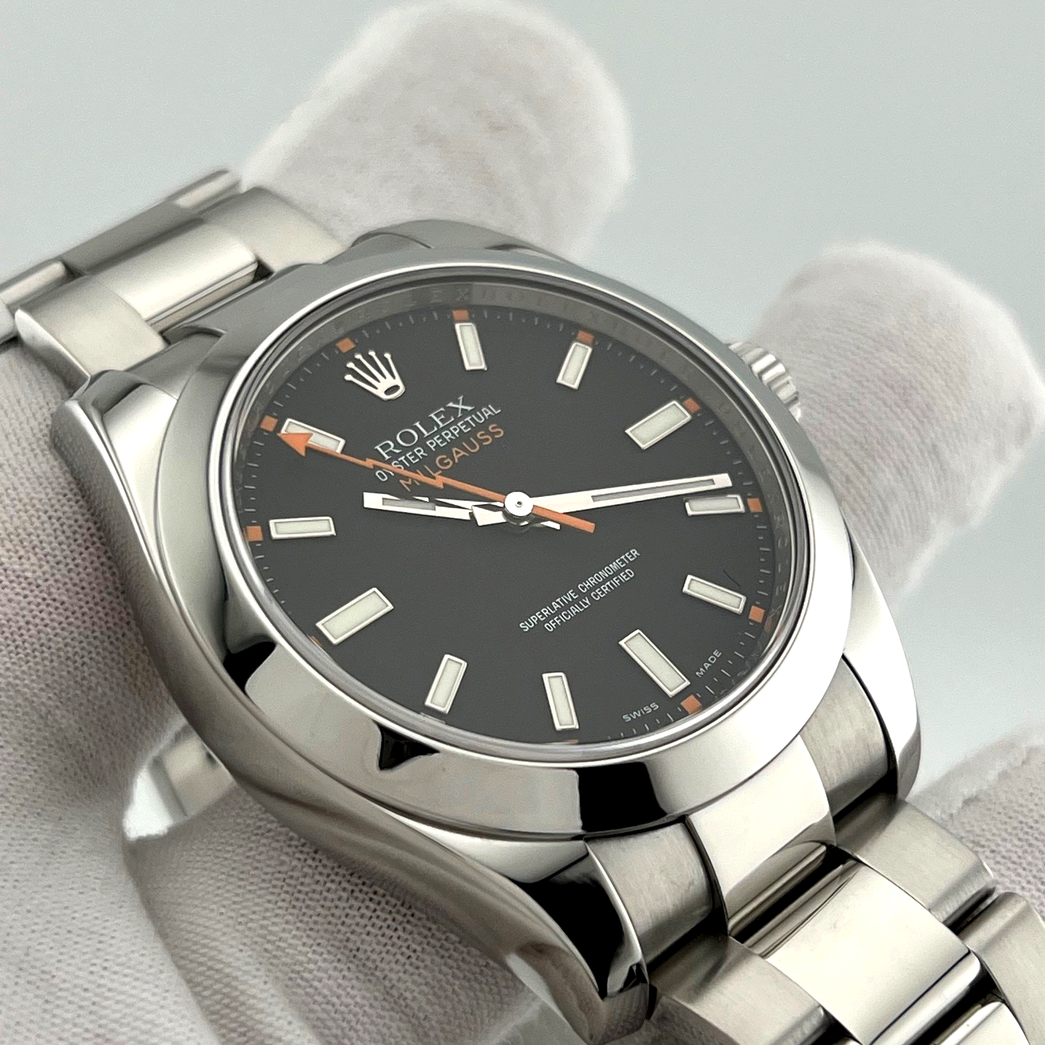 Rolex Milgauss 116400 40mm Black Dial Stainless Steel Box Booklets Rolex Sale! from 869500 /per This item is a recurring or deferred purchase. By continuing, I agree to the cancellation policy and authorize you to charge my payment method at the prices, frequency and dates listed on this page until my order is fulfilled or I cancel, if permitted. +1 (619) 232-1273 This item is currently on backorder but you can still purchase it now and we'll ship as soon as more become available. Style Number: 116400Serial: V38****Year: 2008-2009 Model: Rolex Milgauss Case Material: Stainless Steel Band: Stainless Steel Bezel: Stainless Steel Dial: Black Crystal: Sapphire Case Size: 40mm Includes: - Rolex Box, Booklet, & Tag- Certified Appraisal - 1 Year WarrantySKU 23115 / 120175TLK092025