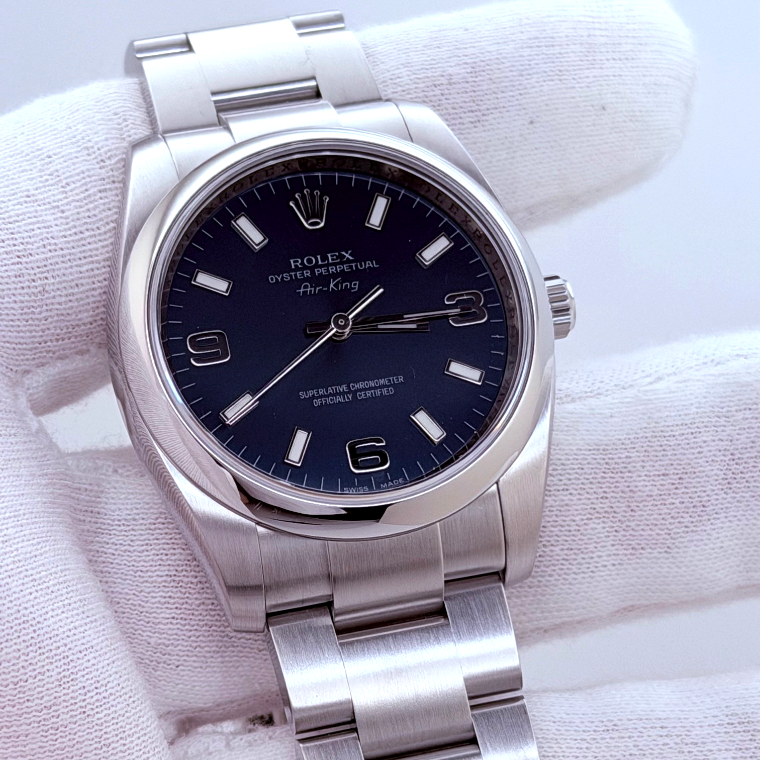 Rolex Oyster Perpetual Air King 114200 34mm Blue Dial Stainless Steel Box Papers