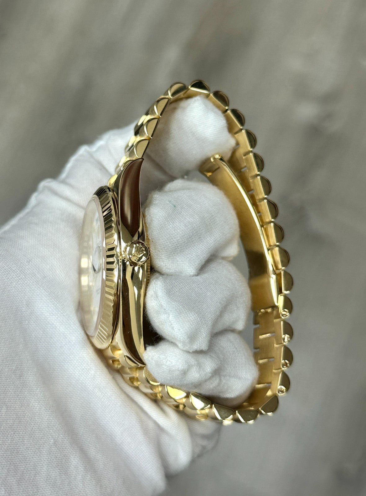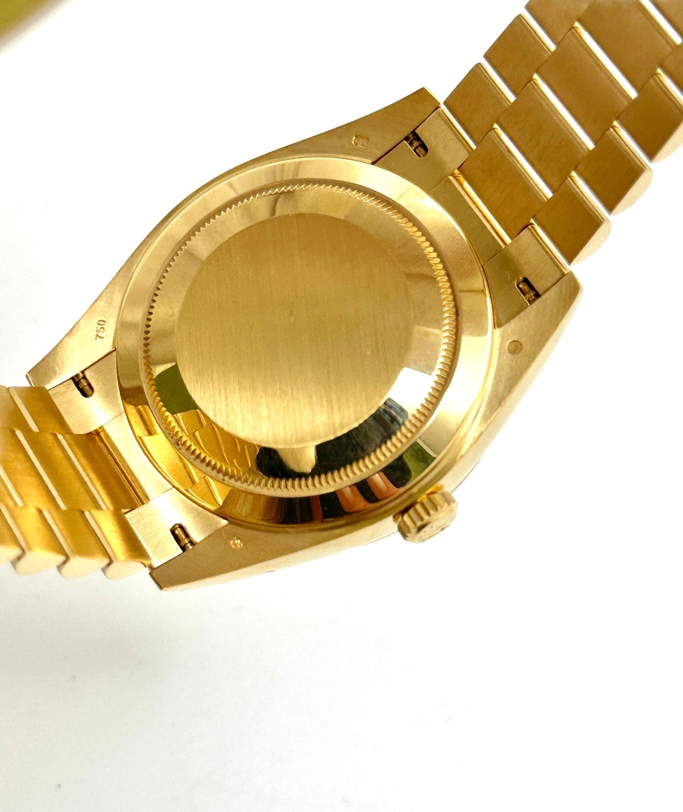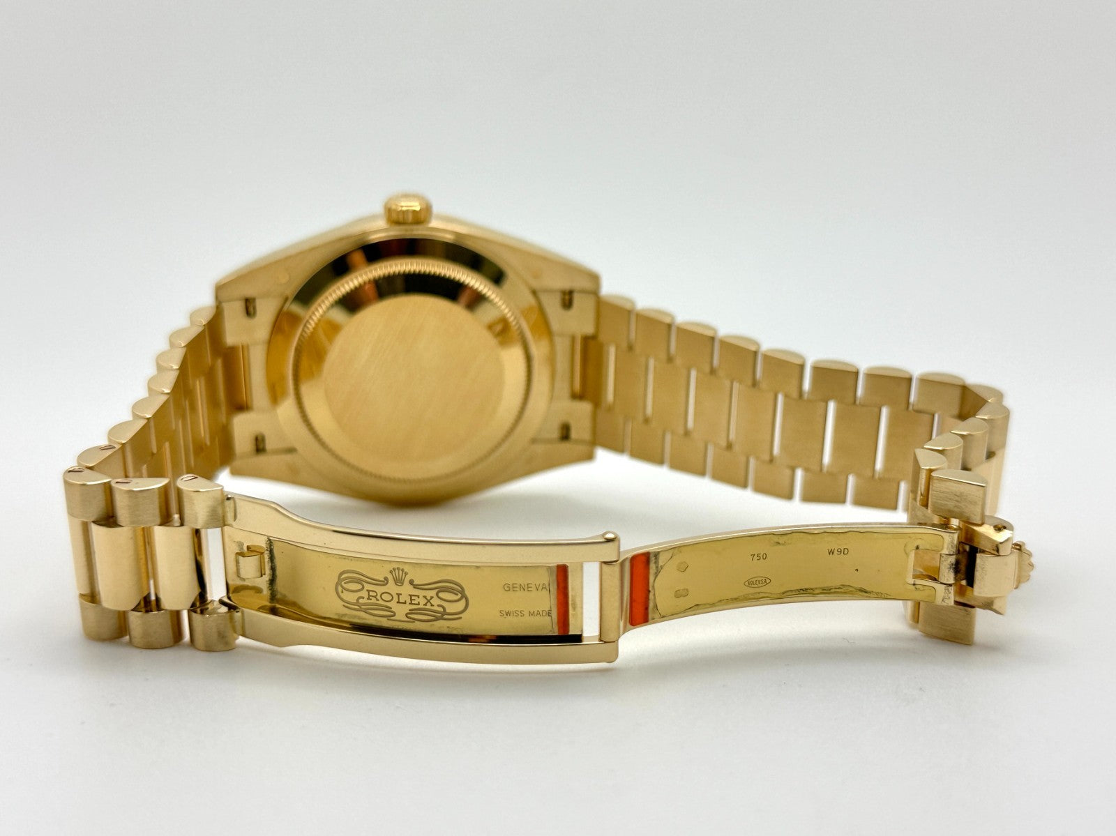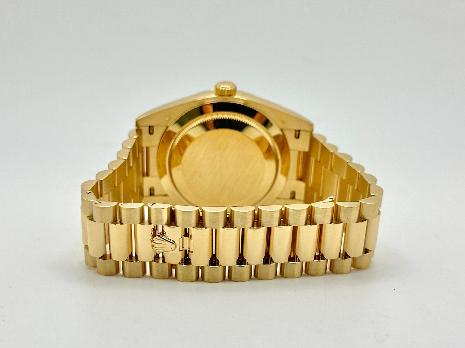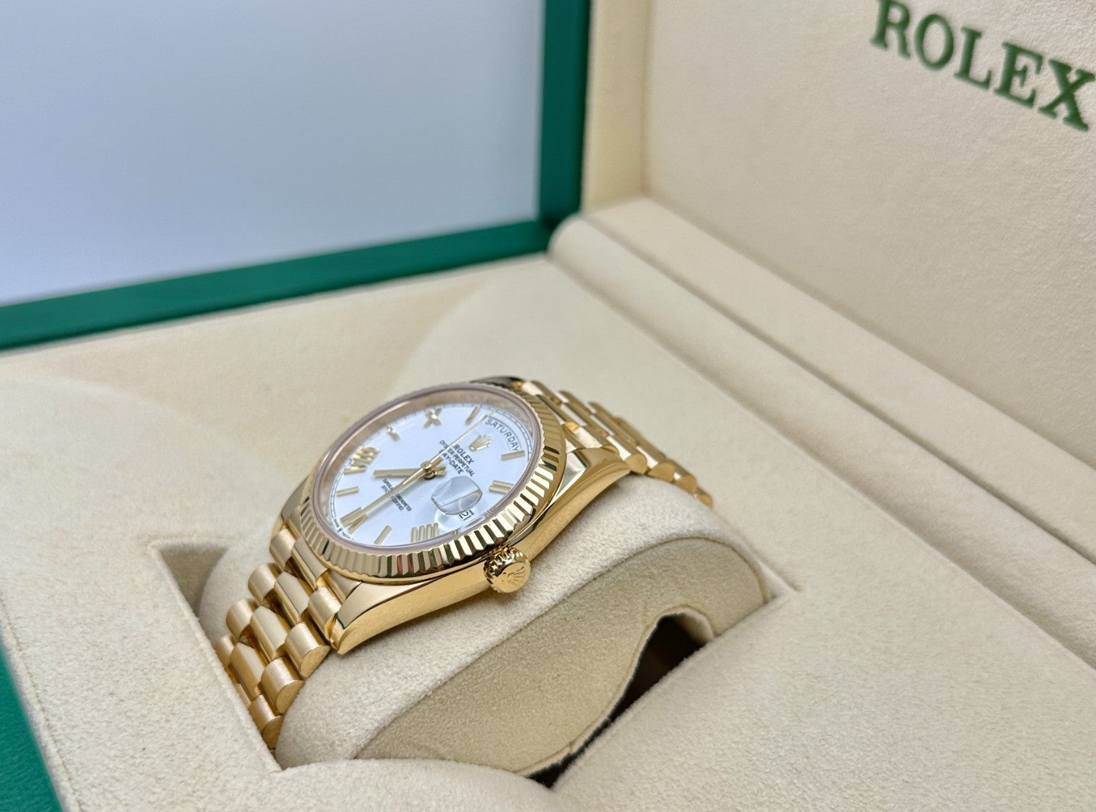 Rolex President Day Date 228238 40mm White Roman Dial 18K Yellow Gold Rolex Sale! from 4249500 /per This item is a recurring or deferred purchase. By continuing, I agree to the cancellation policy and authorize you to charge my payment method at the prices, frequency and dates listed on this page until my order is fulfilled or I cancel, if permitted. +1 (619) 232-1273 This item is currently on backorder but you can still purchase it now and we'll ship as soon as more become available. Style Number: 228238Serial: 168KJ***Model: Rolex President Day-Date Case Material: 18K Yellow Gold Band: 18K Yellow Gold Bezel: 18K Yellow Gold Dial: White Roman Dial Crystal: Sapphire Crystal Case Size: 40mm Includes: - Rolex Box - Certified Appraisal - One Year WarrantySKU 21951 / 199300TBJ121921