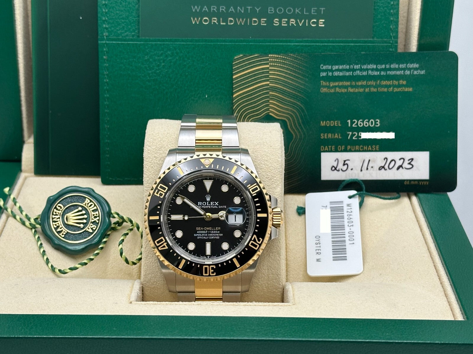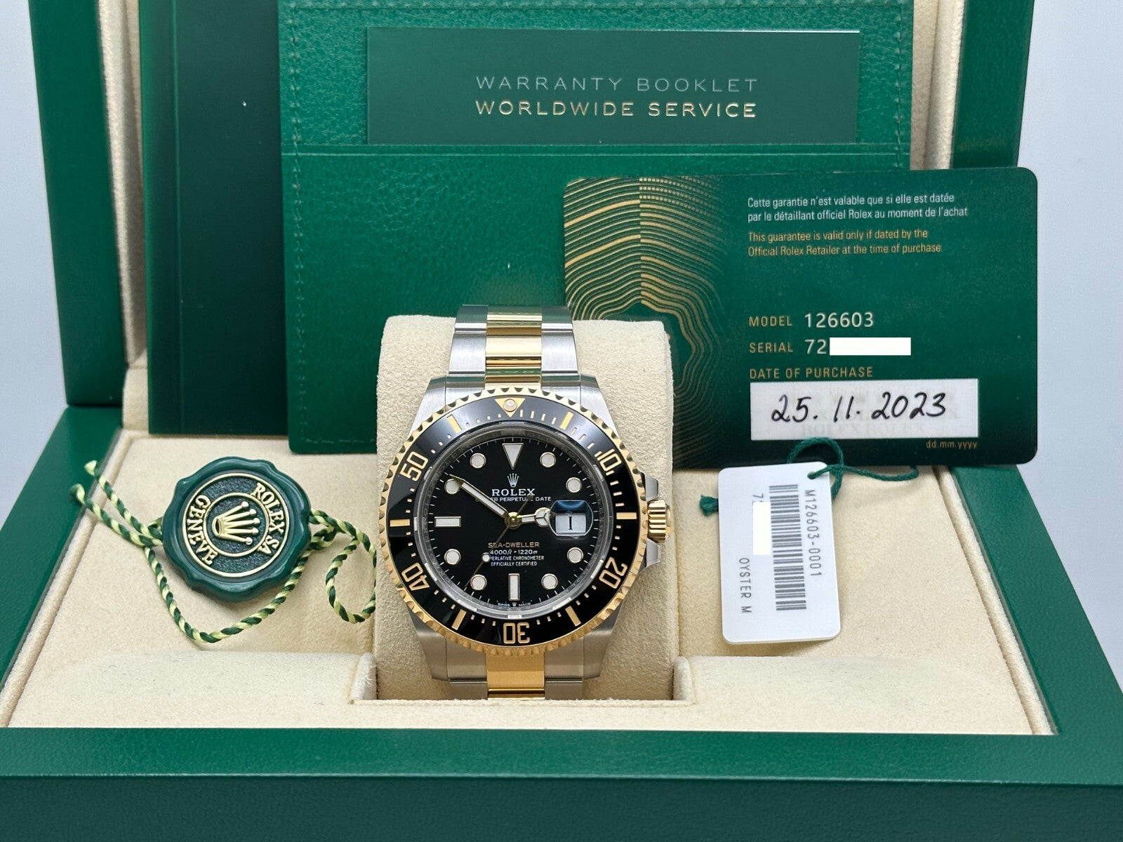 Rolex Sea Dweller 126603 43mm Black Dial 18k Yellow Gold Steel Box Papers 2023 Rolex Sale! from 1739500 /per This item is a recurring or deferred purchase. By continuing, I agree to the cancellation policy and authorize you to charge my payment method at the prices, frequency and dates listed on this page until my order is fulfilled or I cancel, if permitted. +1 (619) 232-1273 This item is currently on backorder but you can still purchase it now and we'll ship as soon as more become available. Style Number: 126603Serial: 7254V***Year: 2023 Model: Rolex Sea Dweller Case Material: Stainless Steel Band: 18K Yellow Gold & Stainless Steel Bezel: Black Ceramic Bezel Dial: Black Dial Face: Sapphire Crystal Case Size: 43mm Includes: -Rolex Box & Paper-Certified Appraisal -5 Year Factory Warranty from Original Purchase Date SKU 22536 / 144055TJD051225