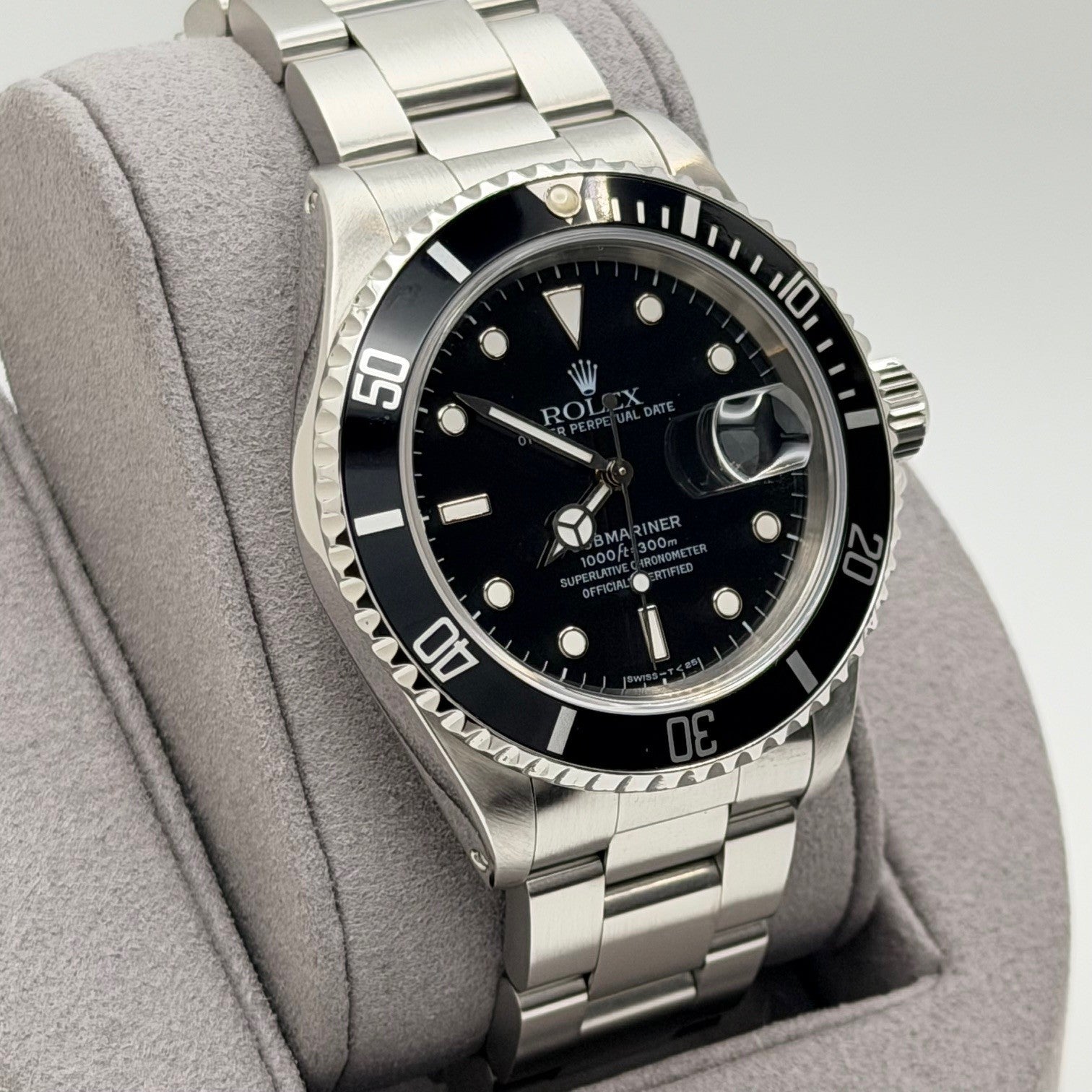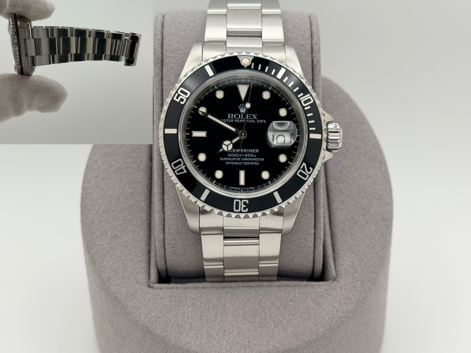 Rolex Submariner Date 16610 40mm Black Dial Stainless Steel Rolex Sale! from 879500 /per This item is a recurring or deferred purchase. By continuing, I agree to the cancellation policy and authorize you to charge my payment method at the prices, frequency and dates listed on this page until my order is fulfilled or I cancel, if permitted. +1 (619) 232-1273 This item is currently on backorder but you can still purchase it now and we'll ship as soon as more become available. Style Number: 16610Serial: S40****Year: 1993 Model: Rolex Submariner Date Case Material: Stainless Steel Band: Stainless Steel Bezel: Black Dial: Black Crystal: Sapphire Case Size: 40mm Includes: - Elegant Watch Box- Certified Appraisal - 1 Year WarrantySKU 23394 / 118825TJD120225
