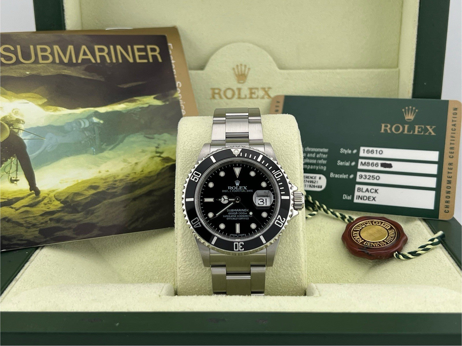 Rolex Submariner Date 16610 40mm Black Dial Steel Box Papers 2009 Rehaut Rolex Sale! from 1129500 /per This item is a recurring or deferred purchase. By continuing, I agree to the cancellation policy and authorize you to charge my payment method at the prices, frequency and dates listed on this page until my order is fulfilled or I cancel, if permitted. +1 (619) 232-1273 This item is currently on backorder but you can still purchase it now and we'll ship as soon as more become available. Style Number: 16610Serial: M86****Year: 2009 Model: Rolex Submariner Date Case Material: Stainless Steel Band: Stainless Steel Bezel: Black Dial: Black Crystal: Sapphire Case Size: 40mm Includes: - Rolex Box & Papers- Certified Appraisal - 1 Year WarrantySKU 22968 / 123142TGC082825