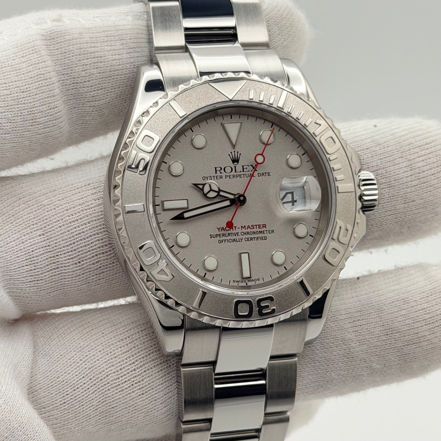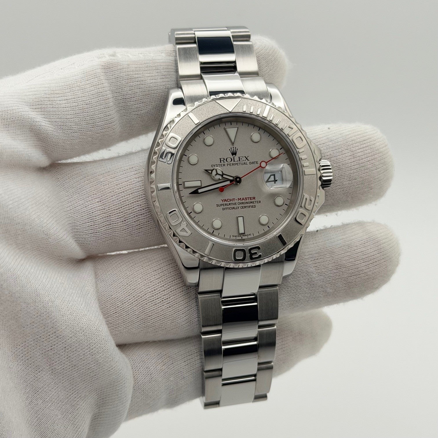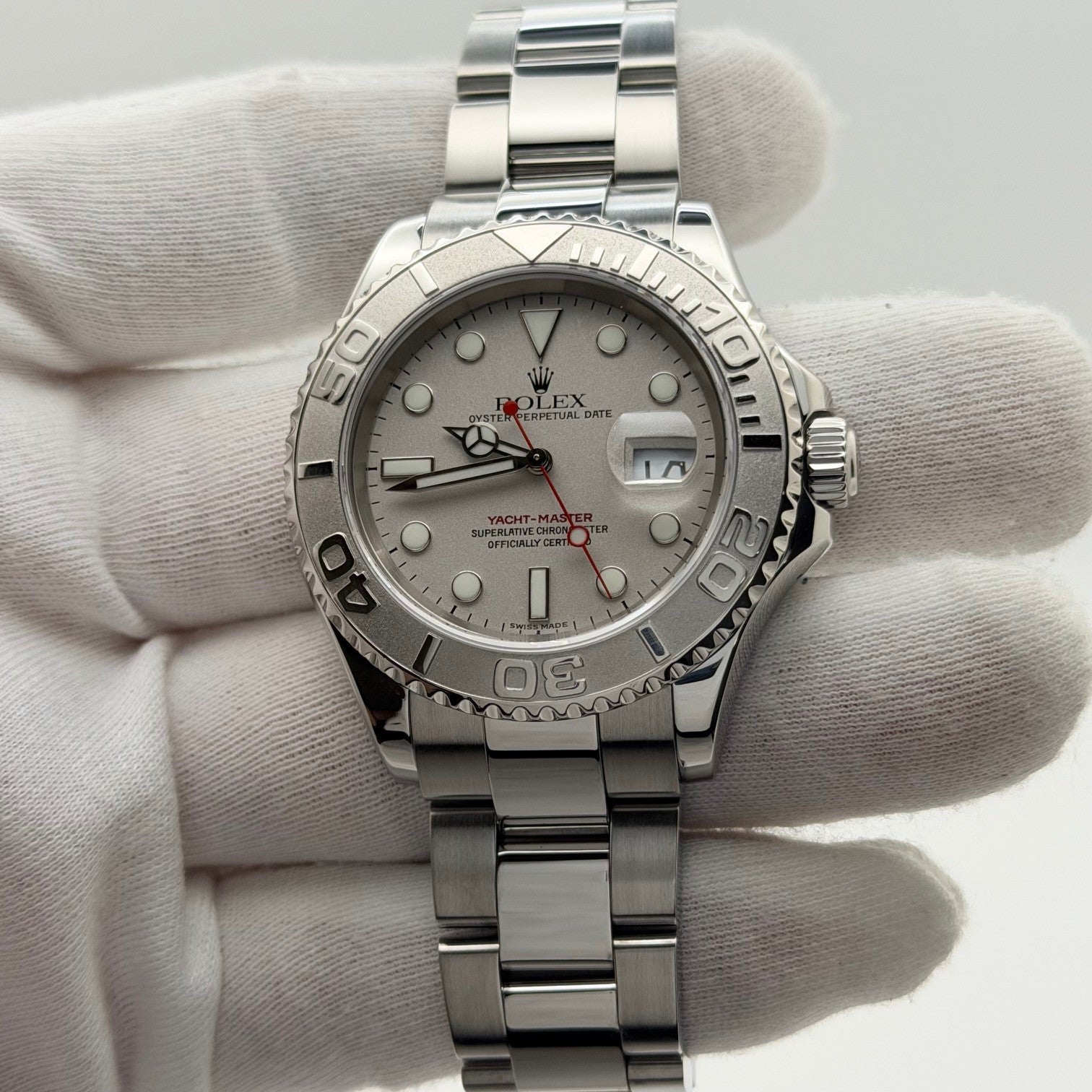 Rolex Yacht Master 16622 40mm Platinum Dial Platinum Bezel Stainless Steel Rolex Sale! from 899500 /per This item is a recurring or deferred purchase. By continuing, I agree to the cancellation policy and authorize you to charge my payment method at the prices, frequency and dates listed on this page until my order is fulfilled or I cancel, if permitted. +1 (619) 232-1273 This item is currently on backorder but you can still purchase it now and we'll ship as soon as more become available. Style Number: 16622Serial: F06****Year: 2004 Model: Rolex Yacht Master Case Material: Stainless Steel Band: Stainless Steel Bezel: Platinum Dial: Platinum Crystal: Sapphire Case Size: 40mm Includes: - Elegant Watch Box- Certified Appraisal - 1 Year WarrantySKU 23307 / 115765TIC111025