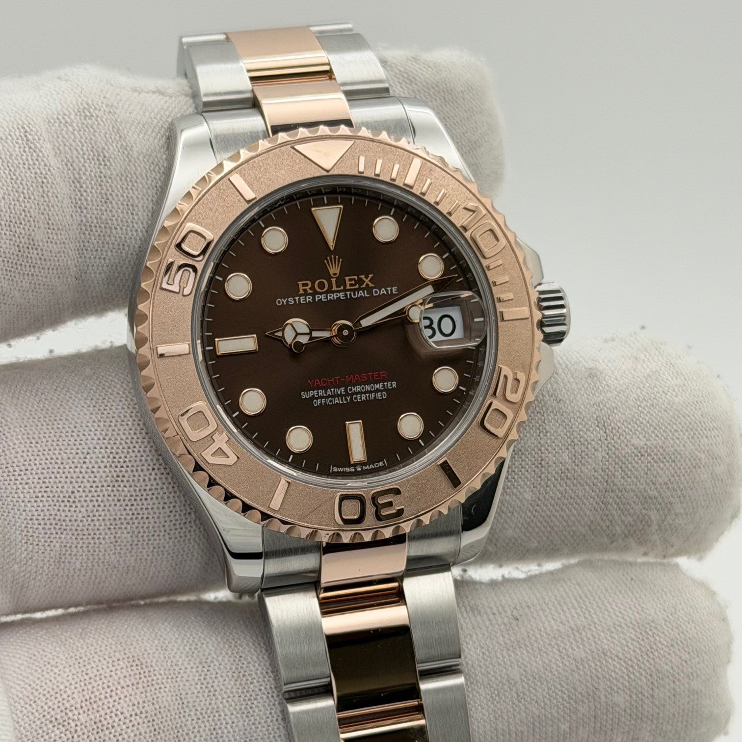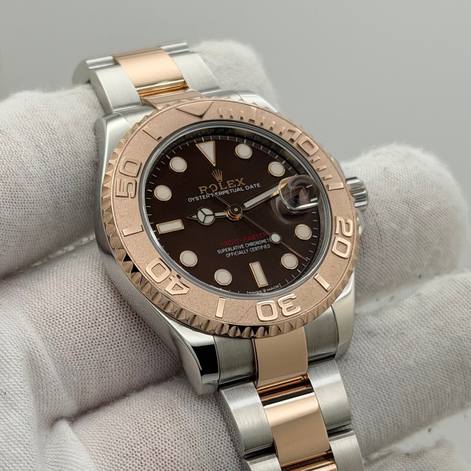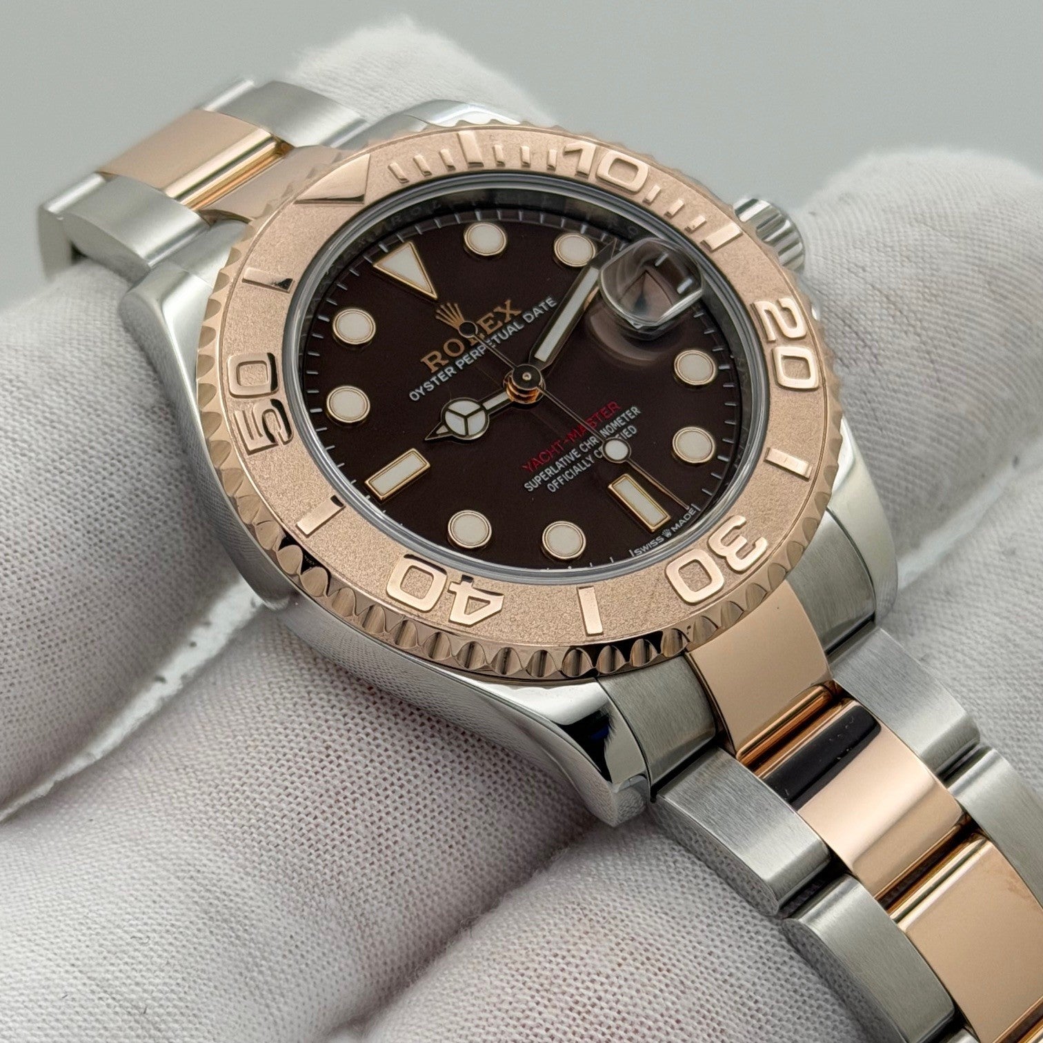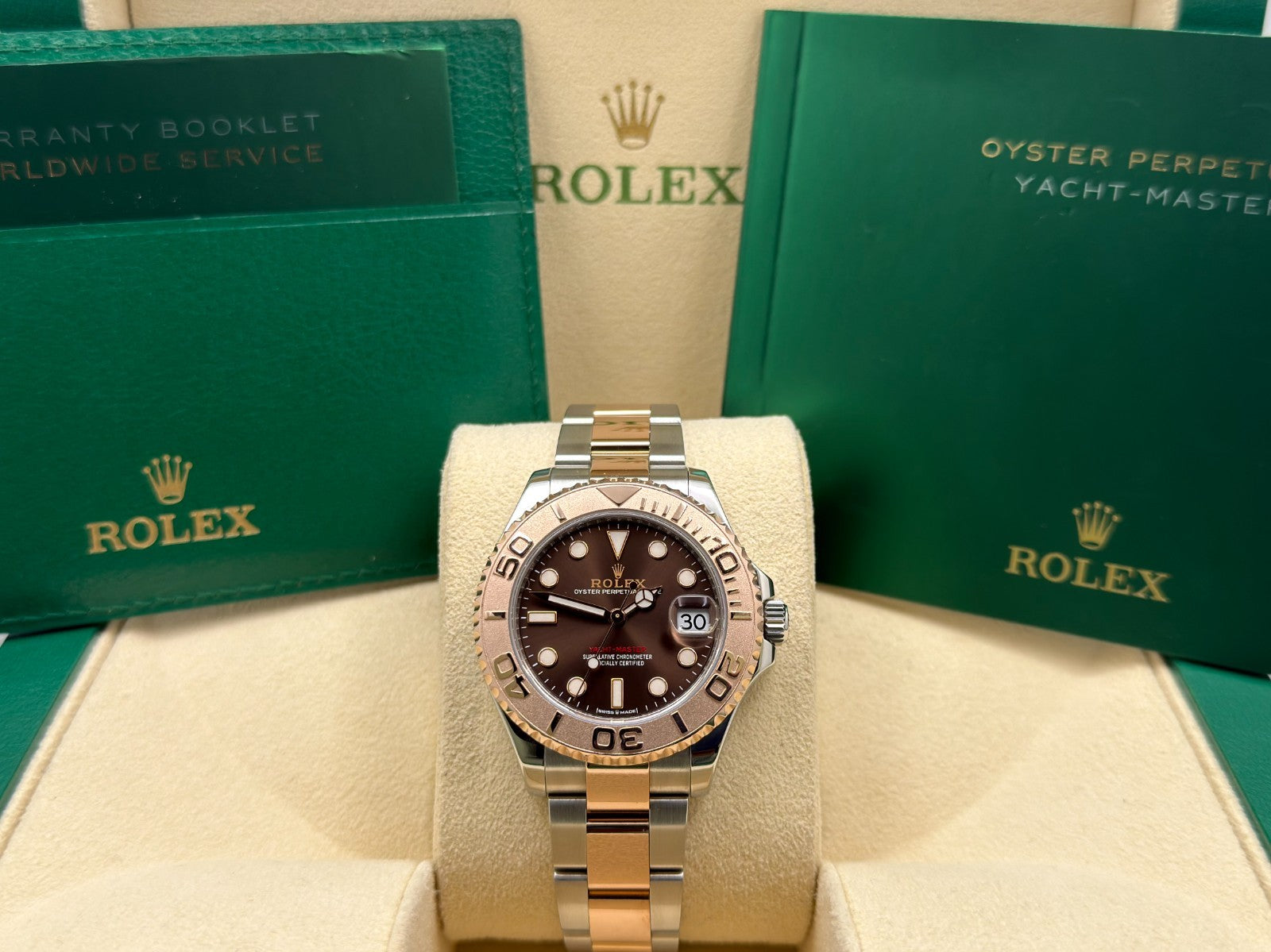 Rolex Yacht Master 268621 37mm Chocolate Dial 18k Rose Gold Steel Box Receipt Rolex Sale! from 1369500 /per This item is a recurring or deferred purchase. By continuing, I agree to the cancellation policy and authorize you to charge my payment method at the prices, frequency and dates listed on this page until my order is fulfilled or I cancel, if permitted. +1 (619) 232-1273 This item is currently on backorder but you can still purchase it now and we'll ship as soon as more become available. Style Number: 268621 Serial: 73W8**** Year: 2019 Model: Rolex Yacht Master 37 Case Material: 18K Rose Gold and Stainless Steel Band: 18K Rose Gold and Stainless Steel Bezel: 18K Rose Gold Dial: Chocolate Crystal: Sapphire Case Size: 37mmIncludes:- Rolex Box & Receipt - Certified Appraisal - One Year WarrantySKU 23538 / 129880TJF010626