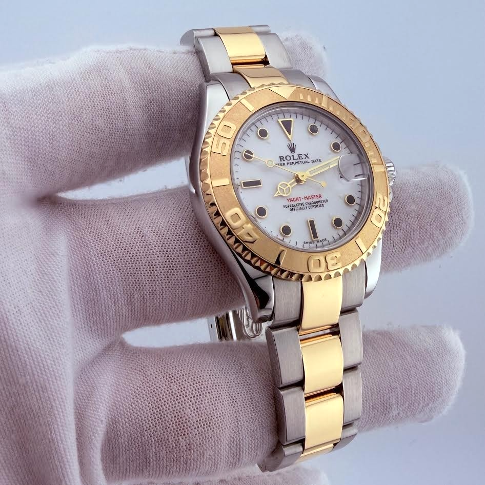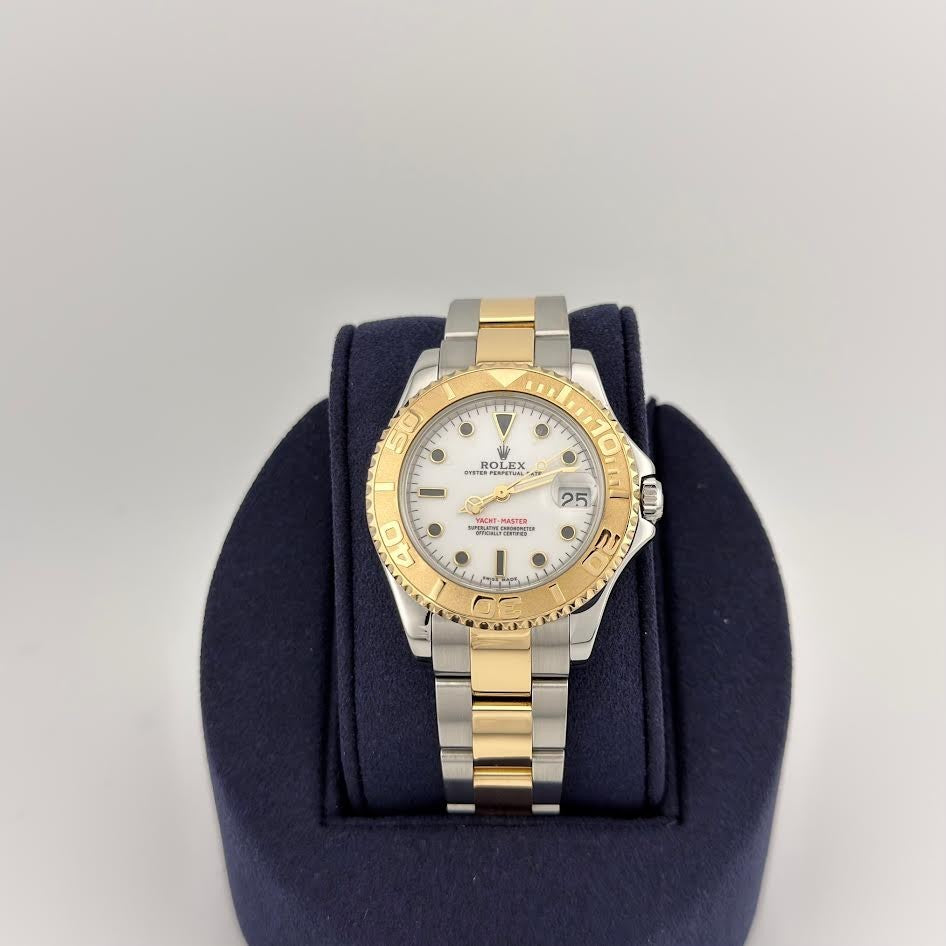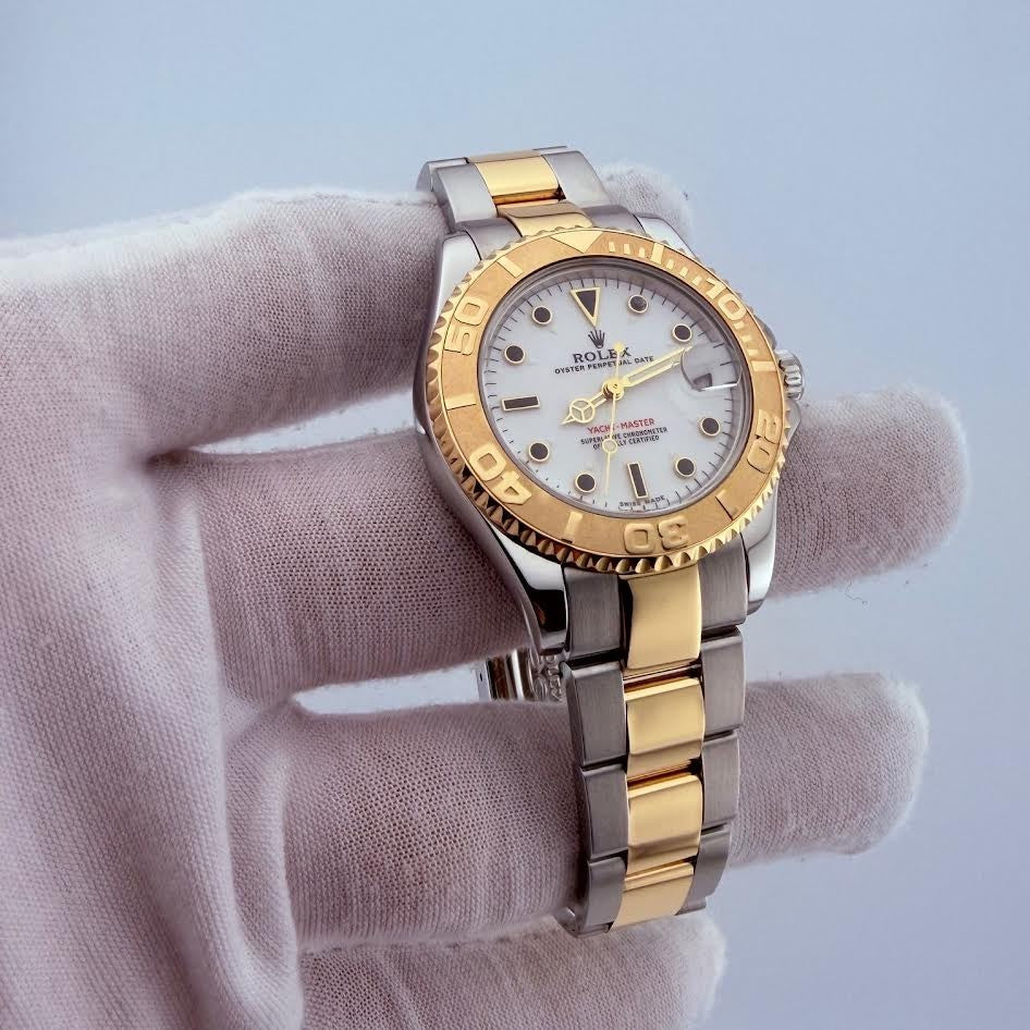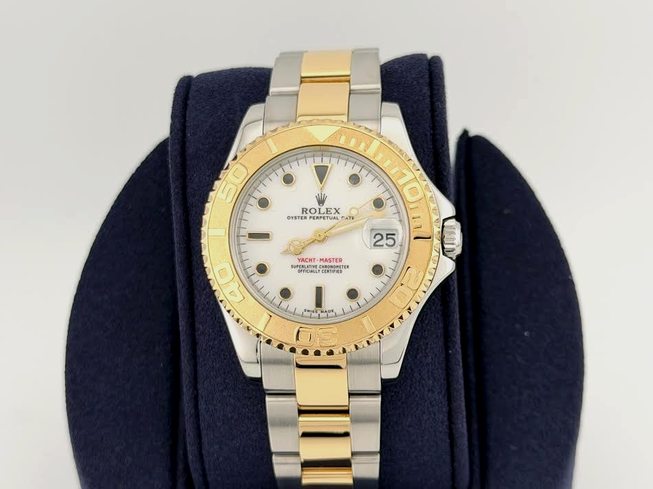 Rolex Yacht Master Midsize 68623 35mm White Dial 18k Yellow Gold Steel Rolex Sale! from 829500 /per This item is a recurring or deferred purchase. By continuing, I agree to the cancellation policy and authorize you to charge my payment method at the prices, frequency and dates listed on this page until my order is fulfilled or I cancel, if permitted. +1 (619) 232-1273 This item is currently on backorder but you can still purchase it now and we'll ship as soon as more become available. Style Number: 68623Serial: A59****Year: 1999 Model: Rolex Yacht Master Midsize Case Material: Stainless Steel Band: 18k Yellow Gold & Stainless Steel Bezel: 18k Yellow Gold Dial: White Crystal: Sapphire Case Size: 35mm Includes: - Elegant Watch Box- Certified Appraisal - 1 Year WarrantySKU 23205 / 114457TIM101525