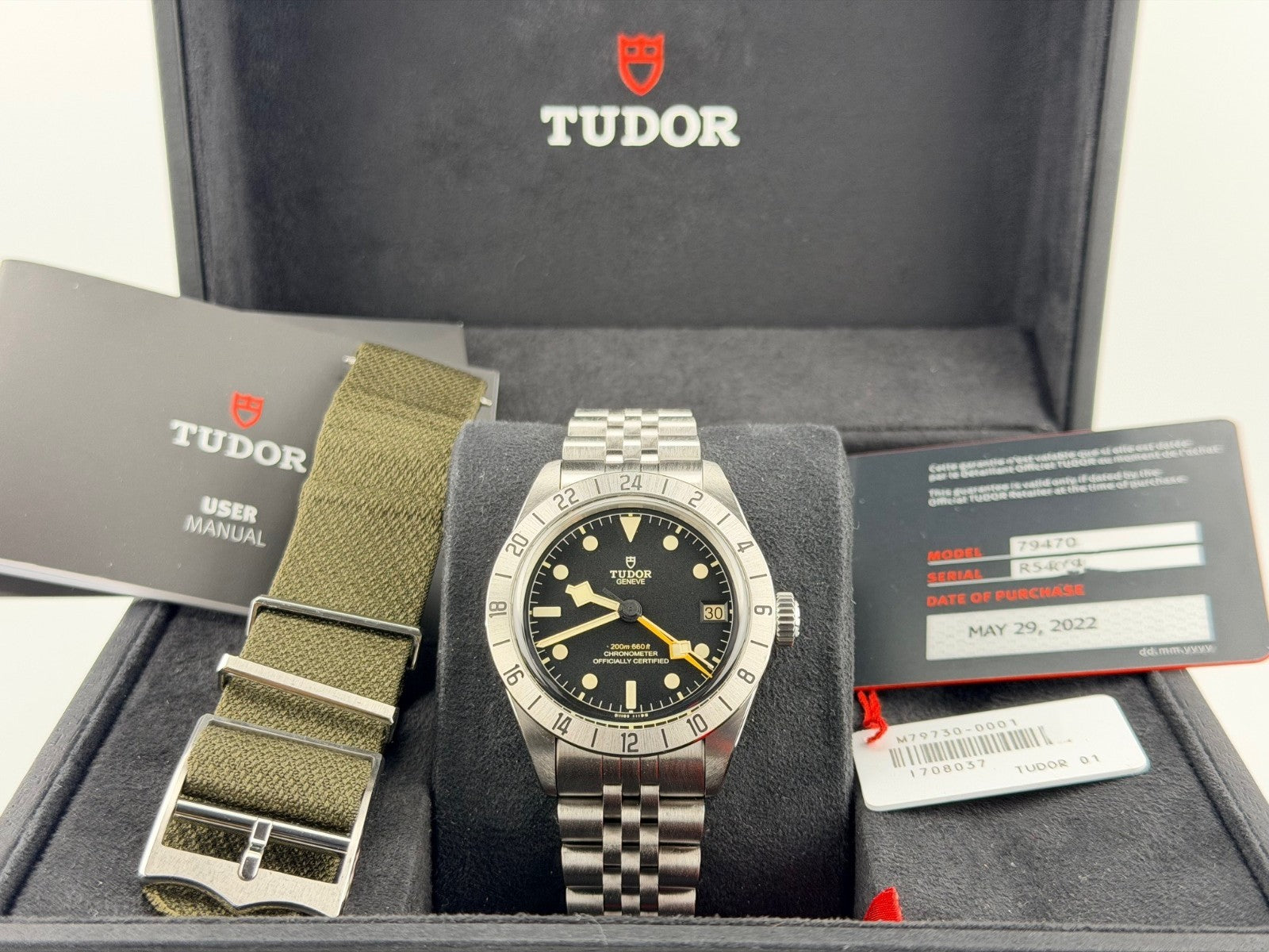 TUDOR Black Bay Pro 79470 39mm Black Dial Stainless Steel Box Paper TUDOR Sale! from 339500 /per This item is a recurring or deferred purchase. By continuing, I agree to the cancellation policy and authorize you to charge my payment method at the prices, frequency and dates listed on this page until my order is fulfilled or I cancel, if permitted. +1 (619) 232-1273 This item is currently on backorder but you can still purchase it now and we'll ship as soon as more become available. Style Number: 79470Serial: R54Q***Year: 2022 Model: TUDOR Black Bay Pro Case Material: Stainless Steel Band: Stainless Steel Bezel: Stainless Steel Dial: Black Crystal: Sapphire Case Size: 39mm Includes: -Tudor Box & Paper-Certified Appraisal -1 Year WarrantySKU 21780 / 13810TBB102524