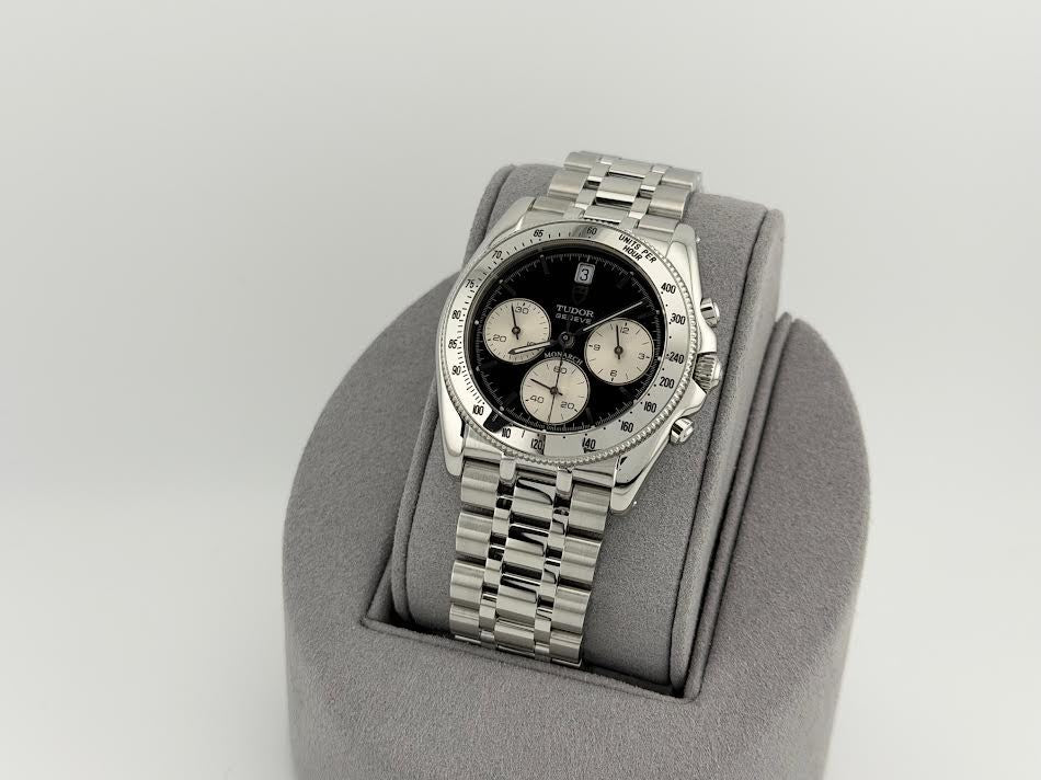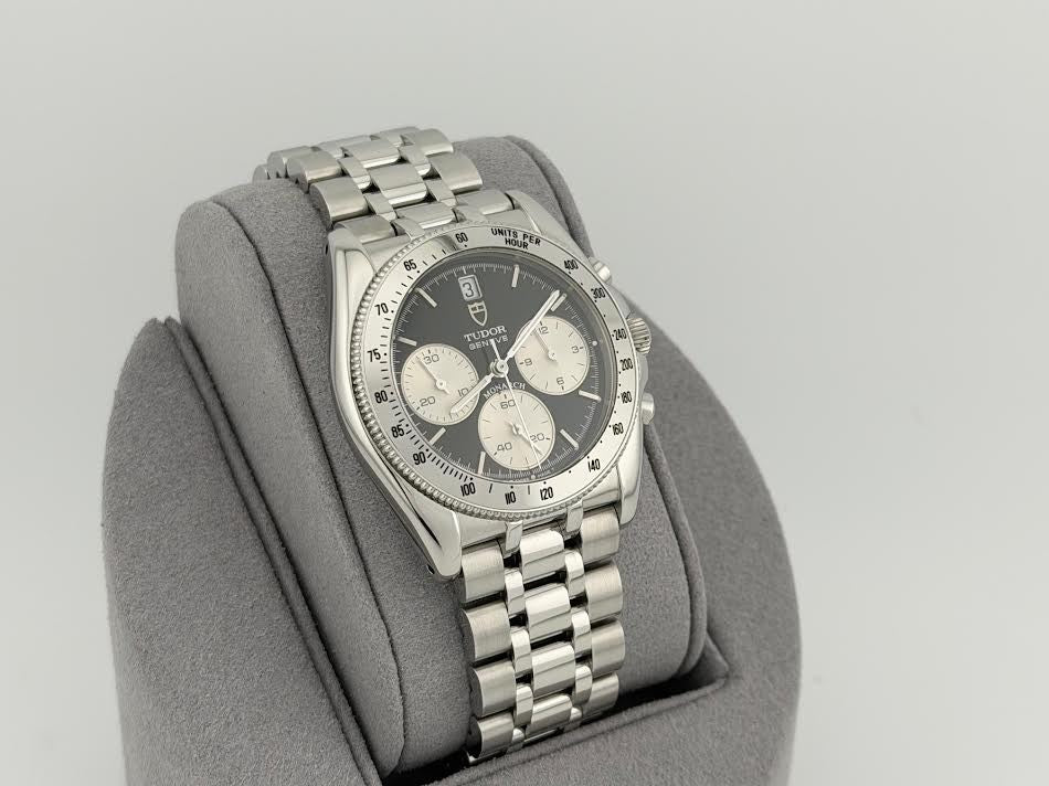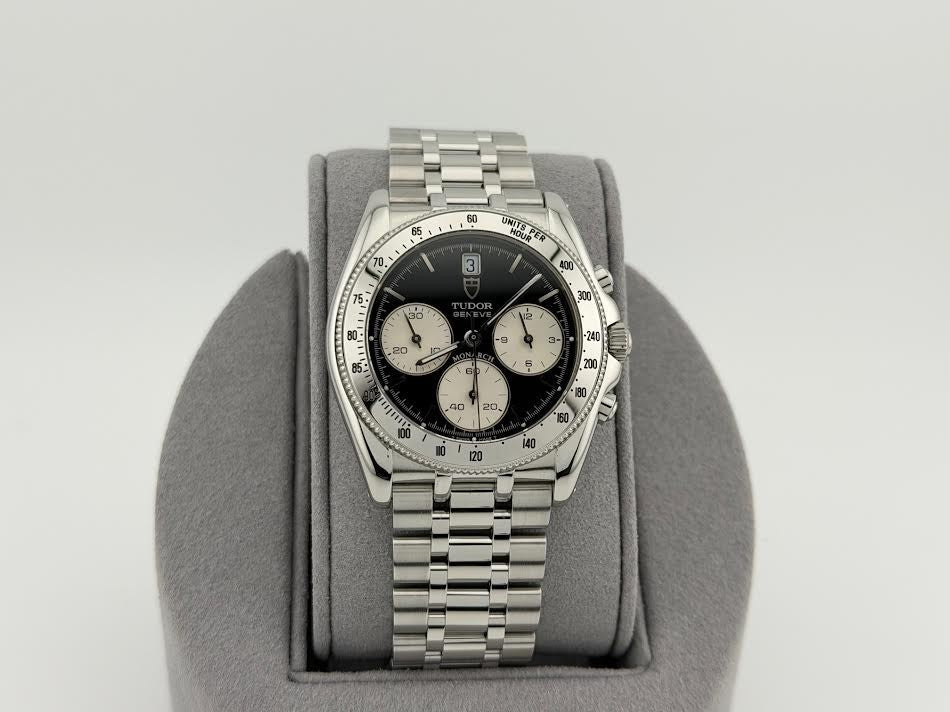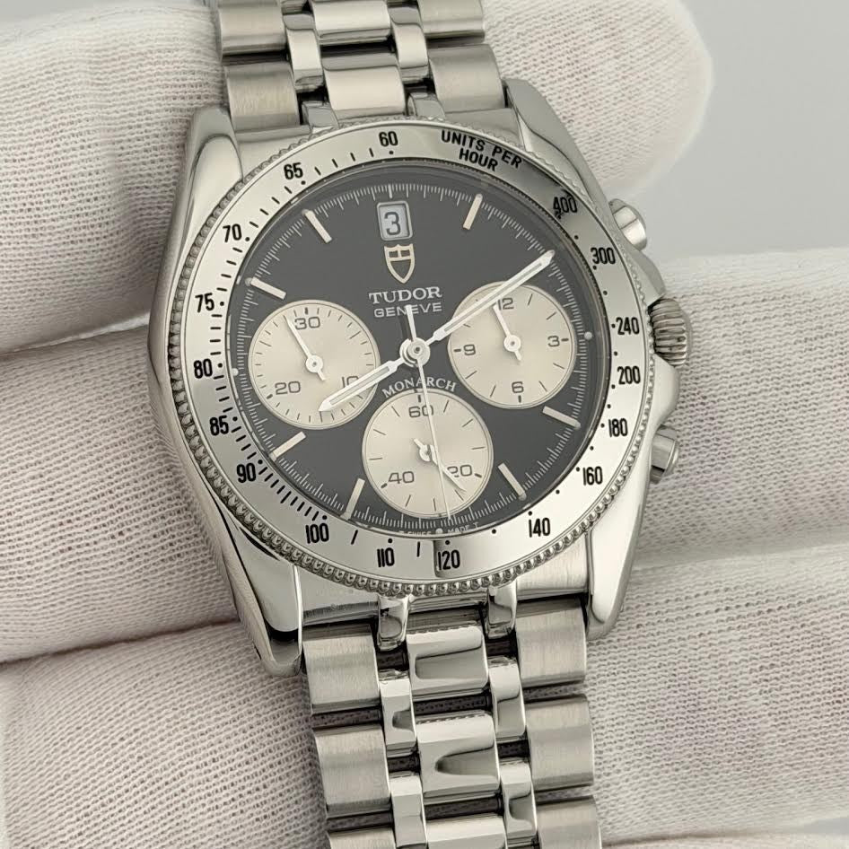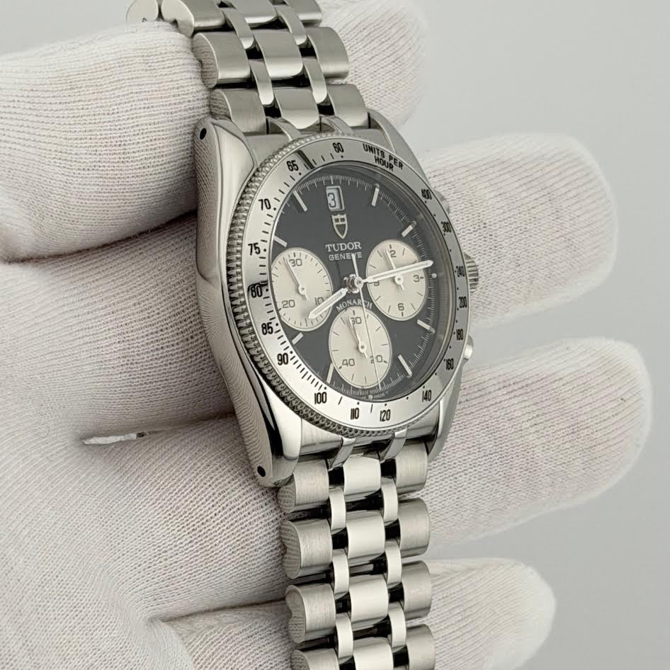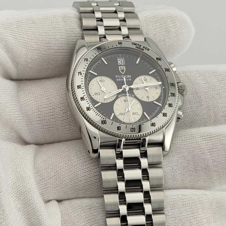 Tudor Monarch 15900 36mm Reverse Panda Black White Dial Chronograph Steel TUDOR Sale! from 399500 /per This item is a recurring or deferred purchase. By continuing, I agree to the cancellation policy and authorize you to charge my payment method at the prices, frequency and dates listed on this page until my order is fulfilled or I cancel, if permitted. +1 (619) 232-1273 This item is currently on backorder but you can still purchase it now and we'll ship as soon as more become available. Style Number: 15900Serial: 713***Year: 36mm Model: Tudor Monarch Case Material: Stainless Steel Band: Stainless Steel Bezel: Stainless Steel Dial: Black with White Subdials 'Reverse Panda' Crystal: Sapphire Case Size: 36mm Includes: -Elegant Watch Box-Certified Appraisal -1 Year WarrantySKU 22863 / 13774TOC073025