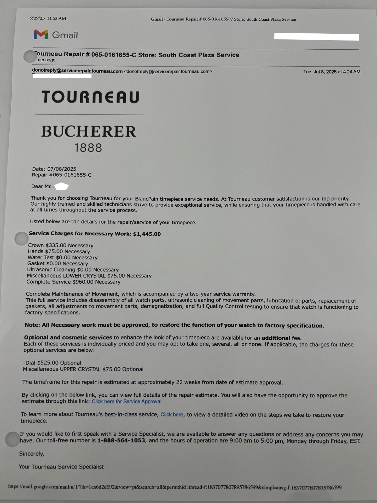 - Blancpain Travel Box & 2025 Blancpain Service Receipt