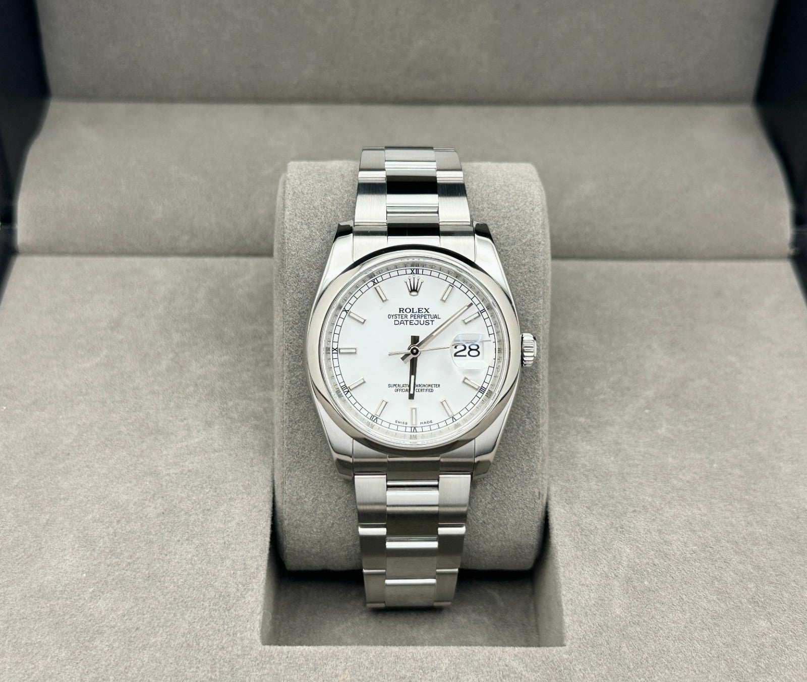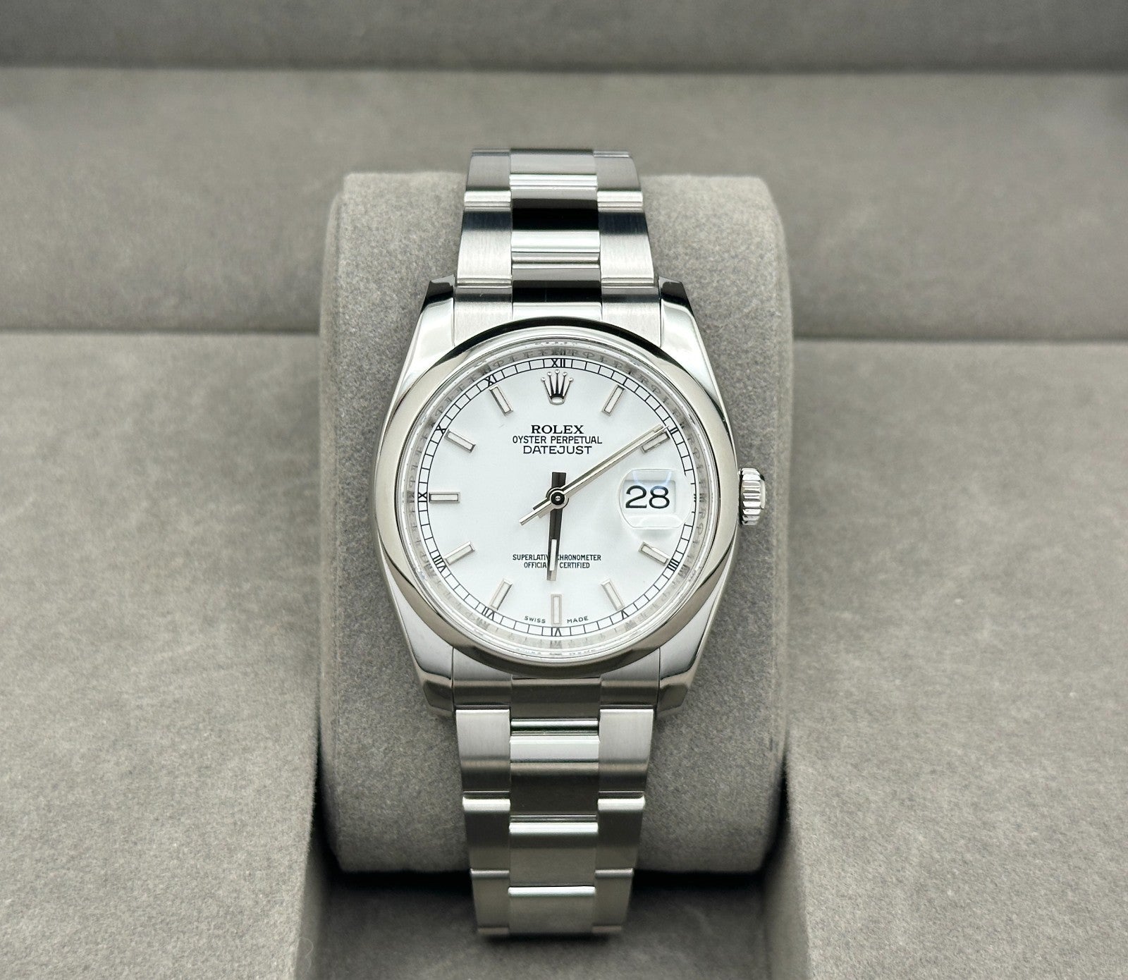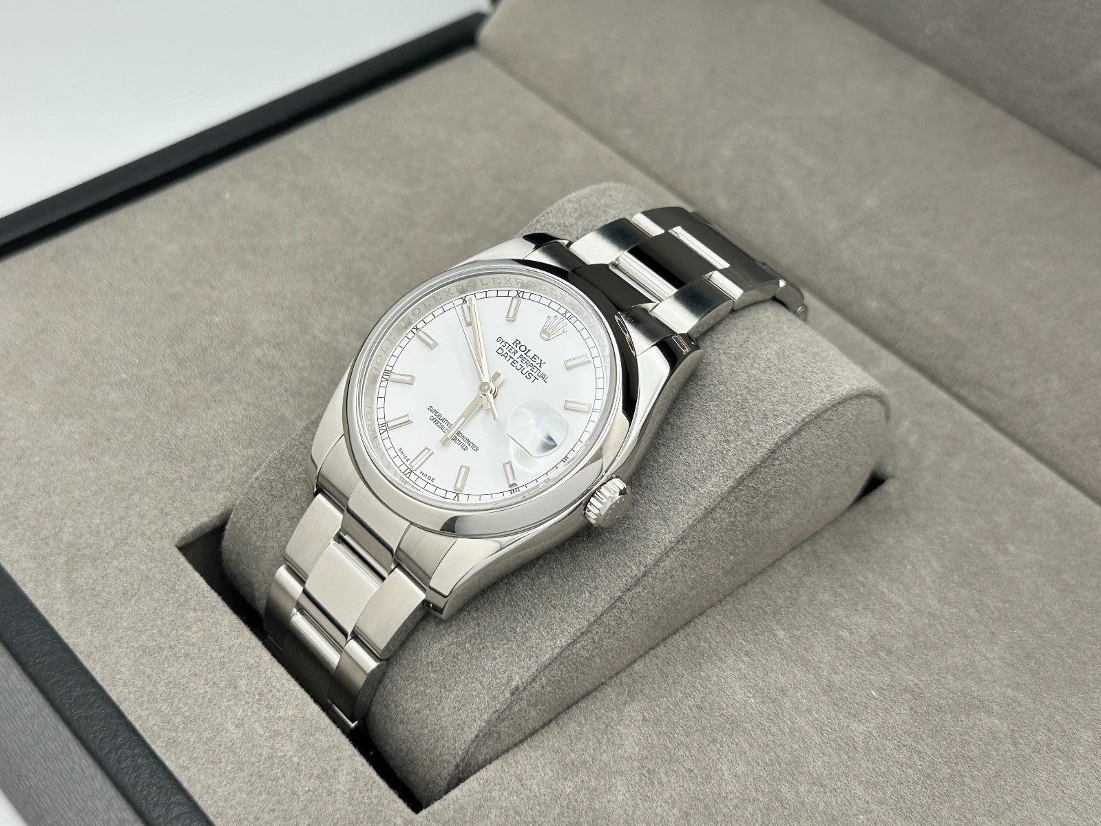 2010 Rolex Datejust 116200 36mm White Dial Roulette Date Wheel Stainless Steel