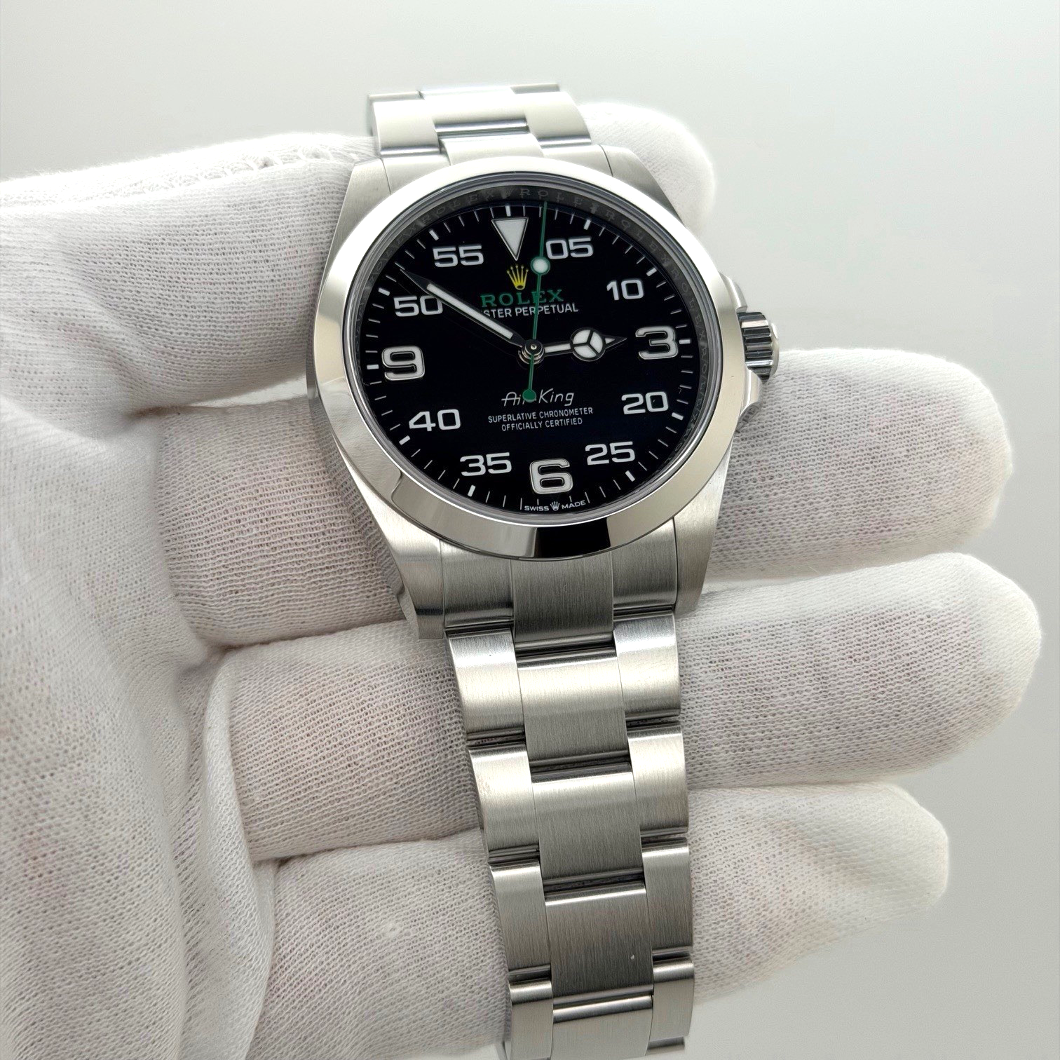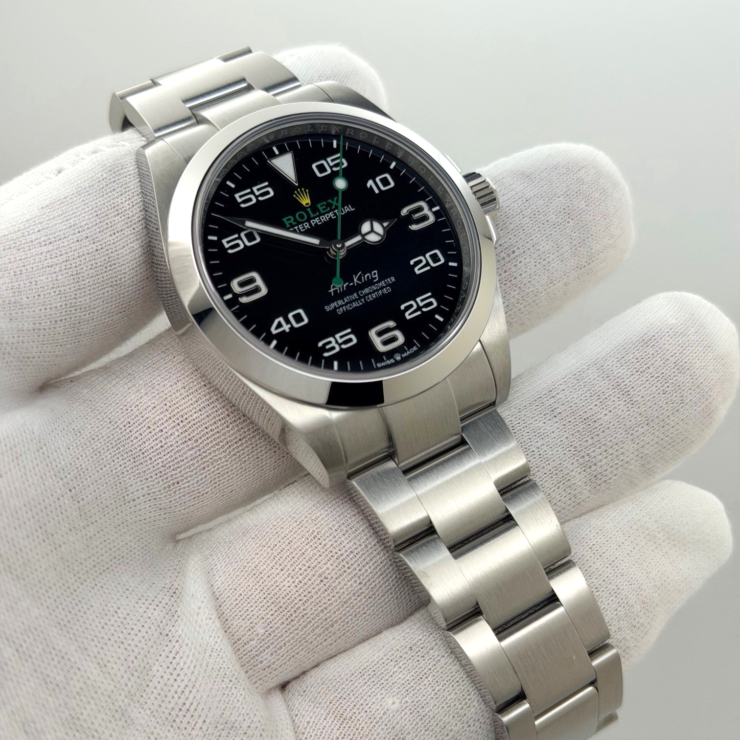 Style Number: 126900   Year: 2024   Model: Rolex Air-King   Case Material: Stainless Steel   Band: Stainless Steel   Bezel: Stainless Steel   Dial: Black   Crystal: Sapphire   Case Size: 40mm