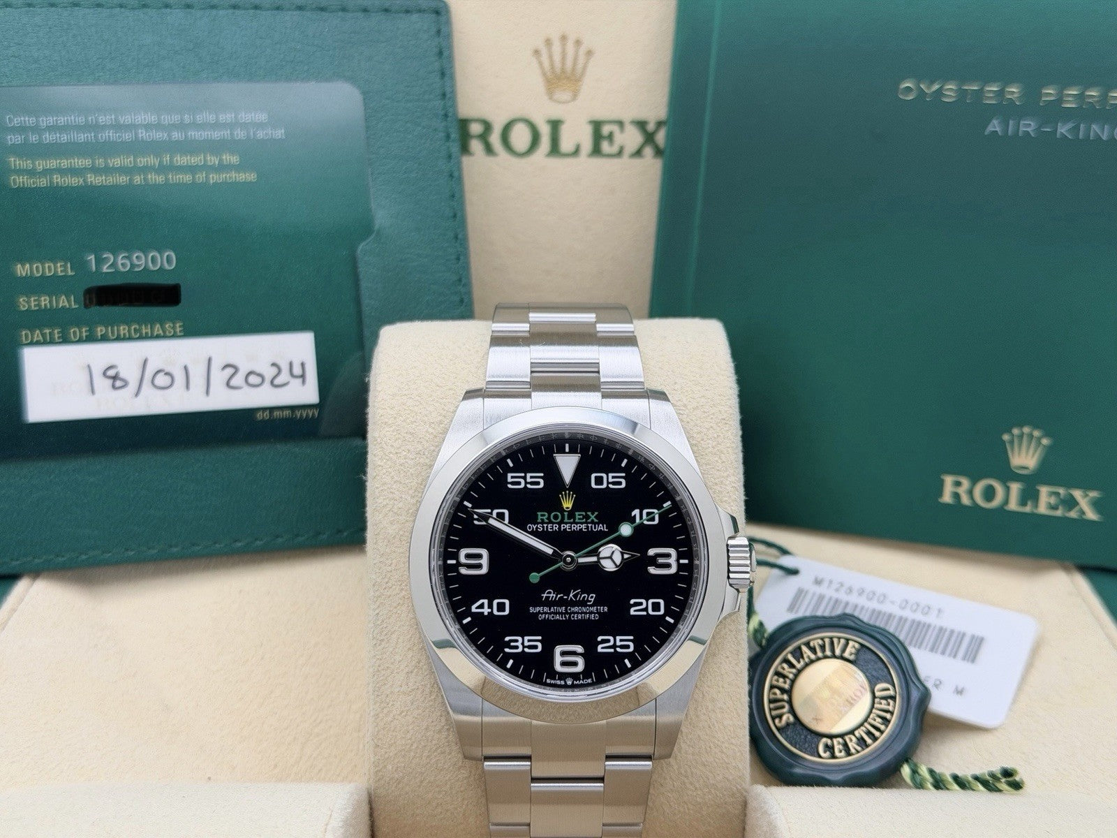2024 Rolex Air King 126900 40mm Black Dial Stainless Steel Box Papers