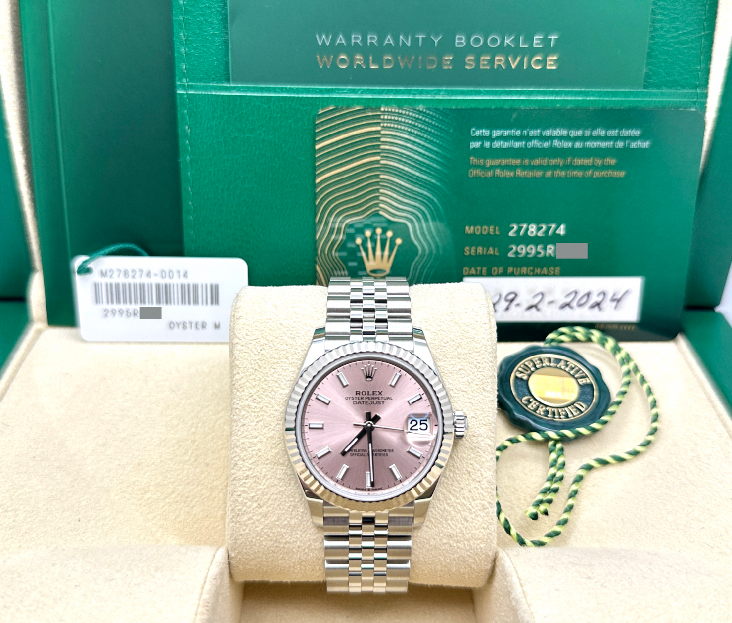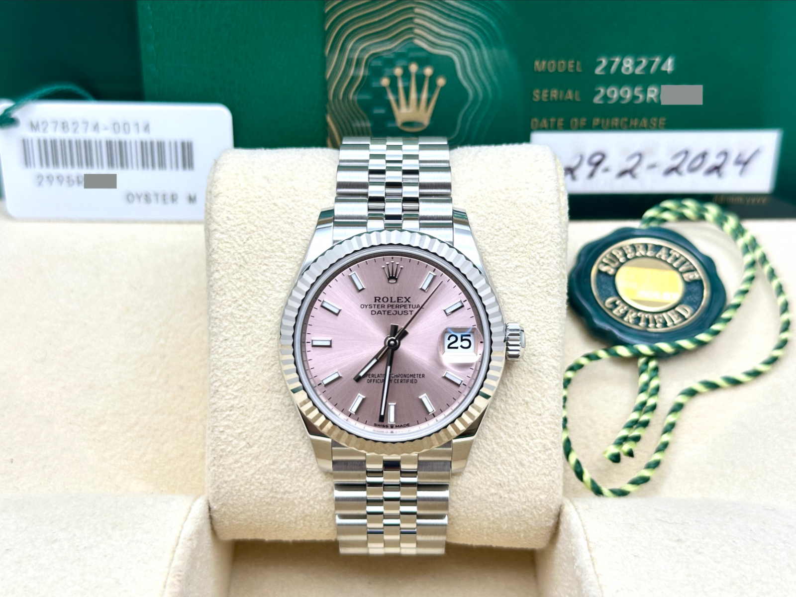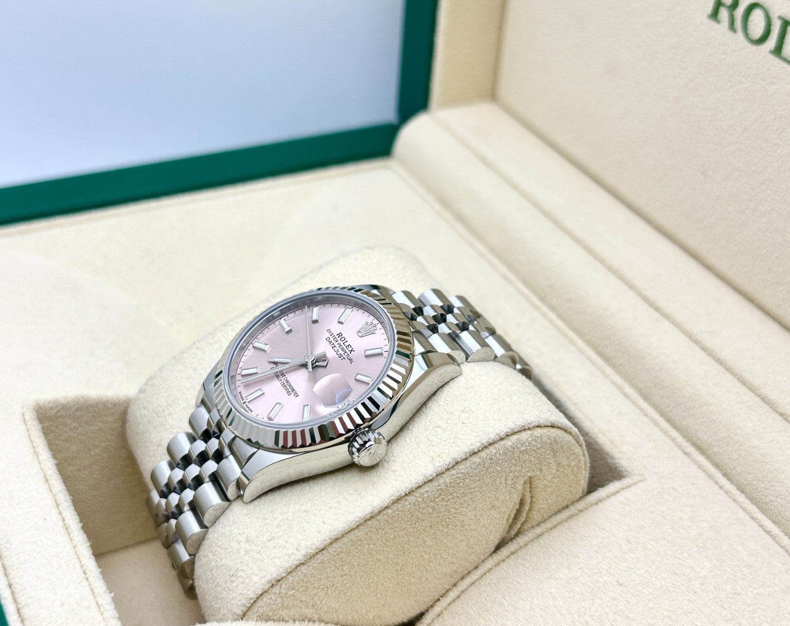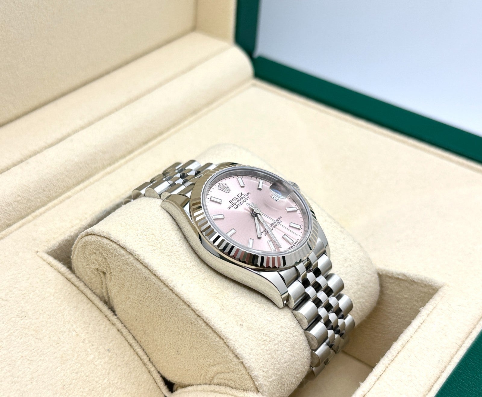 2024 Rolex Datejust Midsize 278274 31mm Pink Dial 18K White Gold Steel Box Paper
