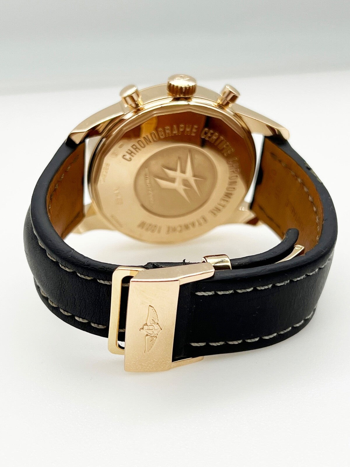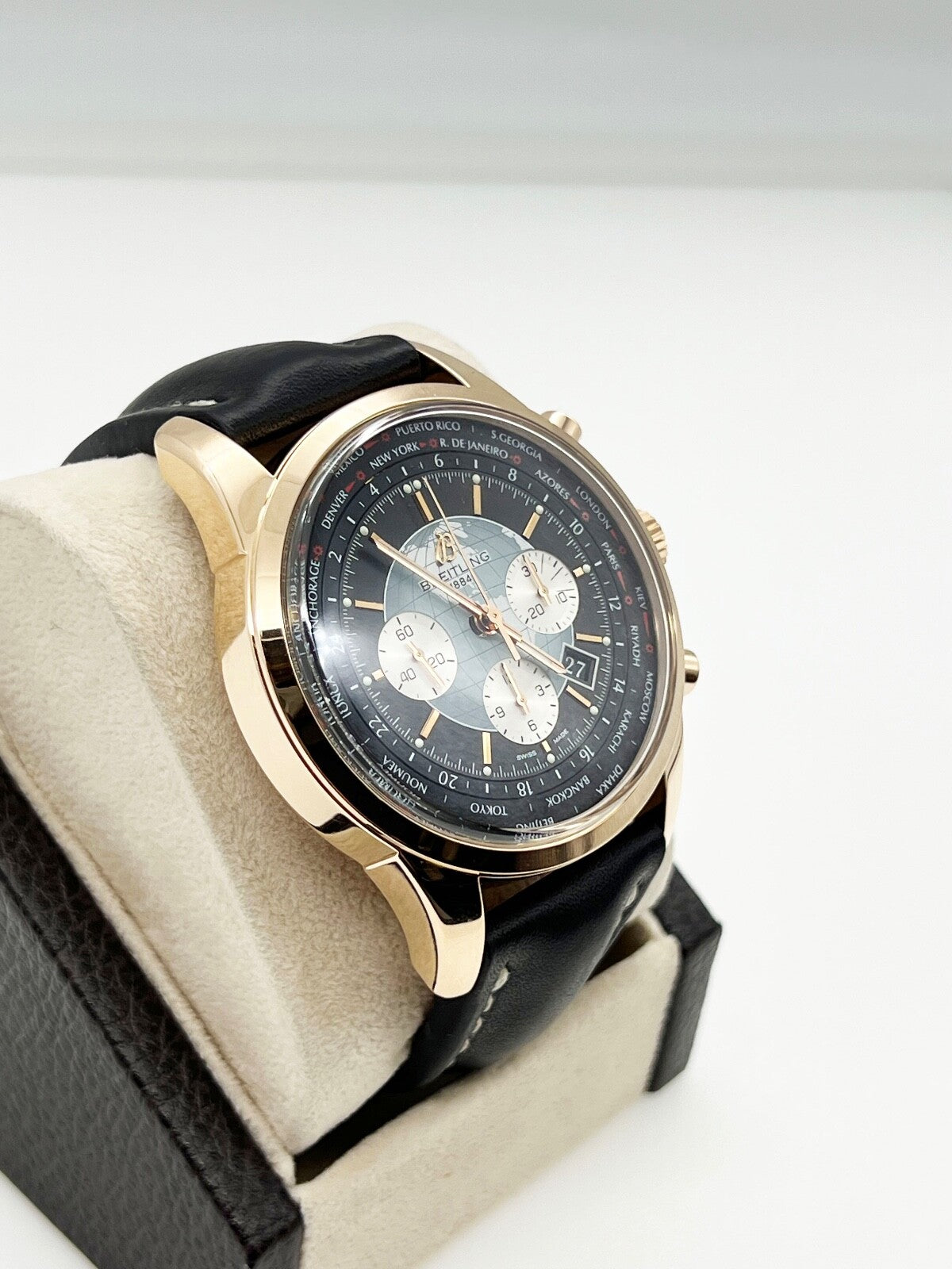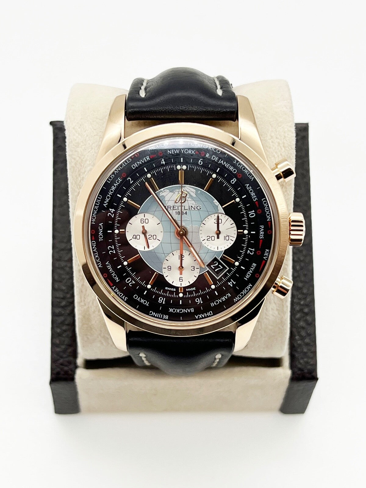 Breitling Transocean RB0510 46mm Chronograph 18K Rose Gold Leather Strap Breitling Sale! from 1699500 /per This item is a recurring or deferred purchase. By continuing, I agree to the cancellation policy and authorize you to charge my payment method at the prices, frequency and dates listed on this page until my order is fulfilled or I cancel, if permitted. +1 (619) 232-1273 This item is currently on backorder but you can still purchase it now and we'll ship as soon as more become available. Style Number: RB0510Year: 2013 Model: Breitling Transocean Unitime Case Material: 18K Rose Gold Band: Leather Bezel: 18K Rose Gold Dial: Black Face: Sapphire Crystal Case Size: 46mm Weight: 181 Grams Includes: -Elegant Watch Box-Certified Appraisal -1 Year WarrantySKU 20928 / 123280TJD010524